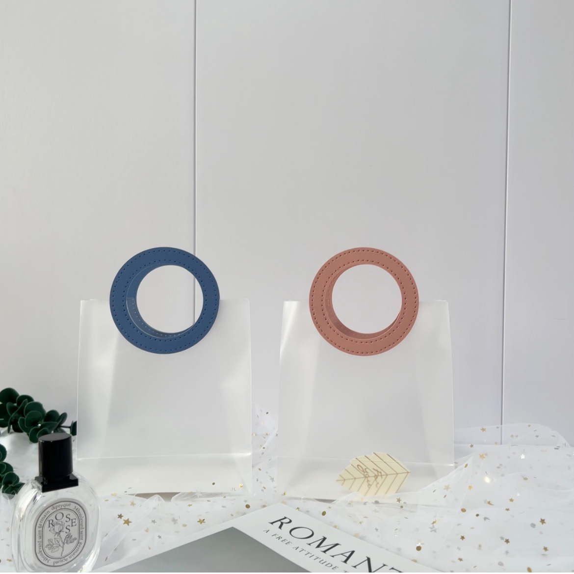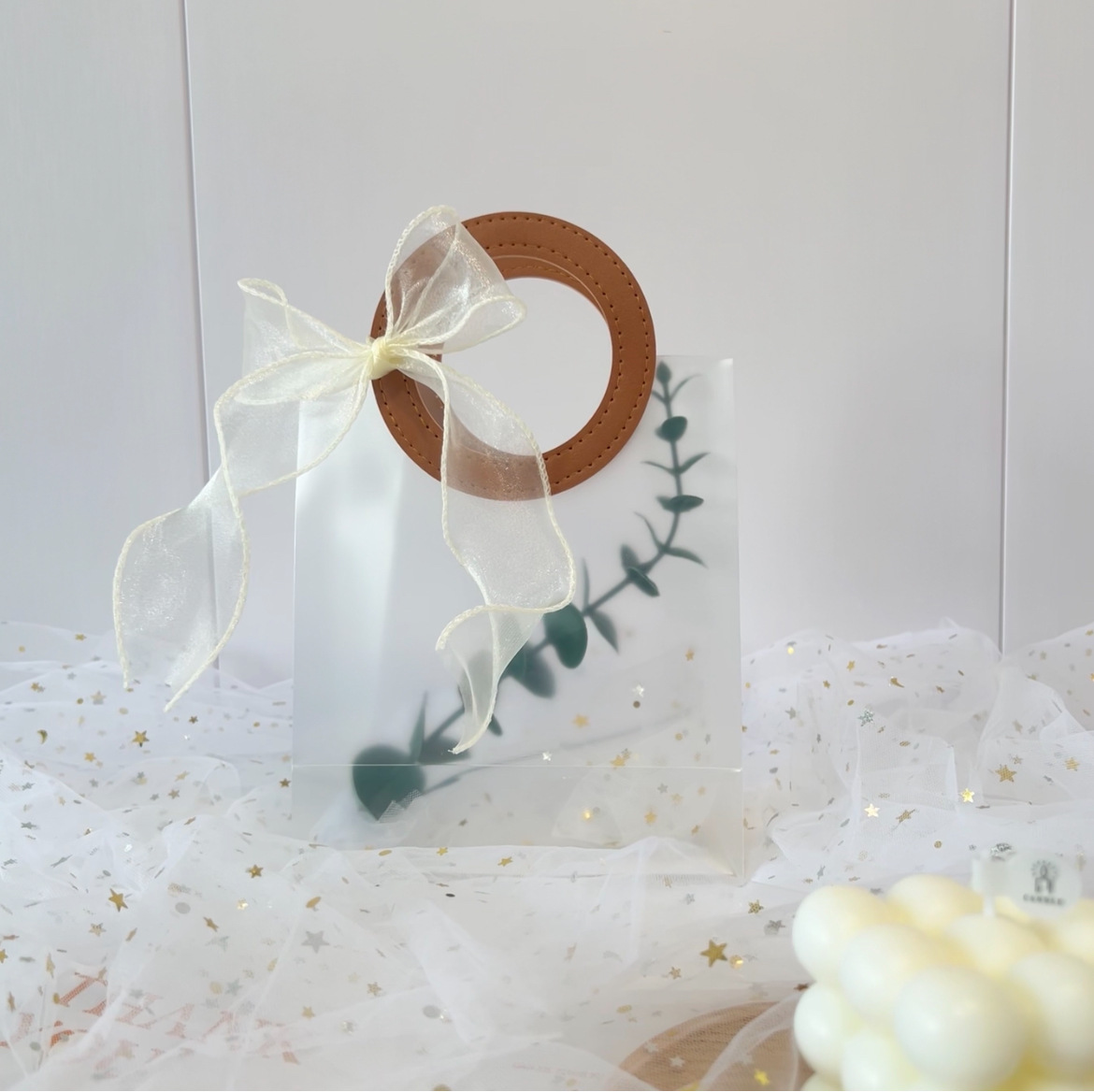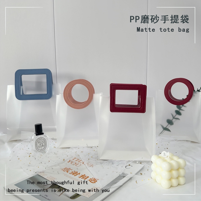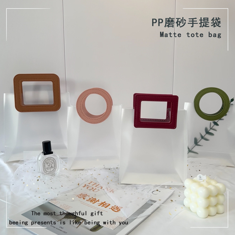 마카롱 컬러 PP 반투명 핸드백 생일 결혼식 기념품 휴일 가죽 선물 가방스토어 가기