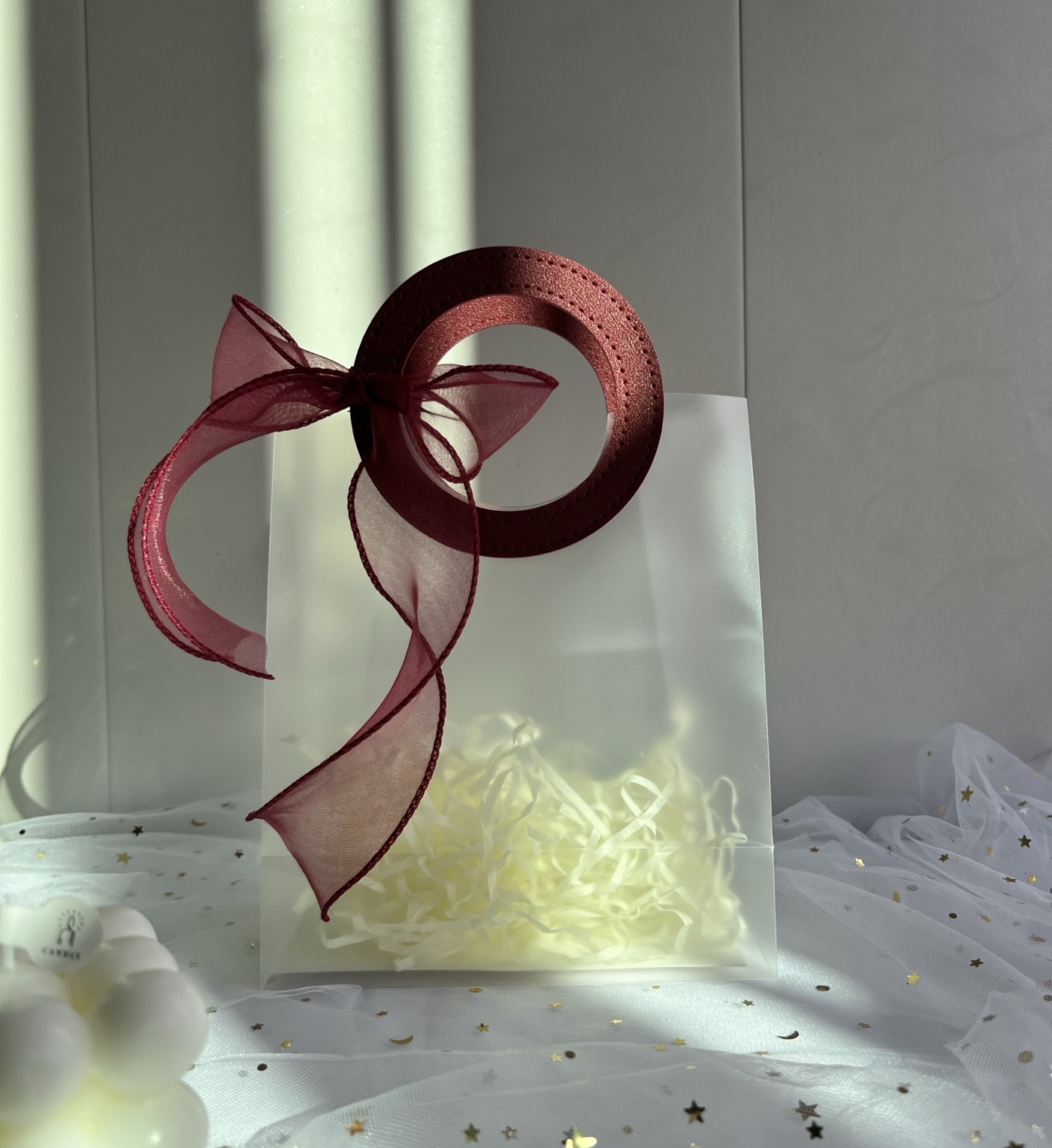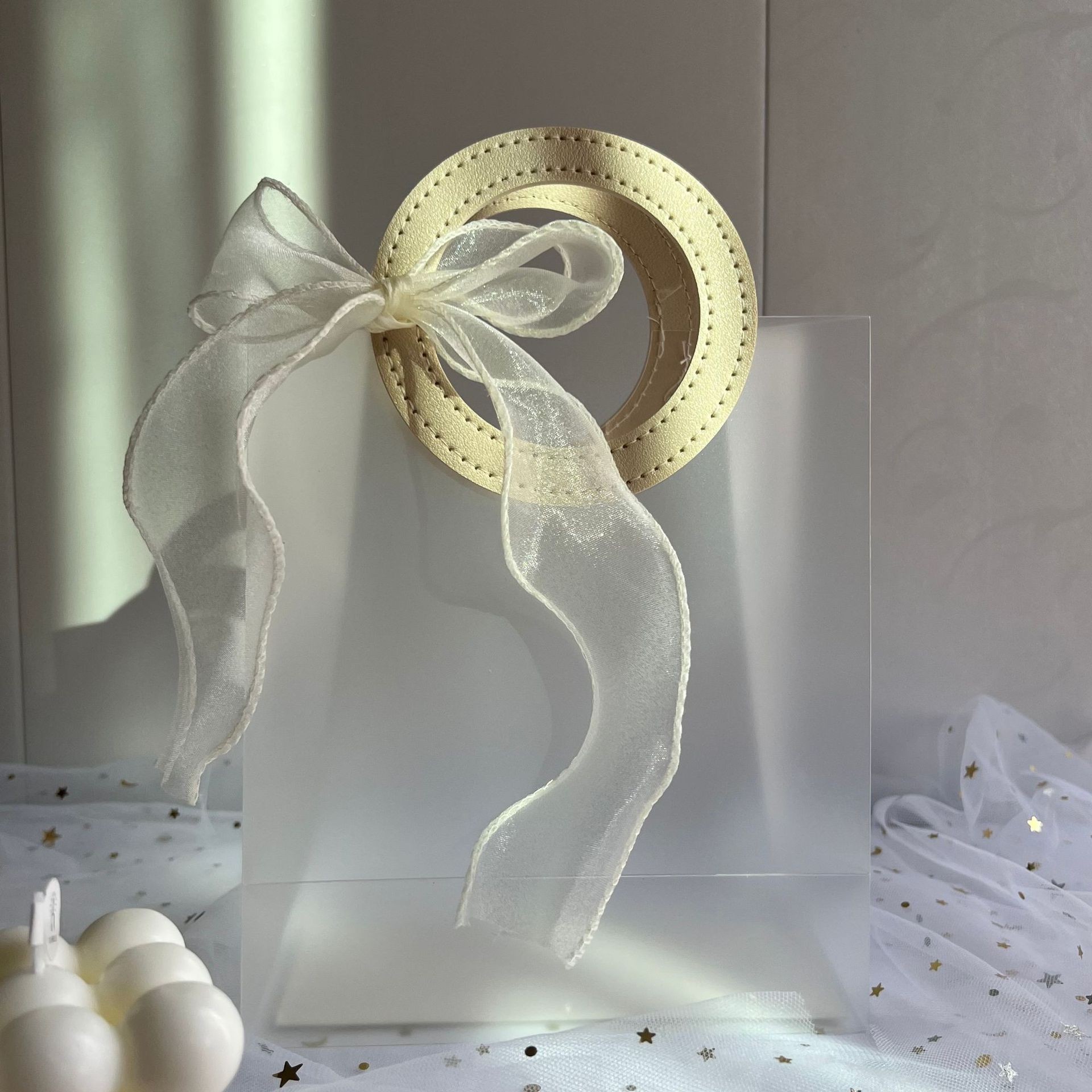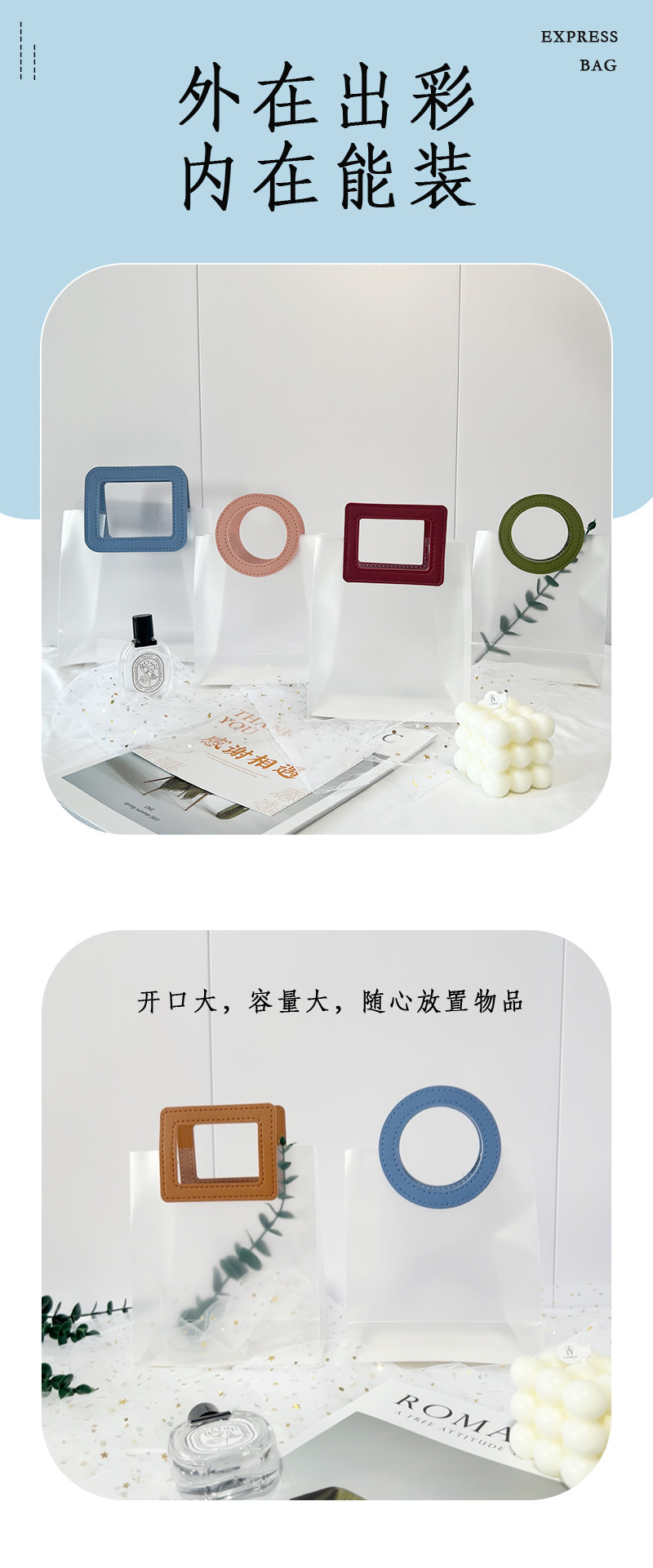 마카롱 컬러 PP 반투명 핸드백 생일 결혼식 기념품 휴일 가죽 선물 가방스토어 가기