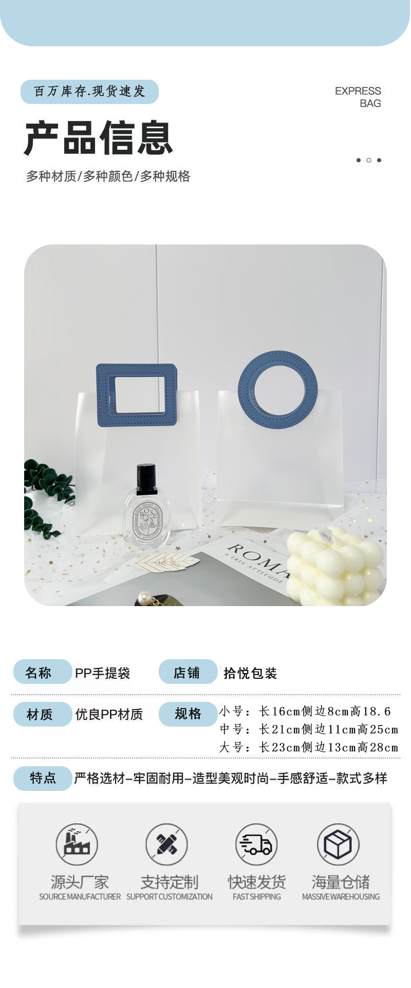 • 파란색 원형; PP; 대형 23폭*27높이*13측면
