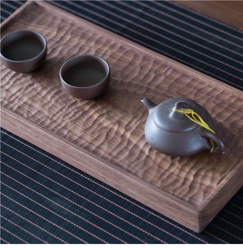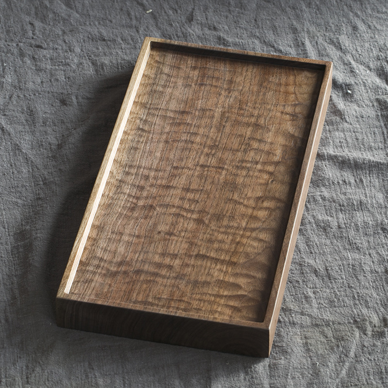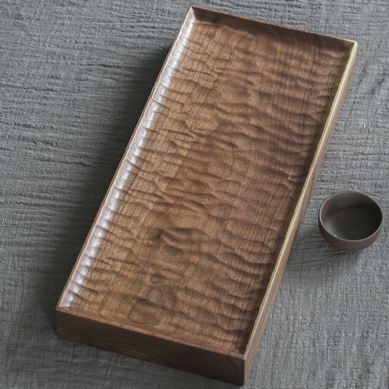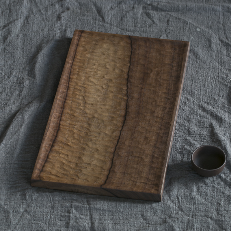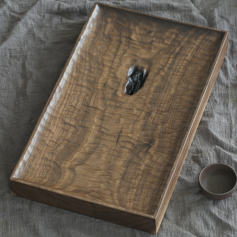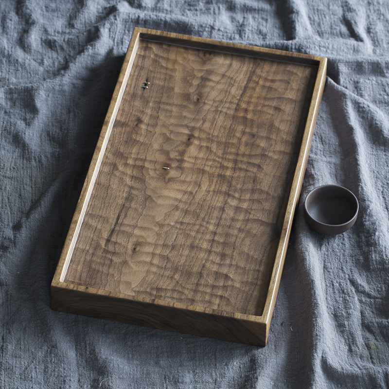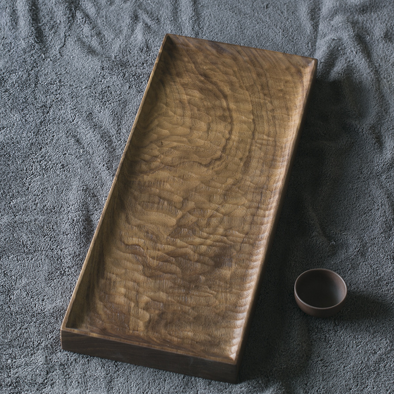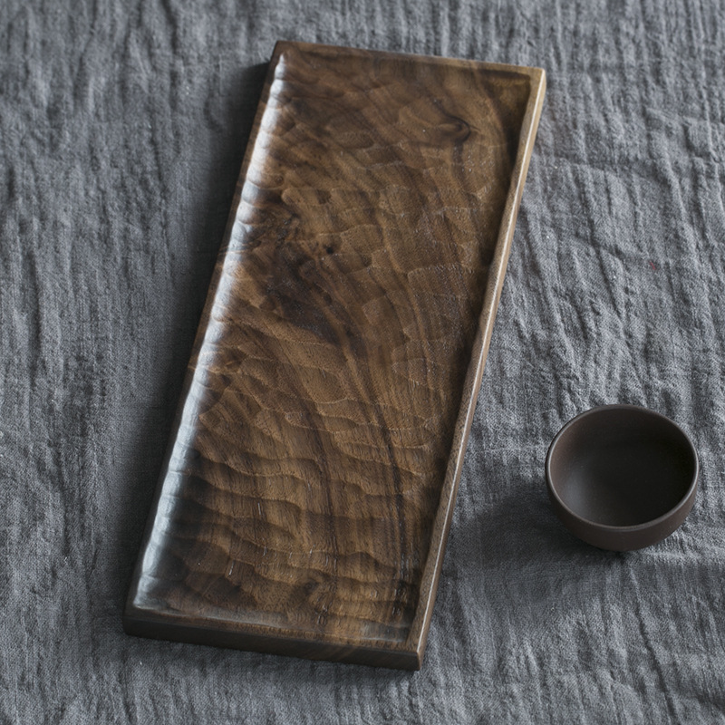 블랙 호두 차 트레이 가정용 수제 트레이 단단한 나무 작은 일본식 건조 차 세트 현대 간단한 차 바다스토어 가기