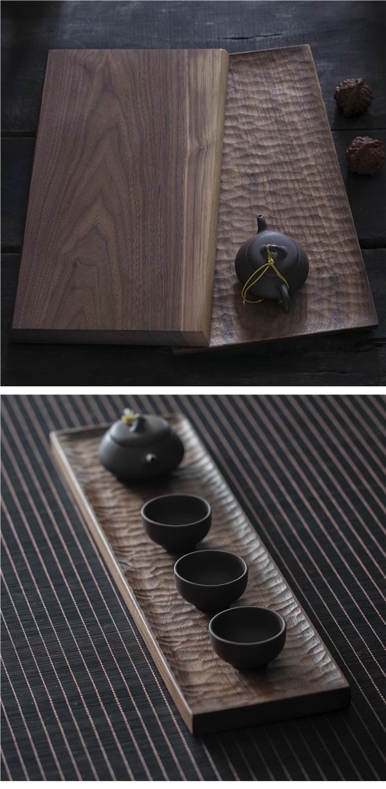 블랙 호두 차 트레이 가정용 수제 트레이 단단한 나무 작은 일본식 건조 차 세트 현대 간단한 차 바다