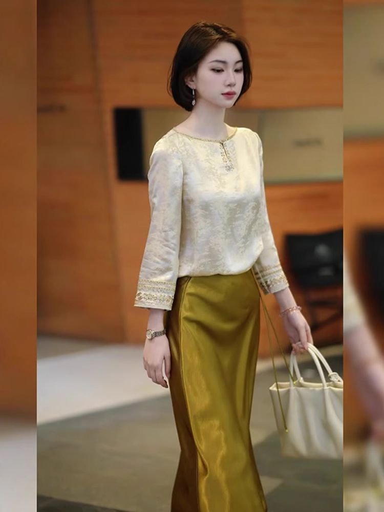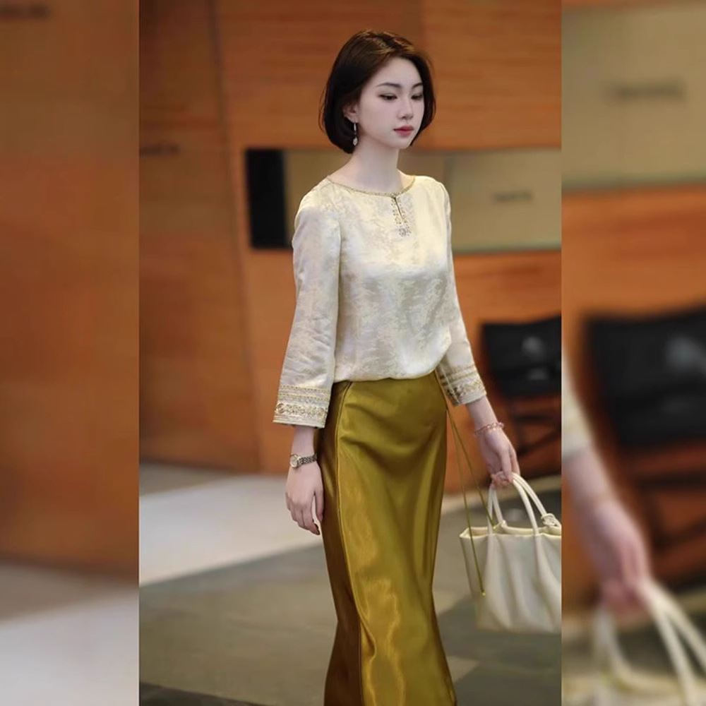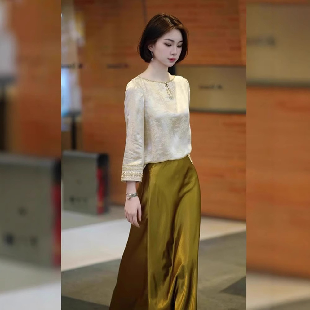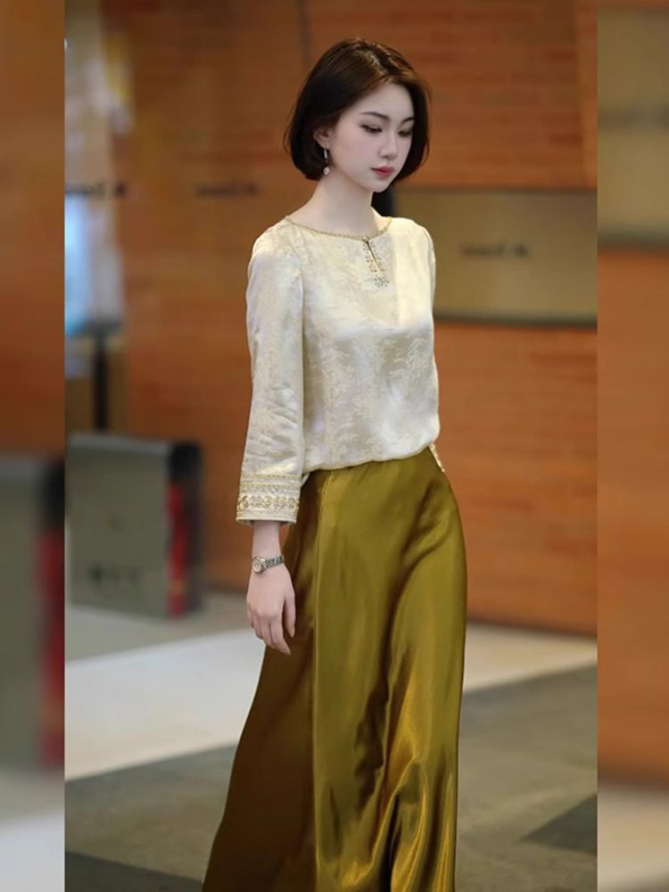 2026년 초인기 신상품 고급스럽고 여성스러운 새로운 중국풍 스커트 투피스 세트 여성 여름 의류