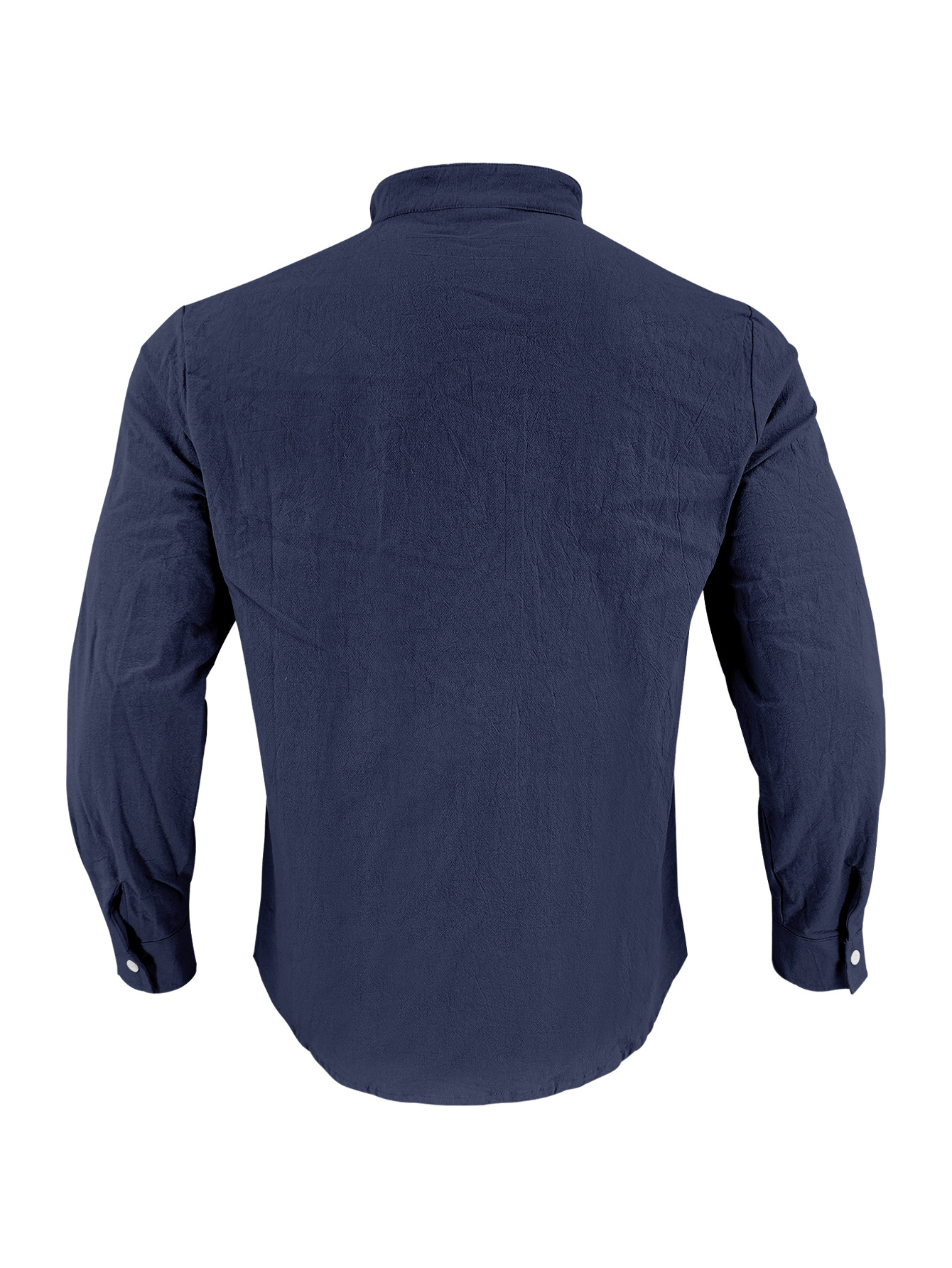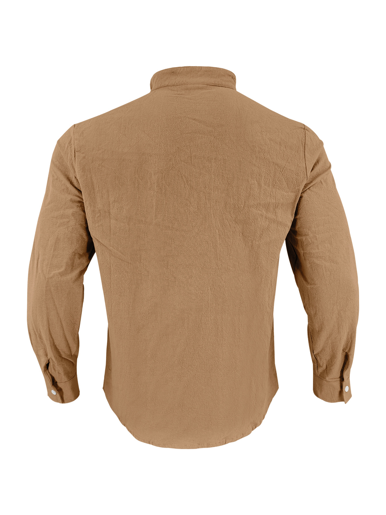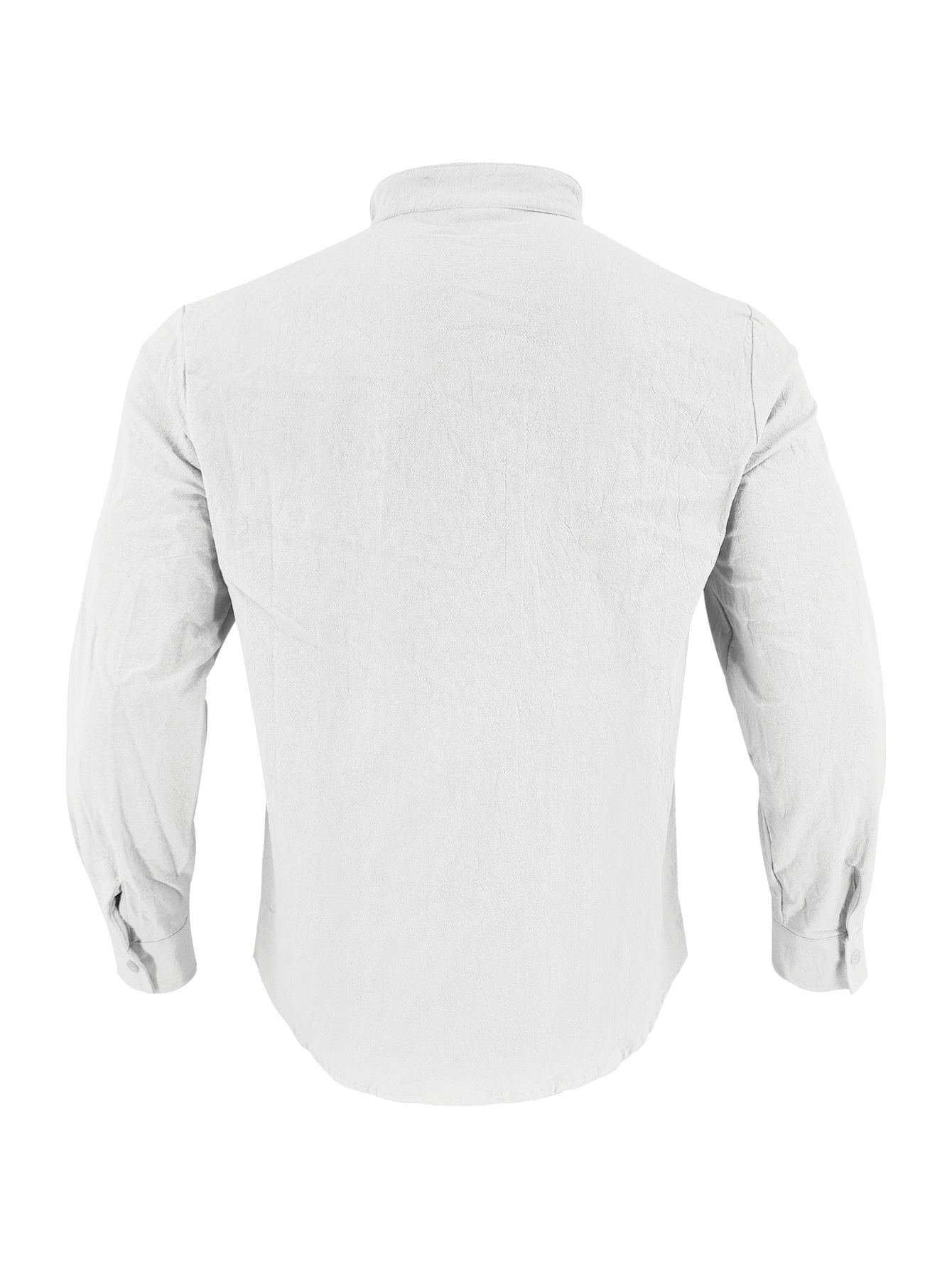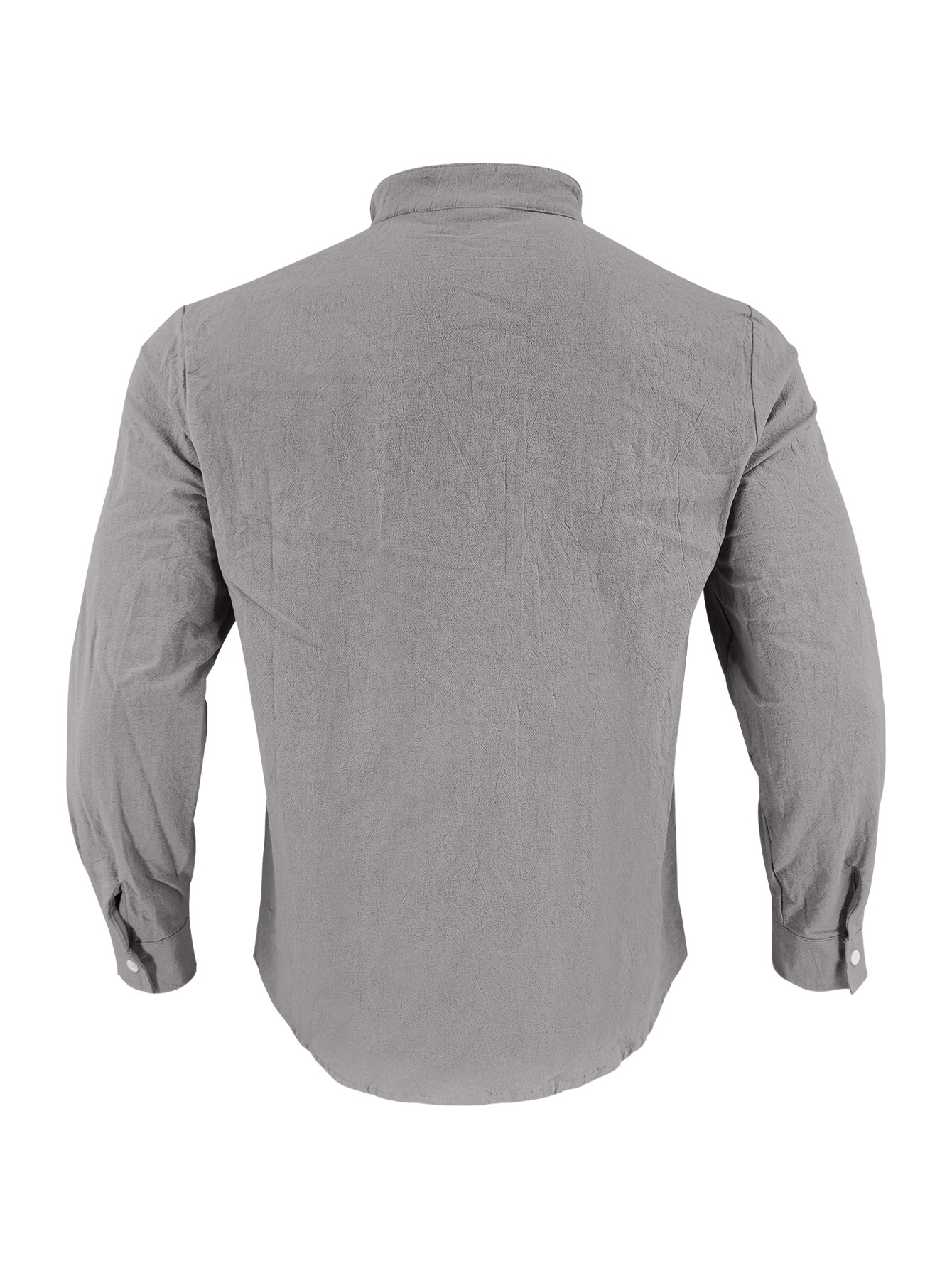 남성 긴팔 신작 유럽과 미국의 면 및 린넨 헨리 셔츠 히피 캐주얼 비치 스탠드 칼라 셔츠 솔리드 컬러 유럽 사이즈 크로스보더