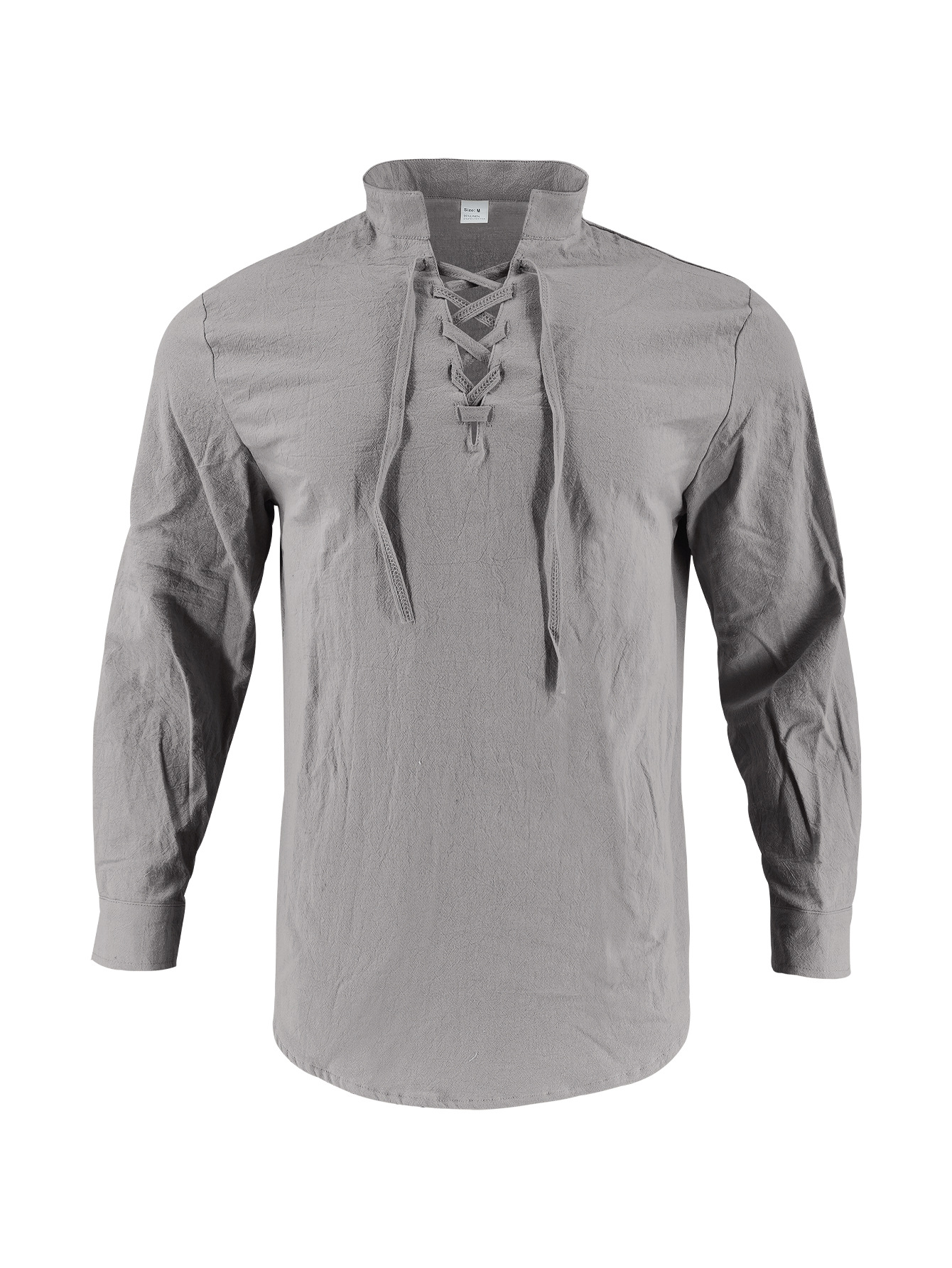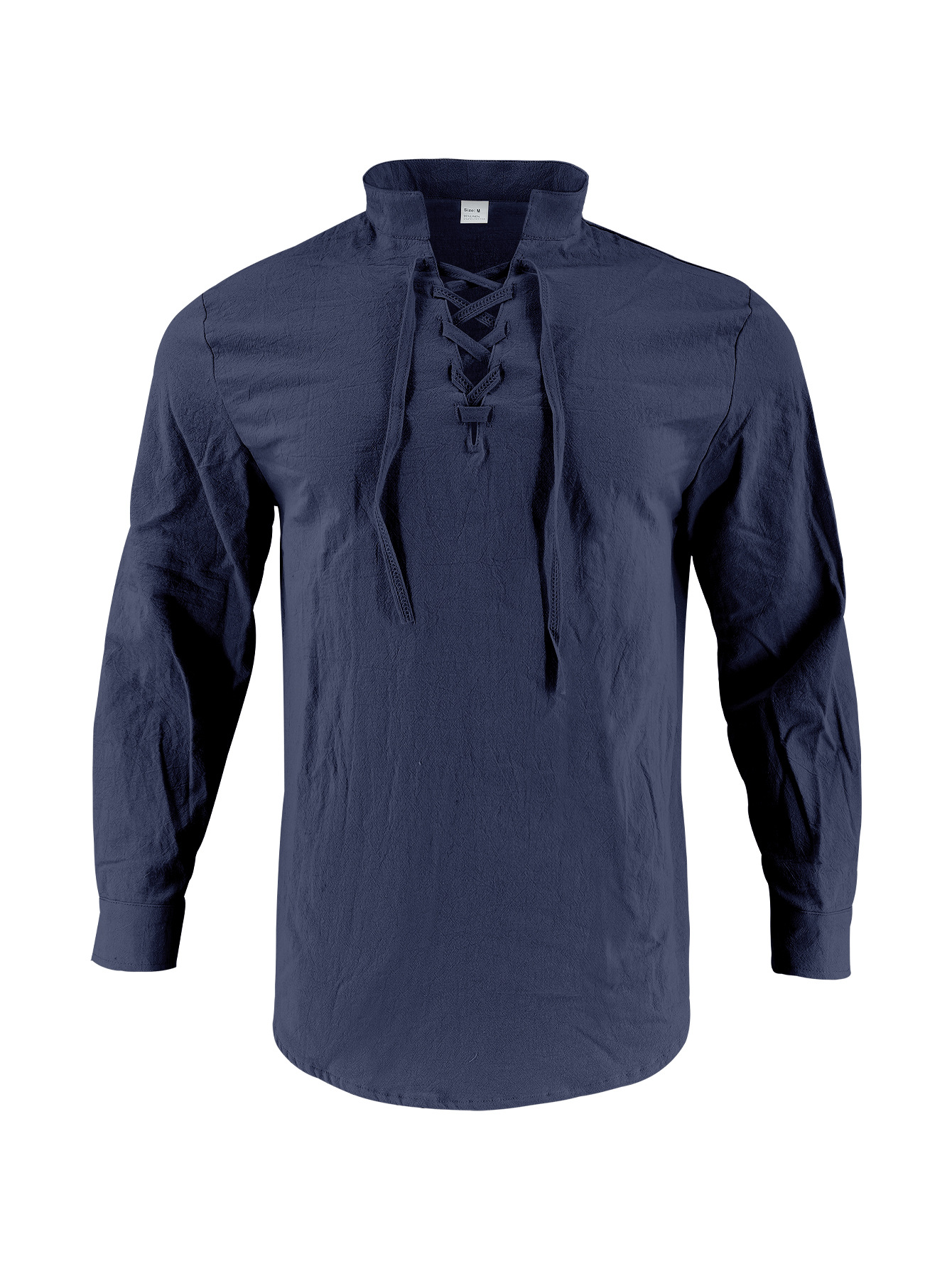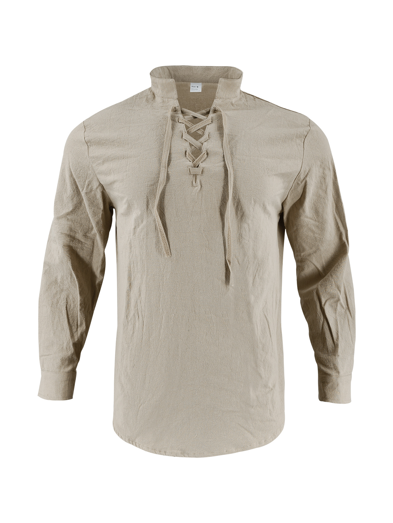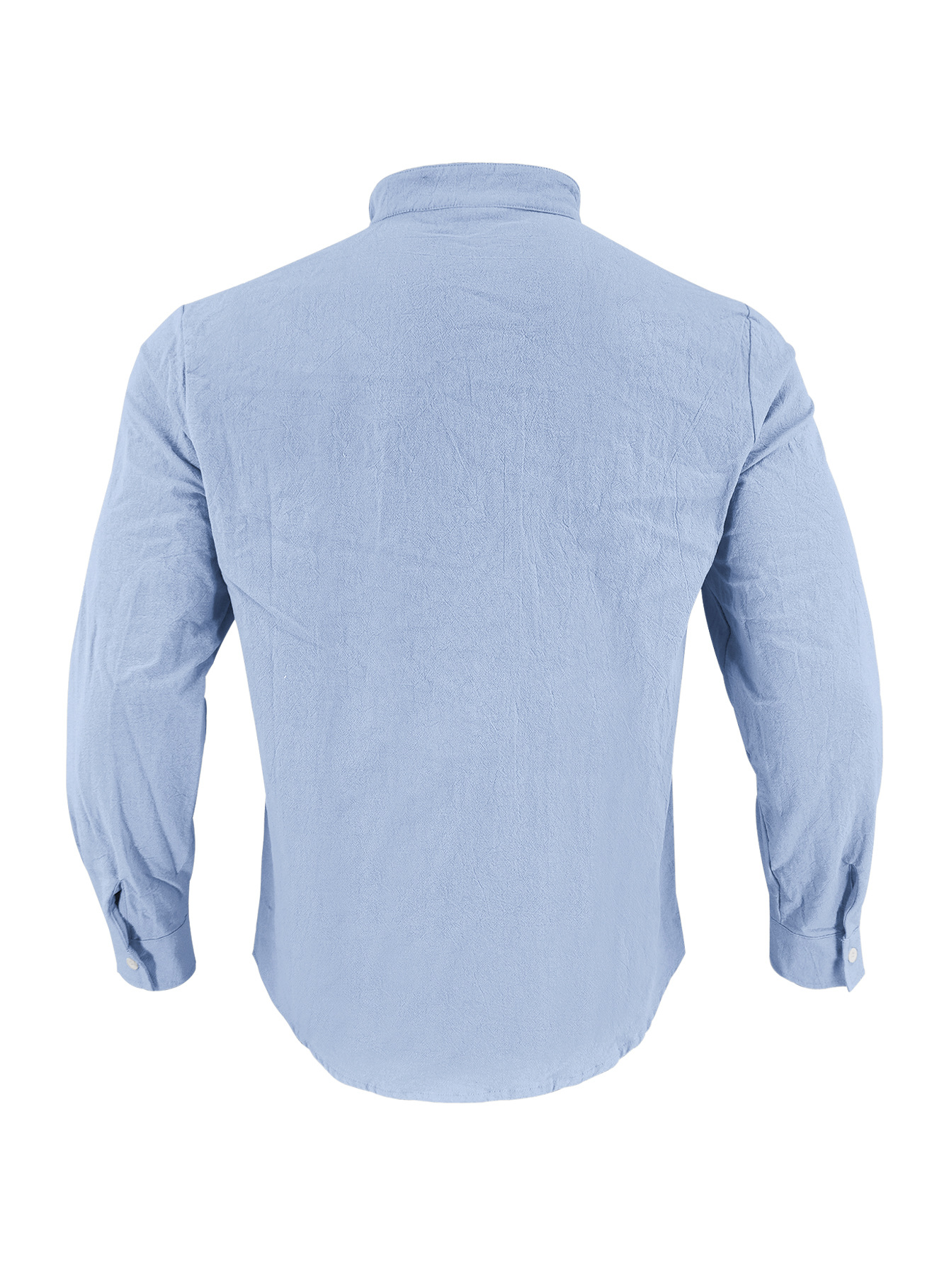 남성 긴팔 신작 유럽과 미국의 면 및 린넨 헨리 셔츠 히피 캐주얼 비치 스탠드 칼라 셔츠 솔리드 컬러 유럽 사이즈 크로스보더