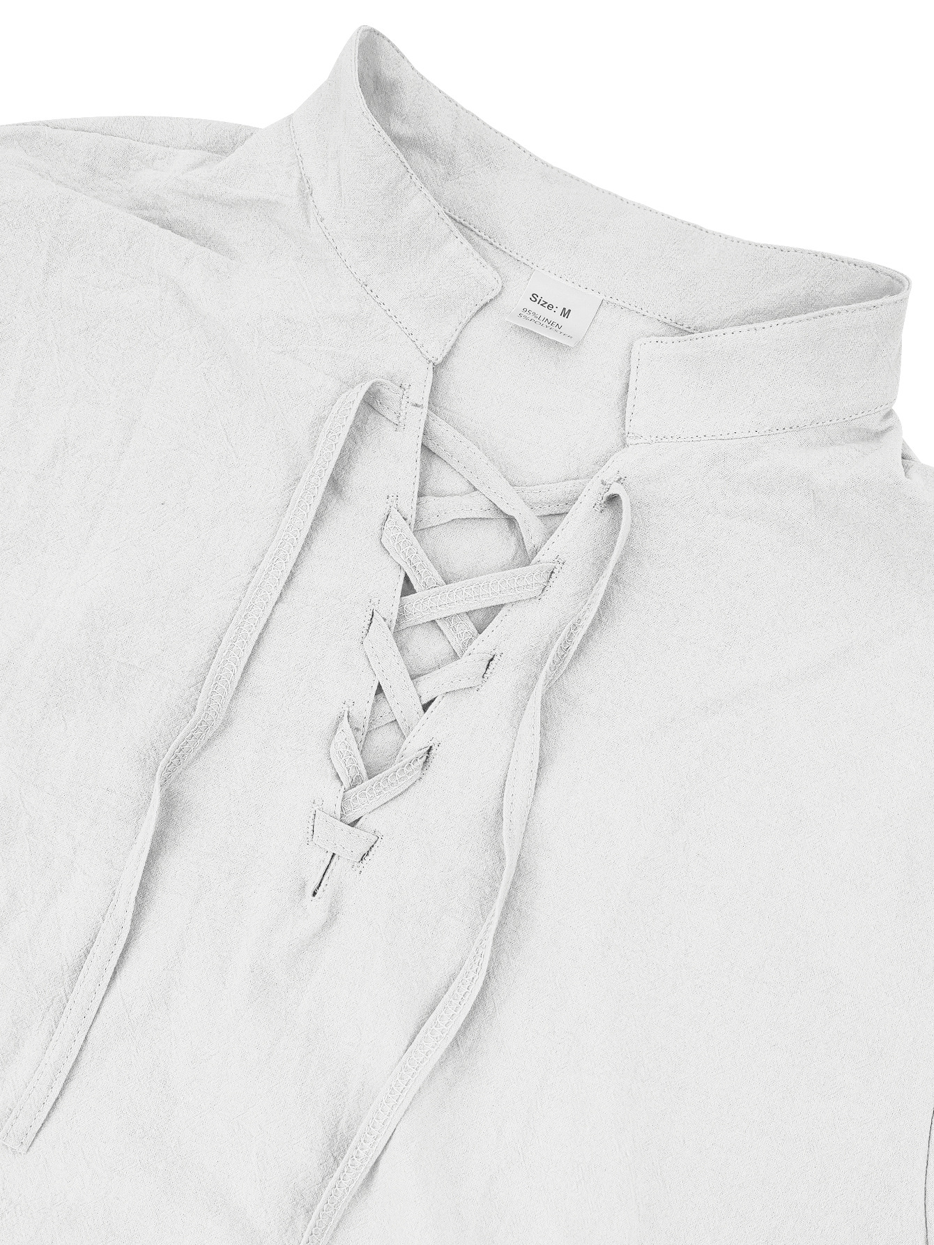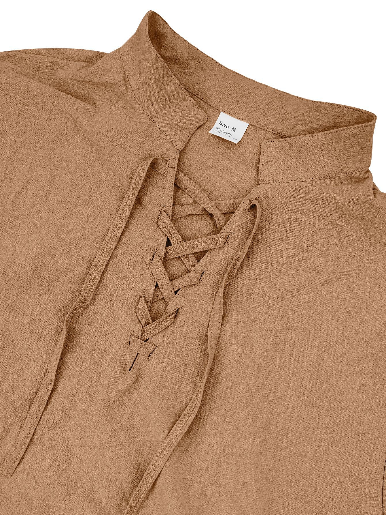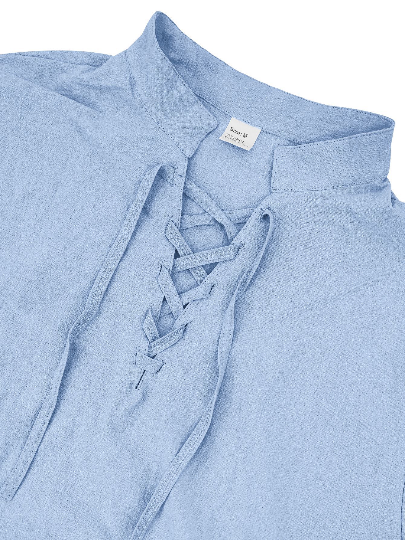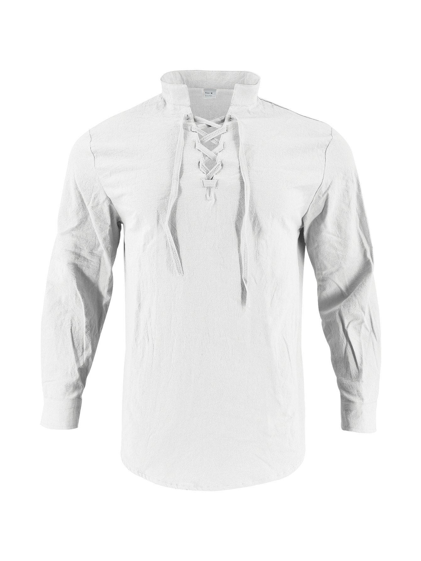 남성 긴팔 신작 유럽과 미국의 면 및 린넨 헨리 셔츠 히피 캐주얼 비치 스탠드 칼라 셔츠 솔리드 컬러 유럽 사이즈 크로스보더
