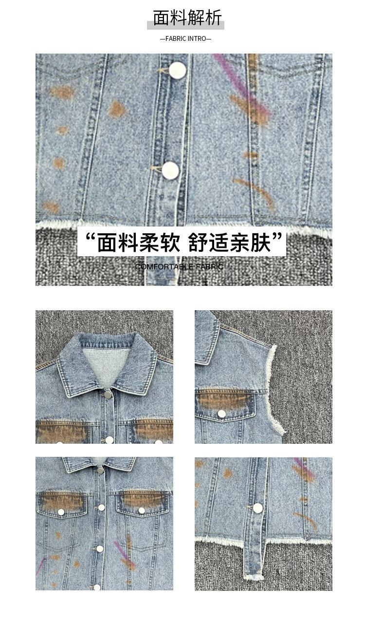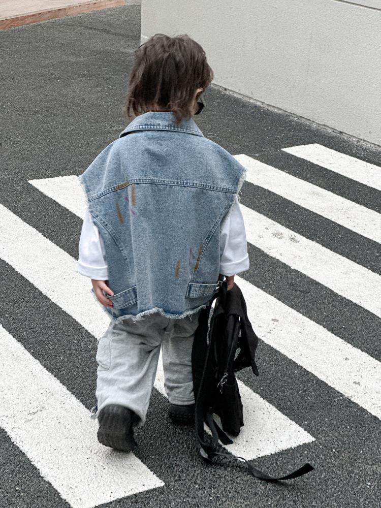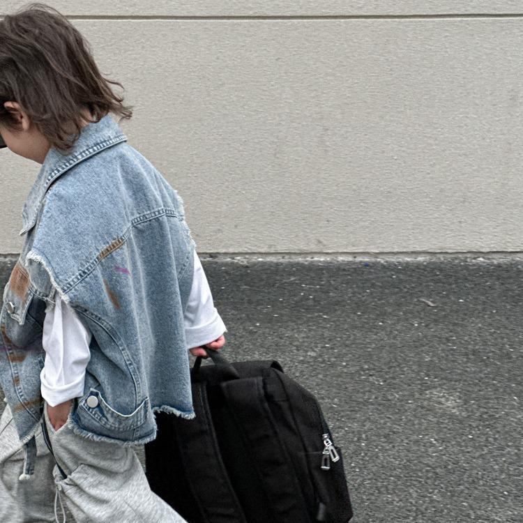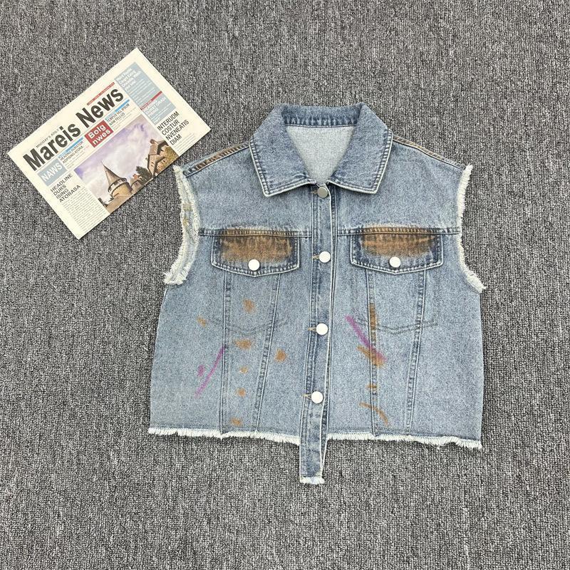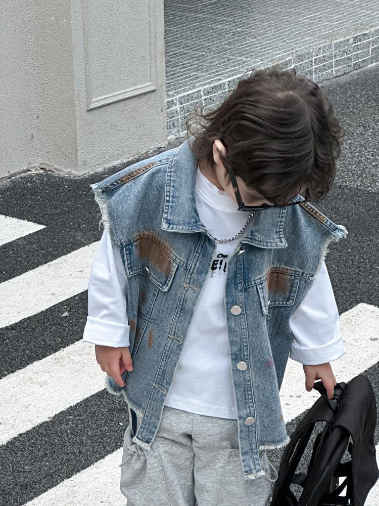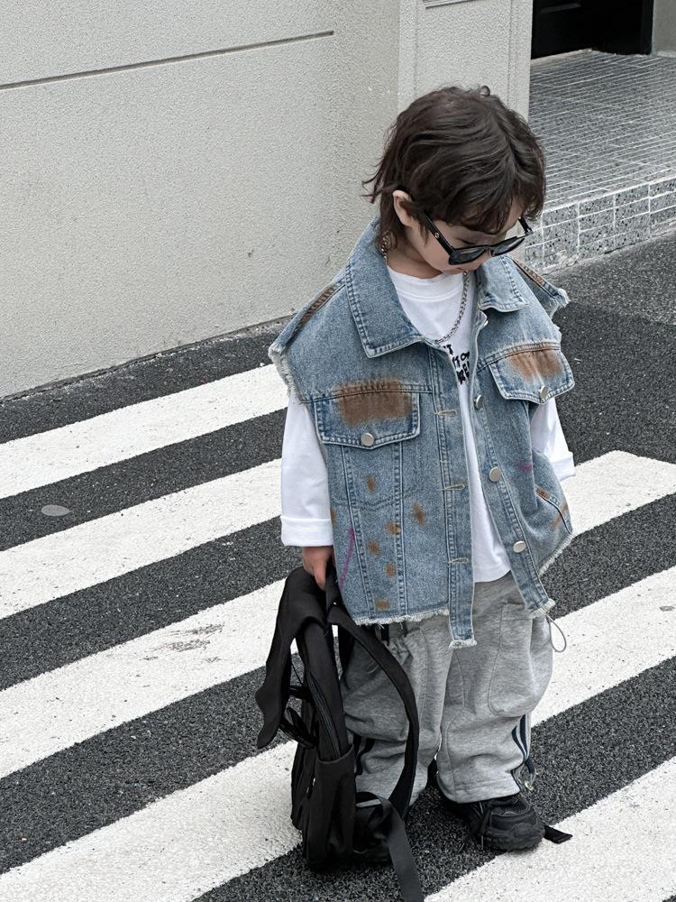 2025 봄 신작 아동 조끼 컬러 페인트 데님 조끼 소년 봄 옷 한국 스타일 아동복스토어 가기