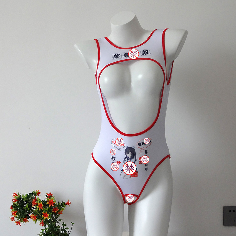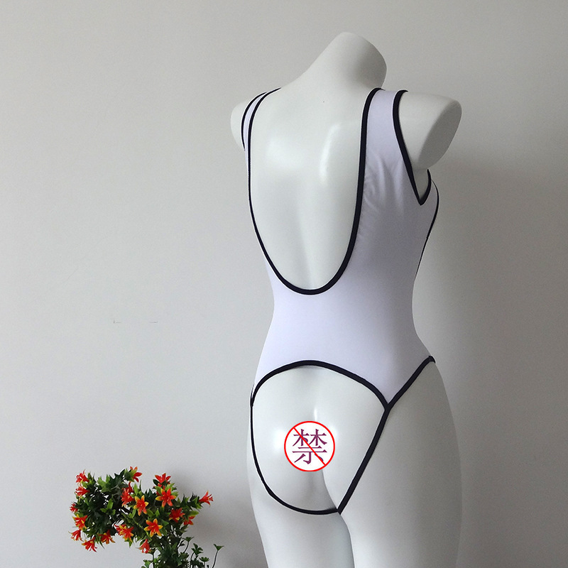 섹시한 속옷, 섹시한 가슴 노출, 등 노출, 가랑이 없는 점프수트, 고탄성 중공 데드 워터 오픈 패치, 탈착 불가, 원피스