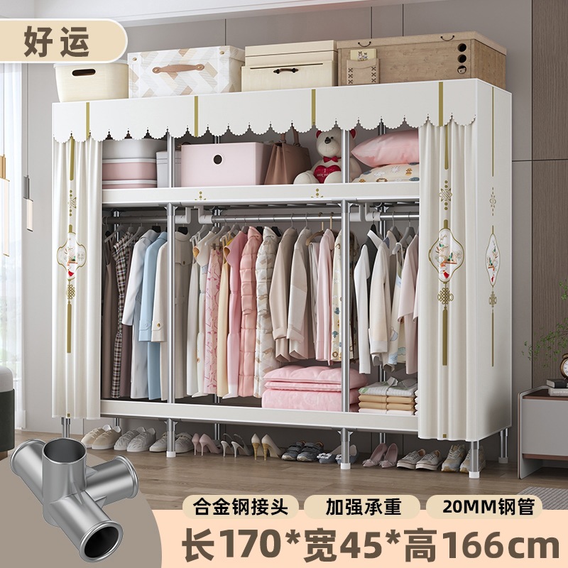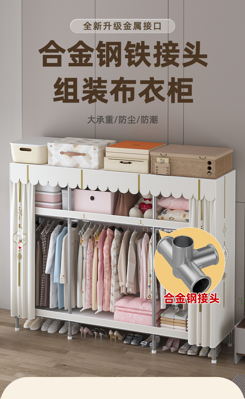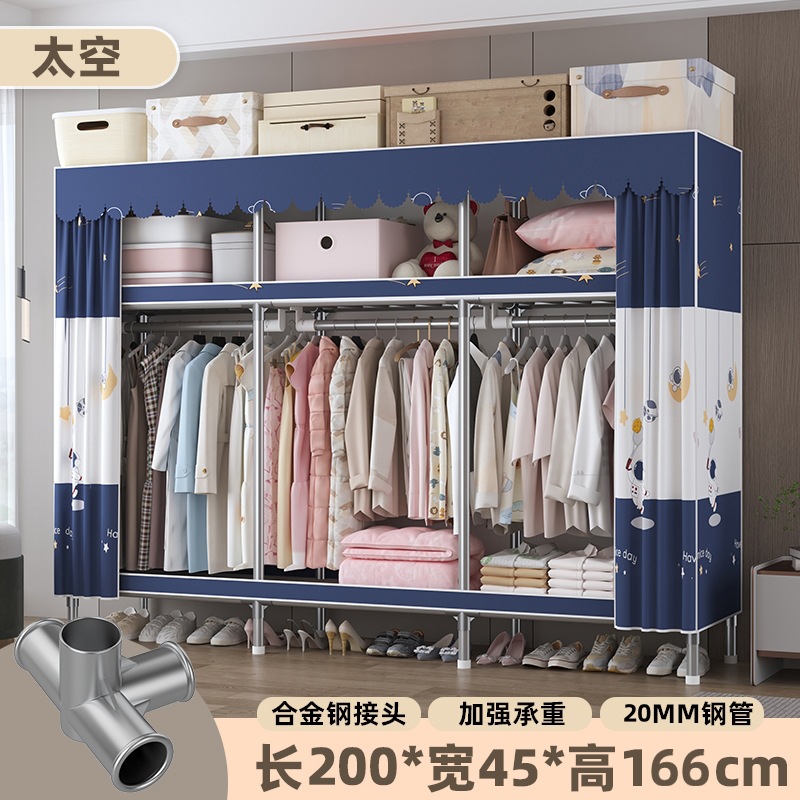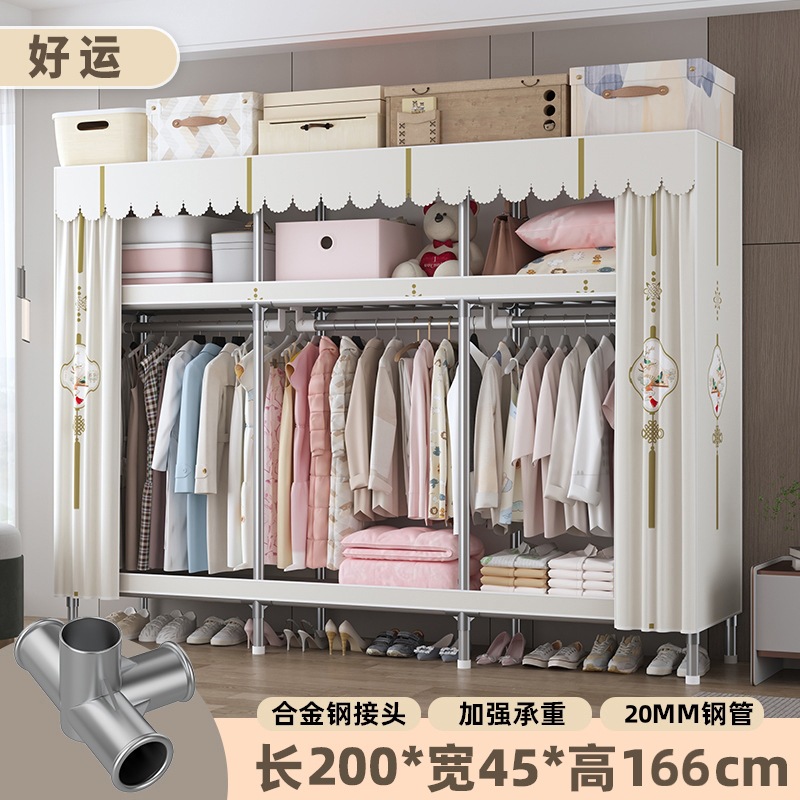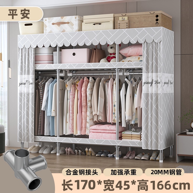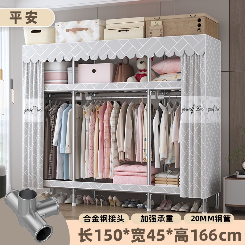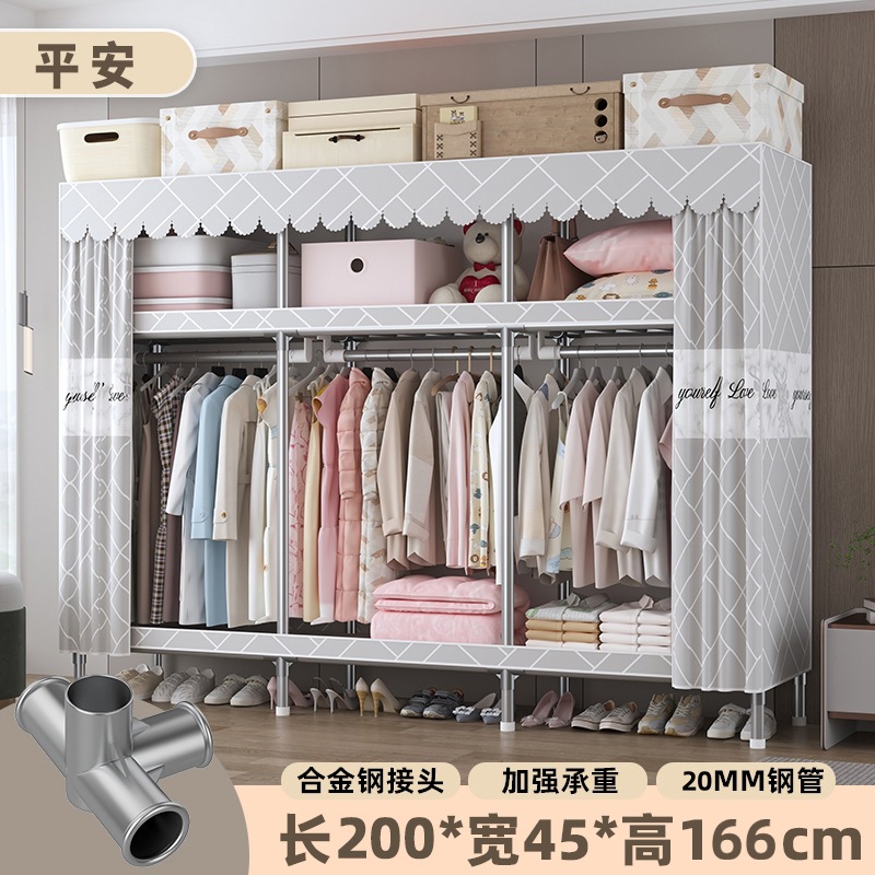 심플 옷장, 전체 스틸 프레임, 두꺼운 강철 튜브, 침실용 대용량 가정용 천 옷장, 공장 직판 스틸제스토어 가기