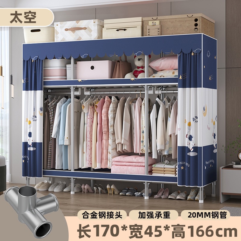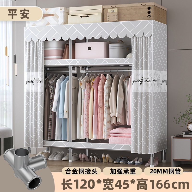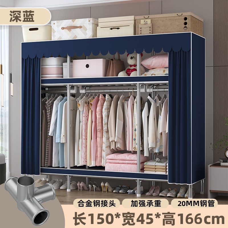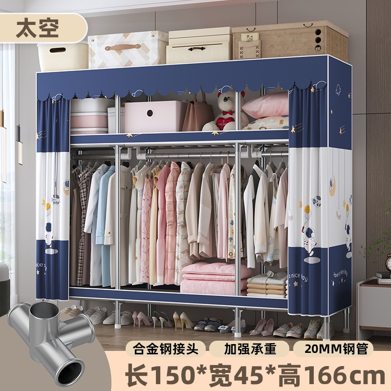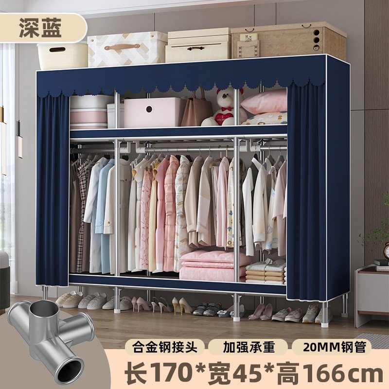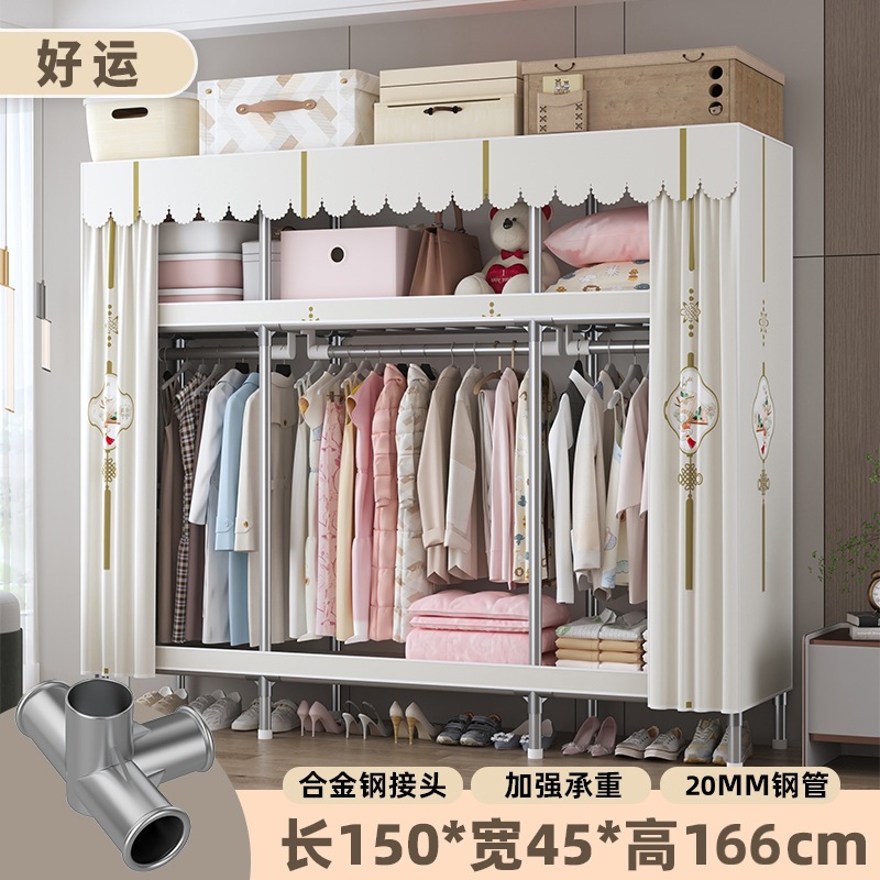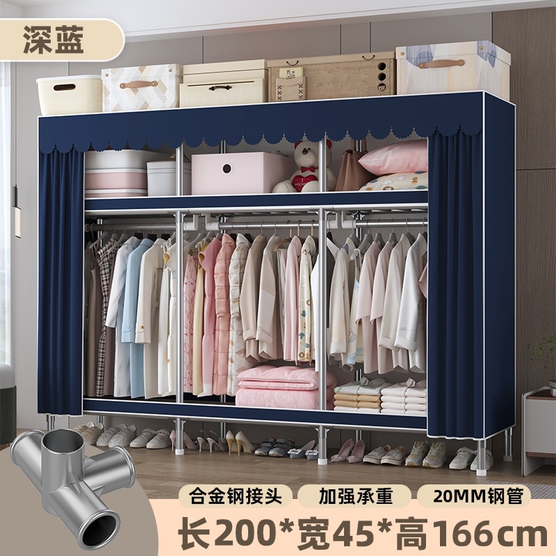 심플 옷장, 전체 스틸 프레임, 두꺼운 강철 튜브, 침실용 대용량 가정용 천 옷장, 공장 직판 스틸제스토어 가기