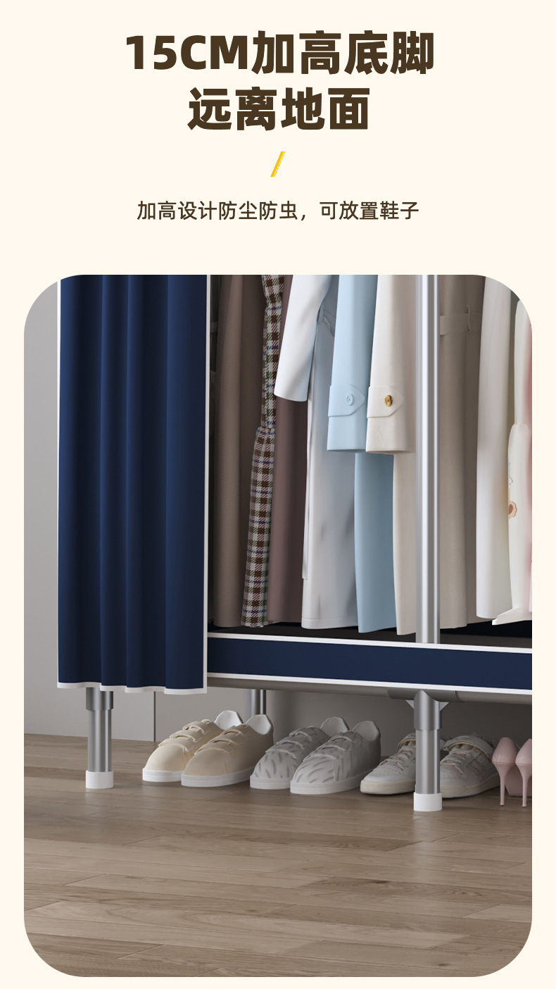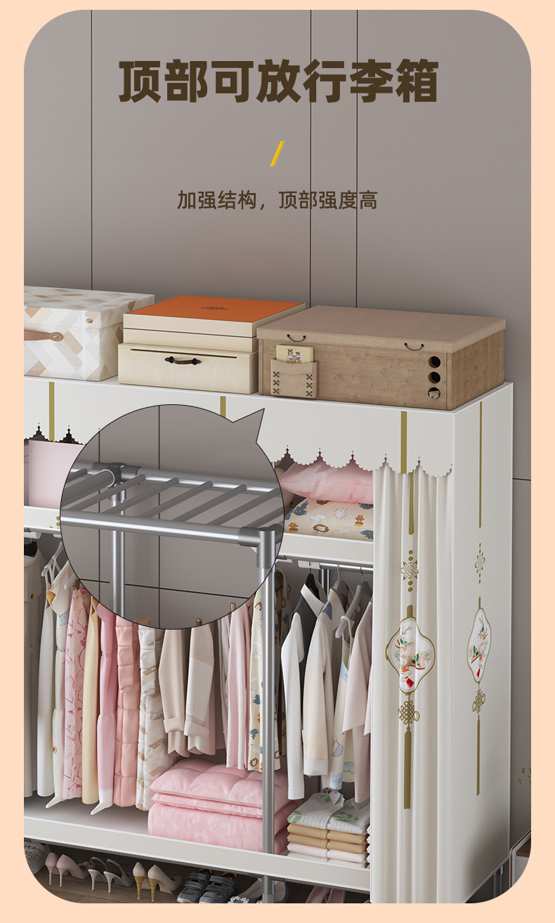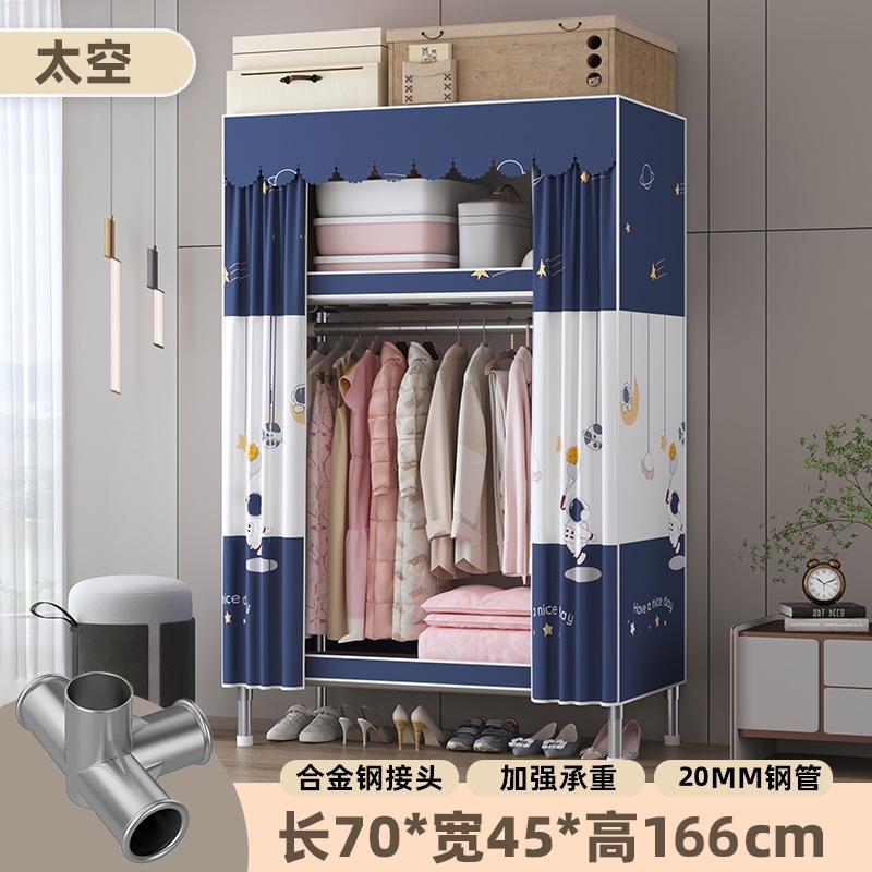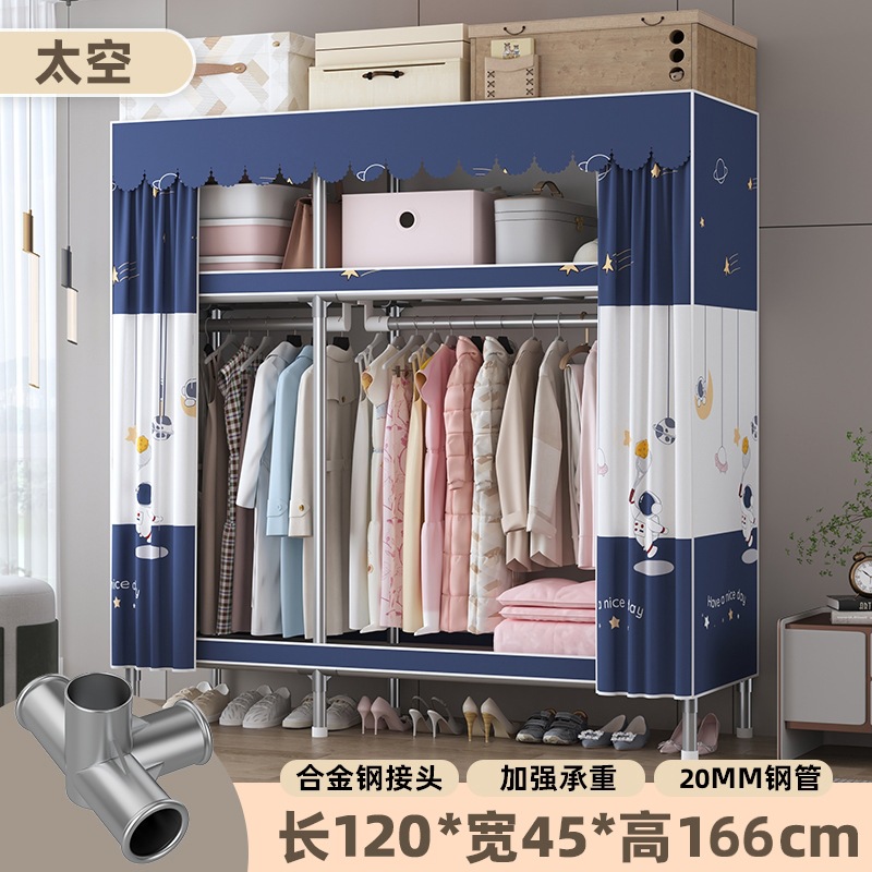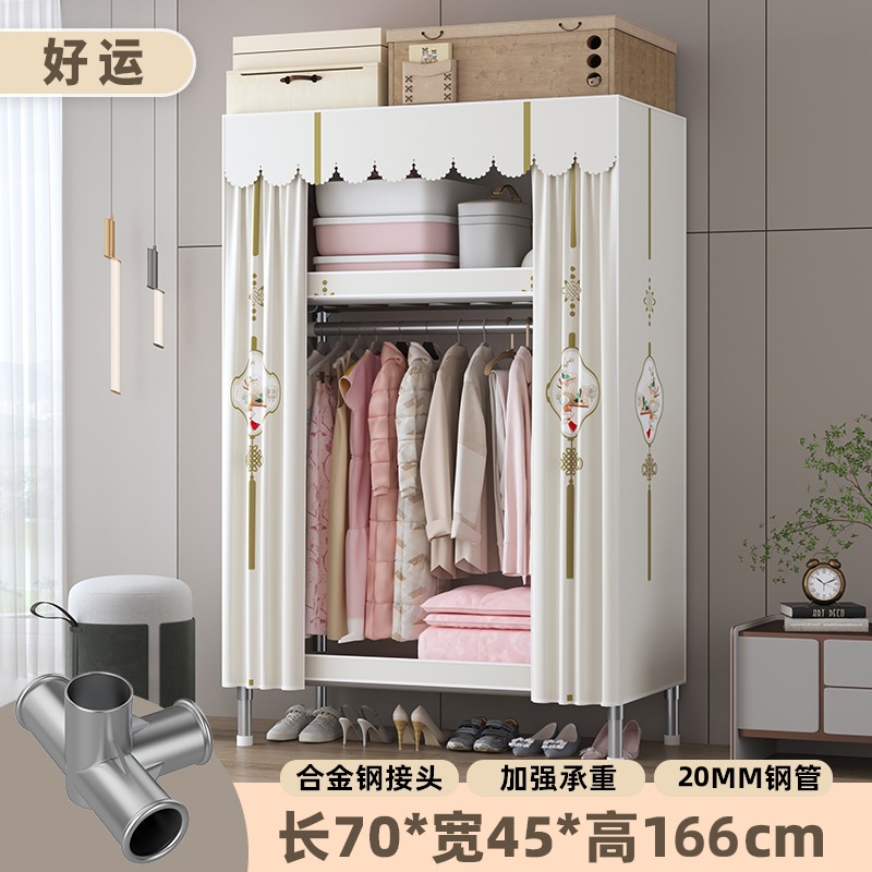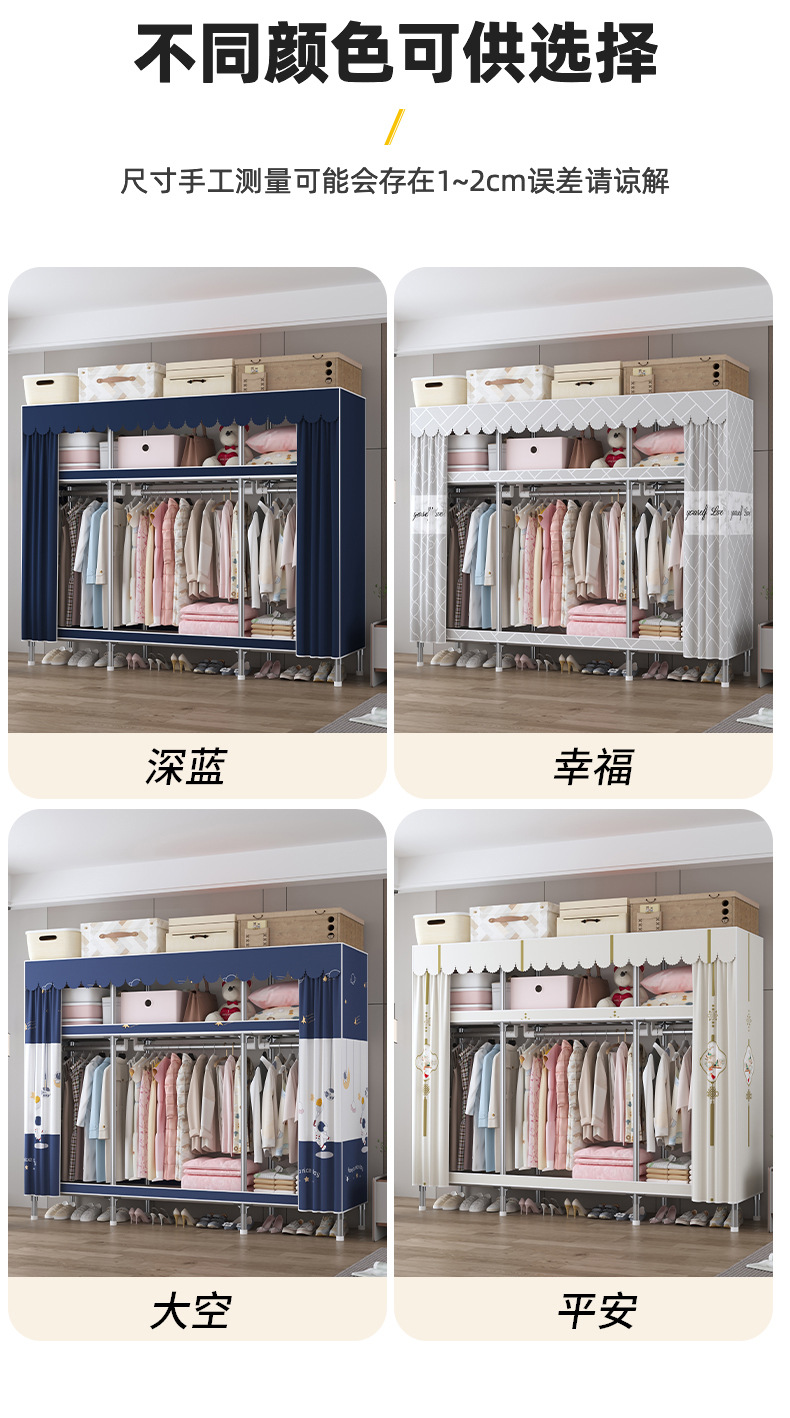 심플 옷장, 전체 스틸 프레임, 두꺼운 강철 튜브, 침실용 대용량 가정용 천 옷장, 공장 직판 스틸제스토어 가기