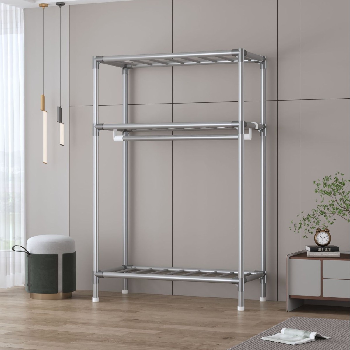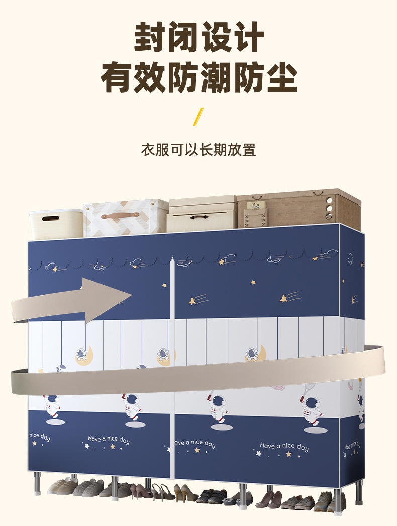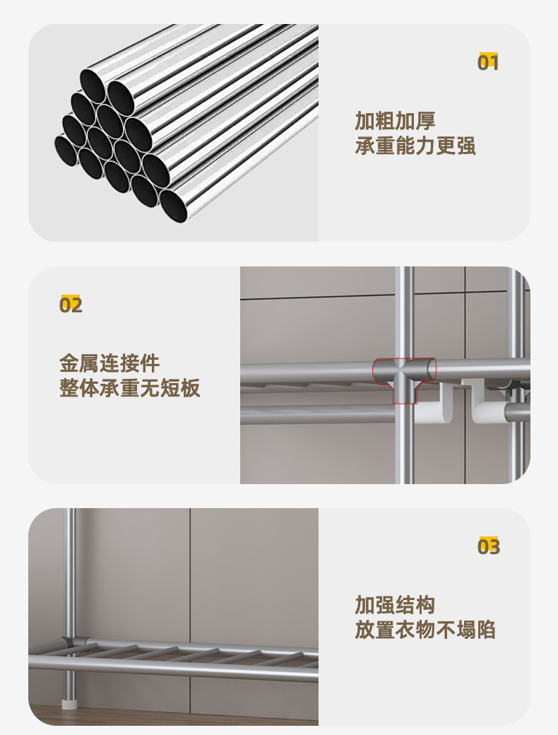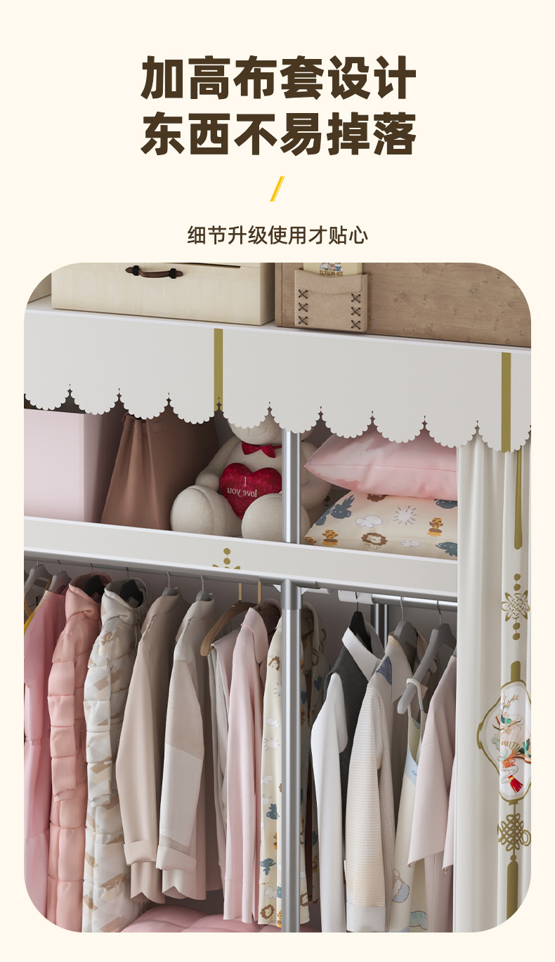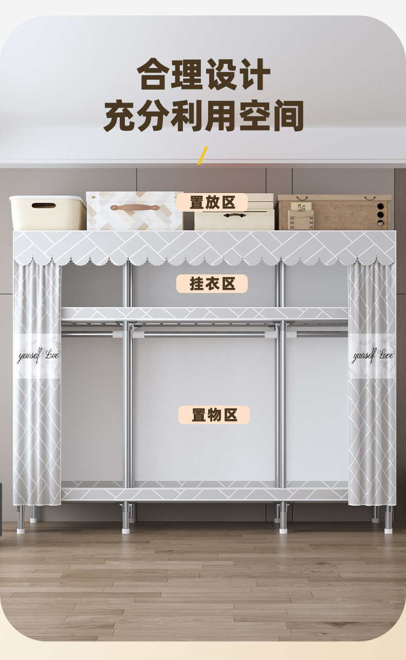 심플 옷장, 전체 스틸 프레임, 두꺼운 강철 튜브, 침실용 대용량 가정용 천 옷장, 공장 직판 스틸제스토어 가기