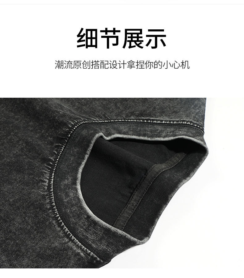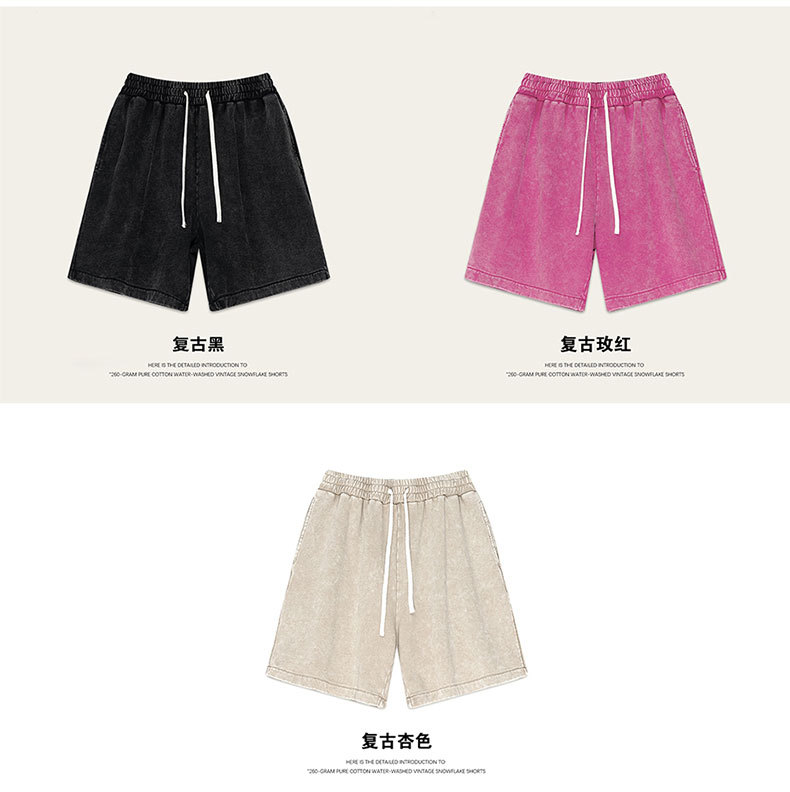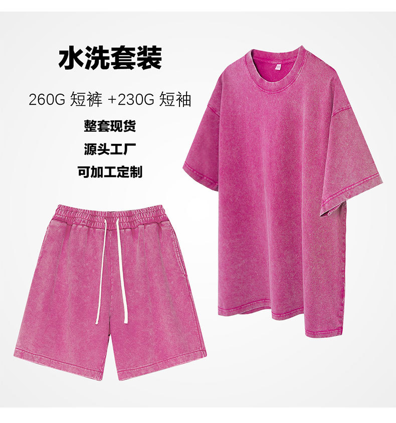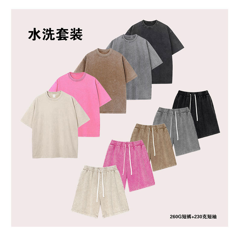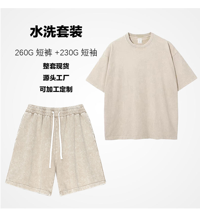 2025 여름 헤비급 트렌디 브랜드 워싱 및 디스트레스드 퓨어 코튼 반팔 반바지 남성용 캐주얼 슈트스토어 가기