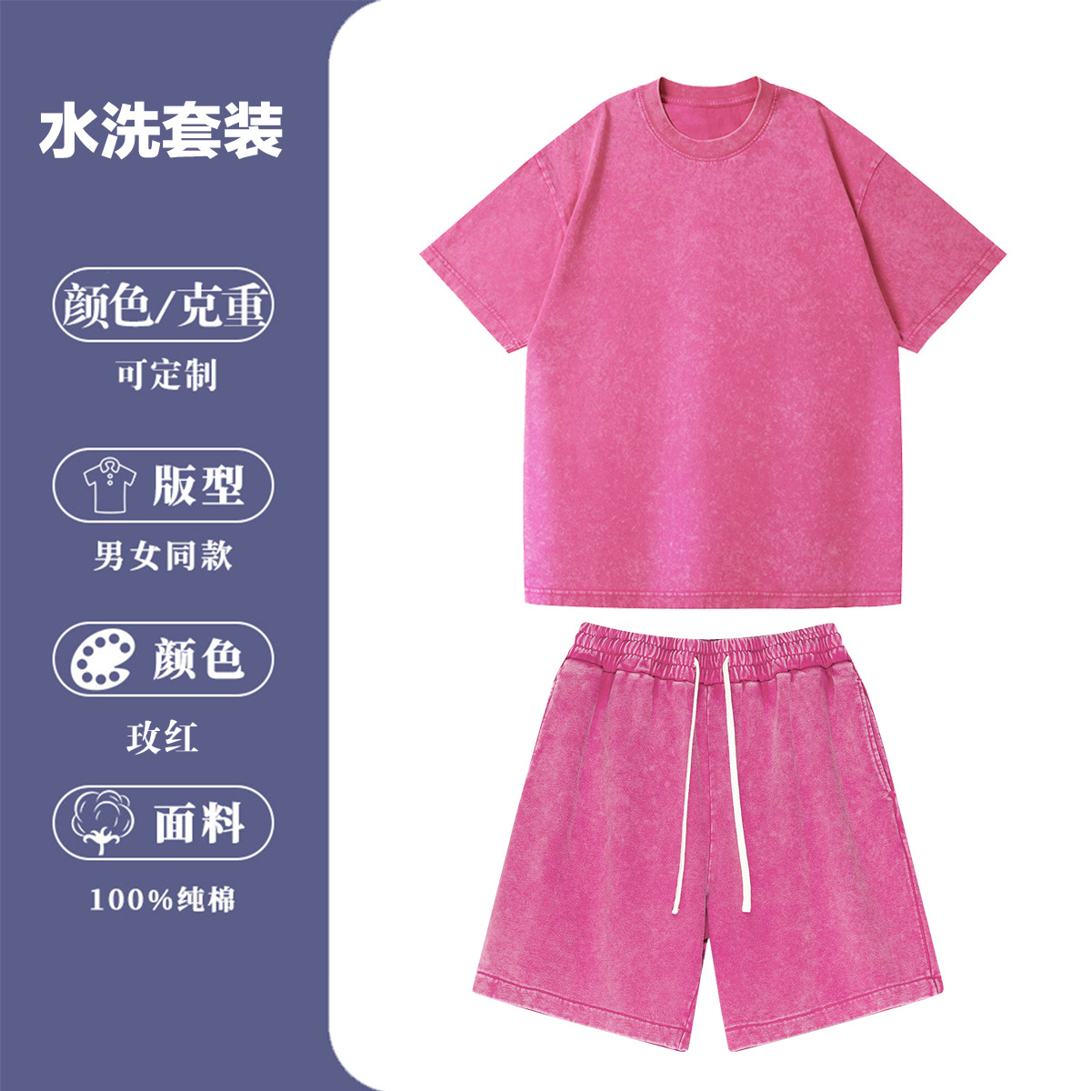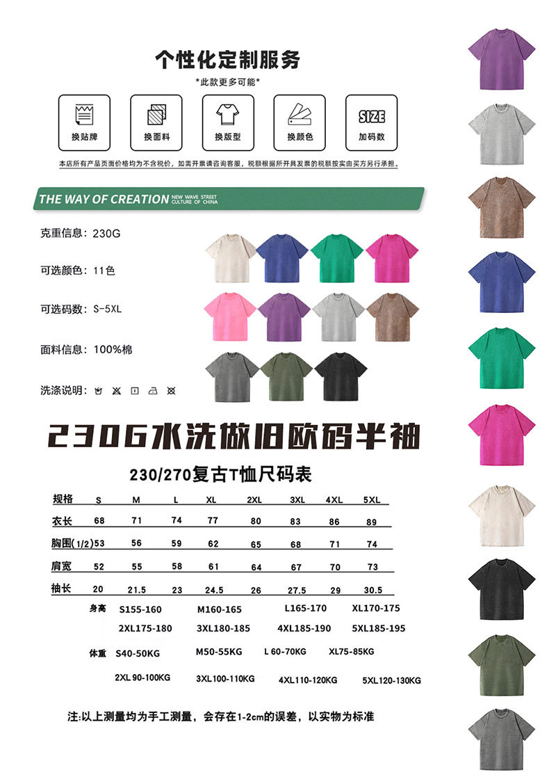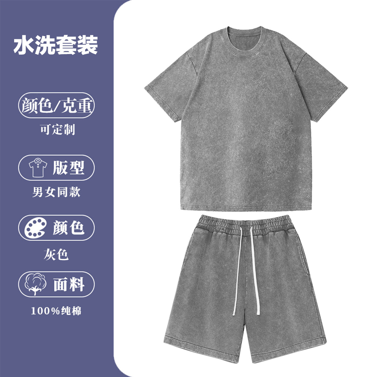 2025 여름 헤비급 트렌디 브랜드 워싱 및 디스트레스드 퓨어 코튼 반팔 반바지 남성용 캐주얼 슈트스토어 가기