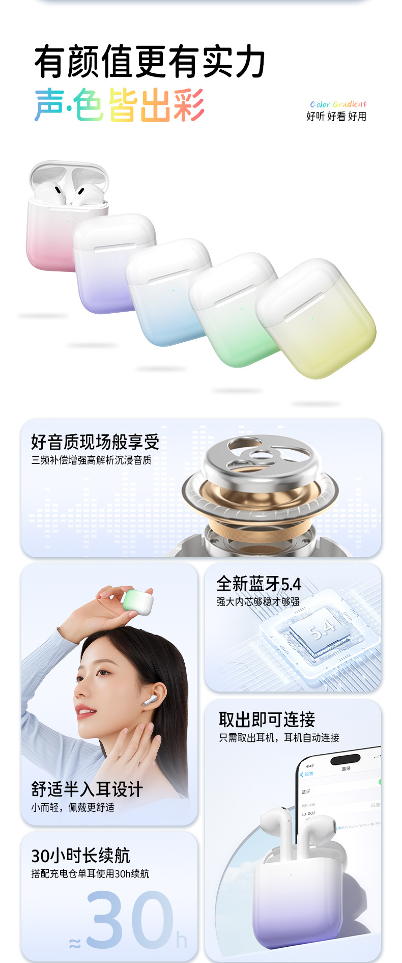새로운 그라디언트 색상 블루투스 헤드셋 큰 전원 마카롱 컬러 무선 블루투스 헤드셋 도매스토어 가기