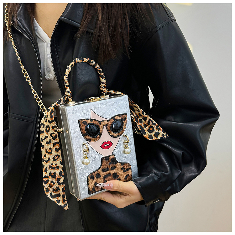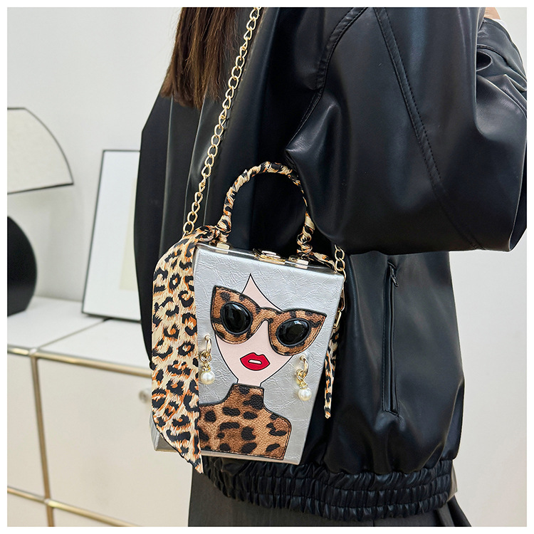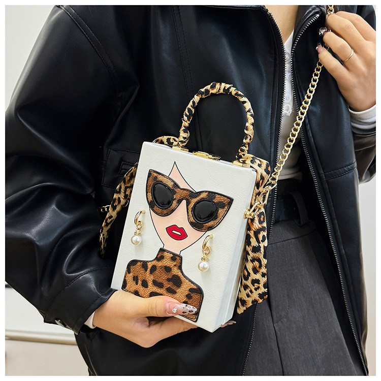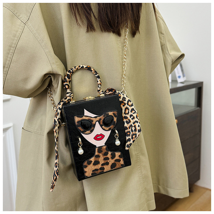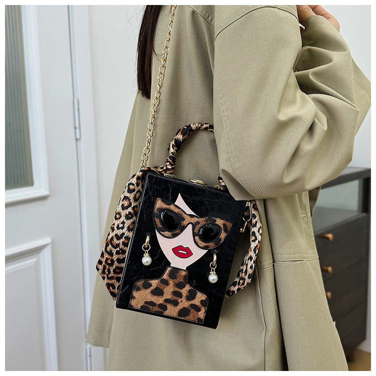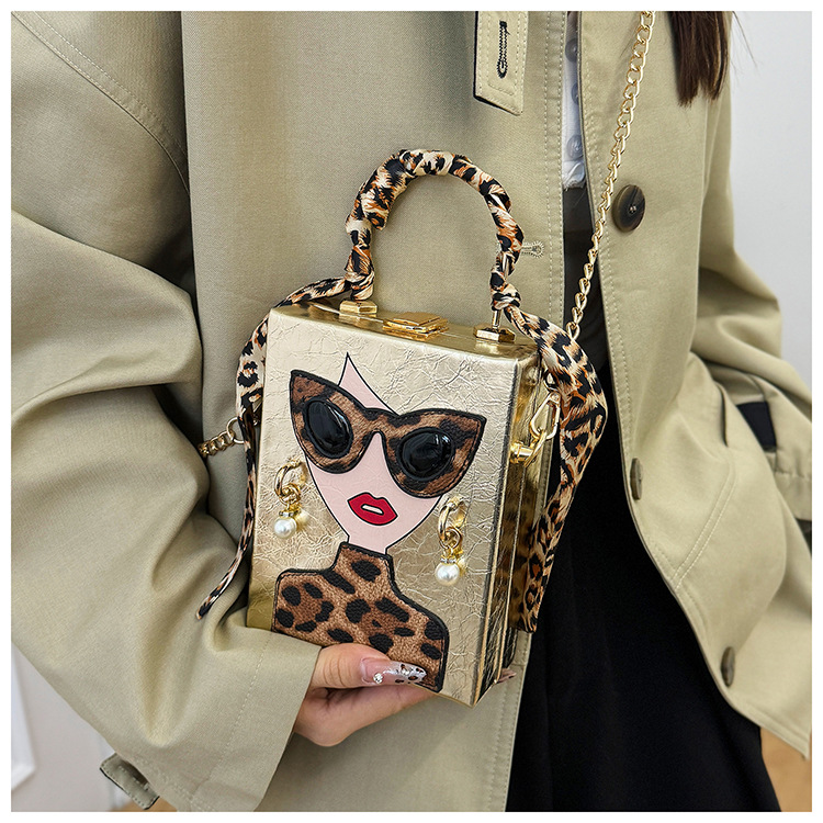 개인화 된 가방 여성의 새로운 유럽과 미국의 패션 레오파드 아름다움 상자 가방 틈새 디자인 체인 어깨 메신저 가방