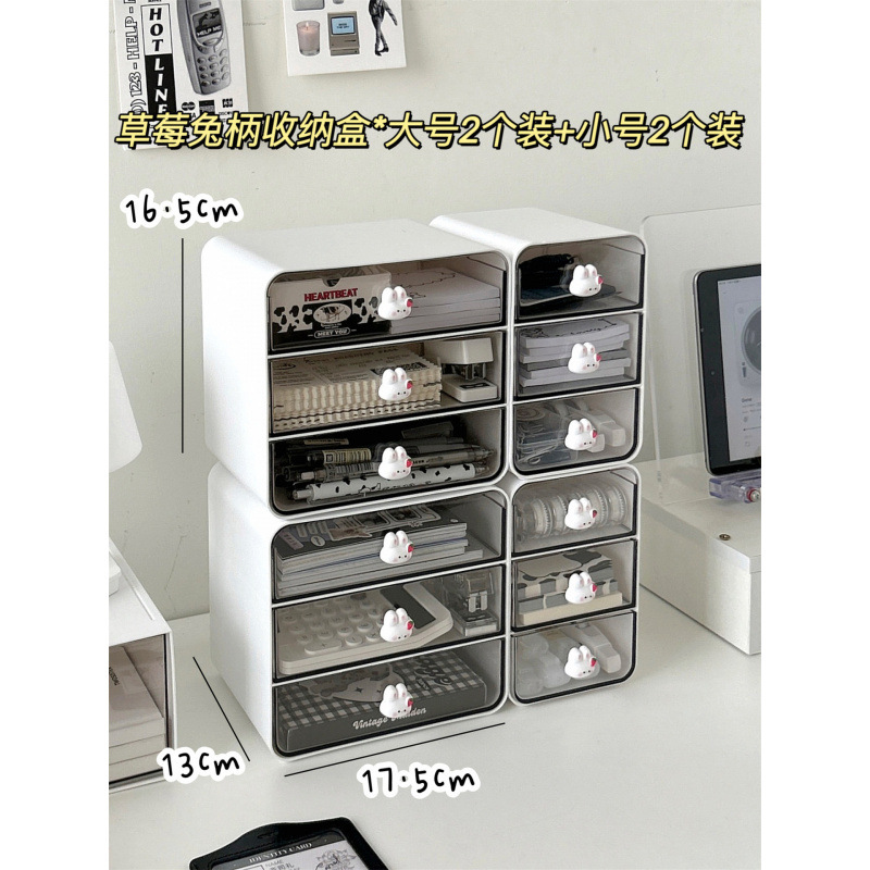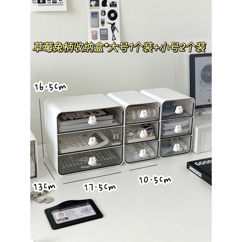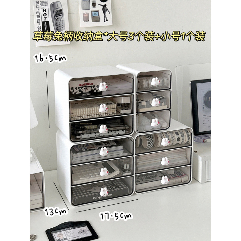 • 딸기토끼 손잡이 수납상자 *대형 3개 + 소형 1개 ⚑