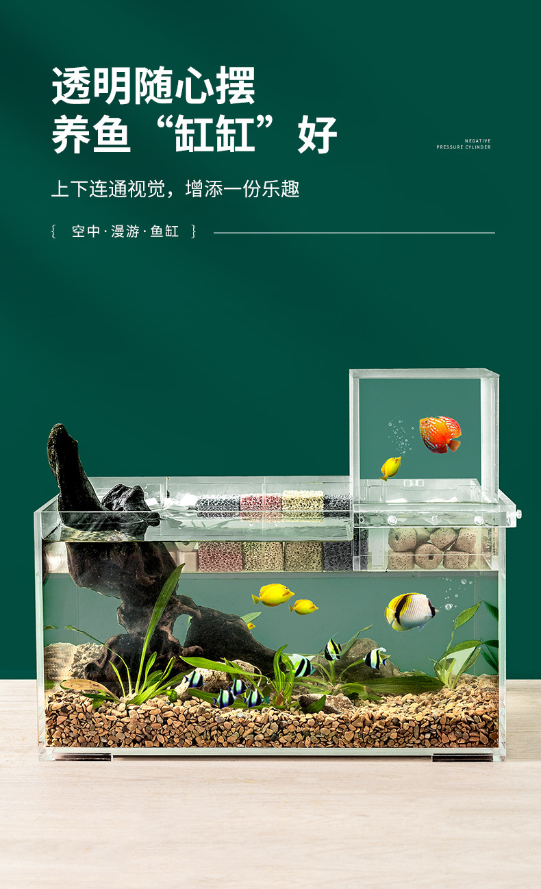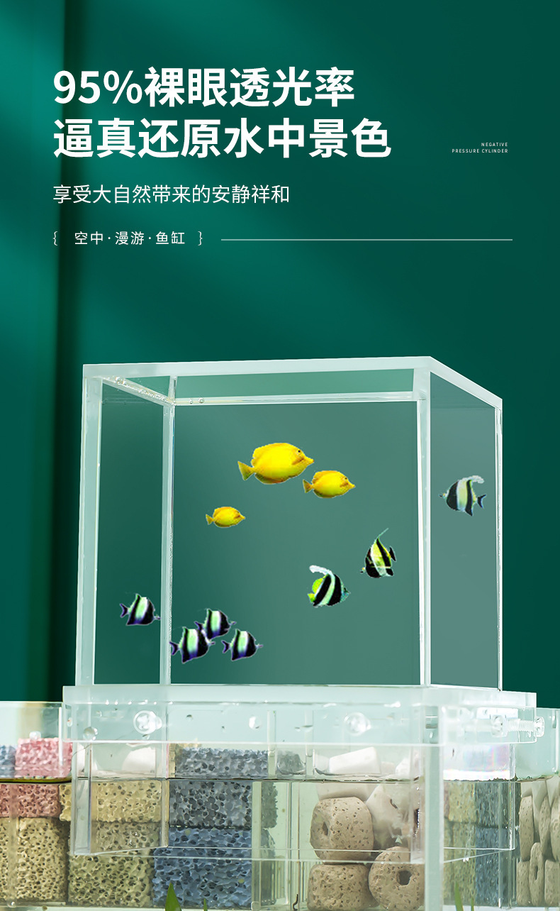 벽걸이 형 애완 동물 장비 음압 수조 아크릴 소형 진공 공중 부양 생태 창조적 인 조경 장식 작은 수조스토어 가기