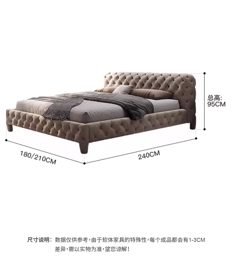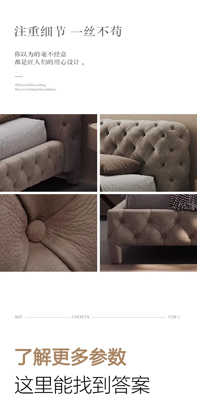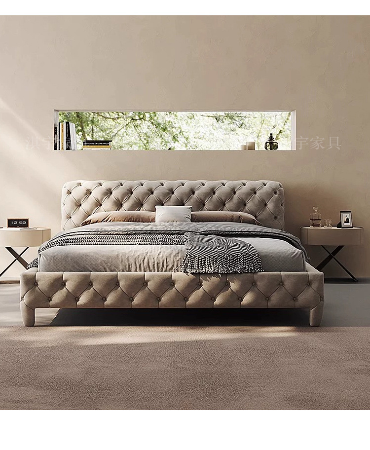 意式轻奢主卧拉扣真皮床现代轻奢双人布艺床源头工厂设计师家具
