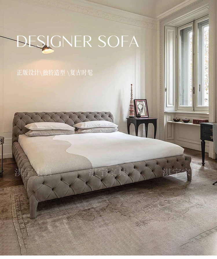 이탈리안 라이트 럭셔리 마스터 침실 버클 가죽 침대 모던 라이트 럭셔리 더블 패브릭 침대 소스 공장 디자이너 가구스토어 가기