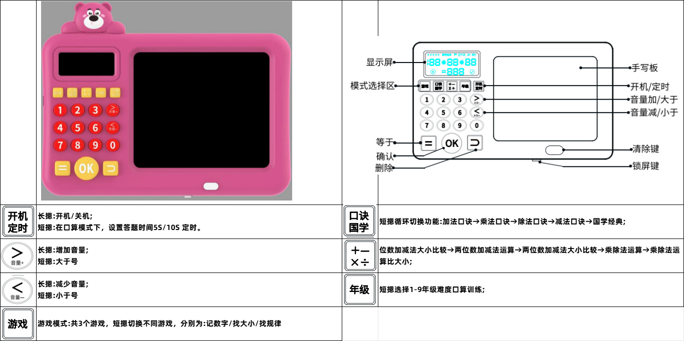 • 특가 구형 핑크 곰돌이 - 암산왕 - 중국어 단색 화면