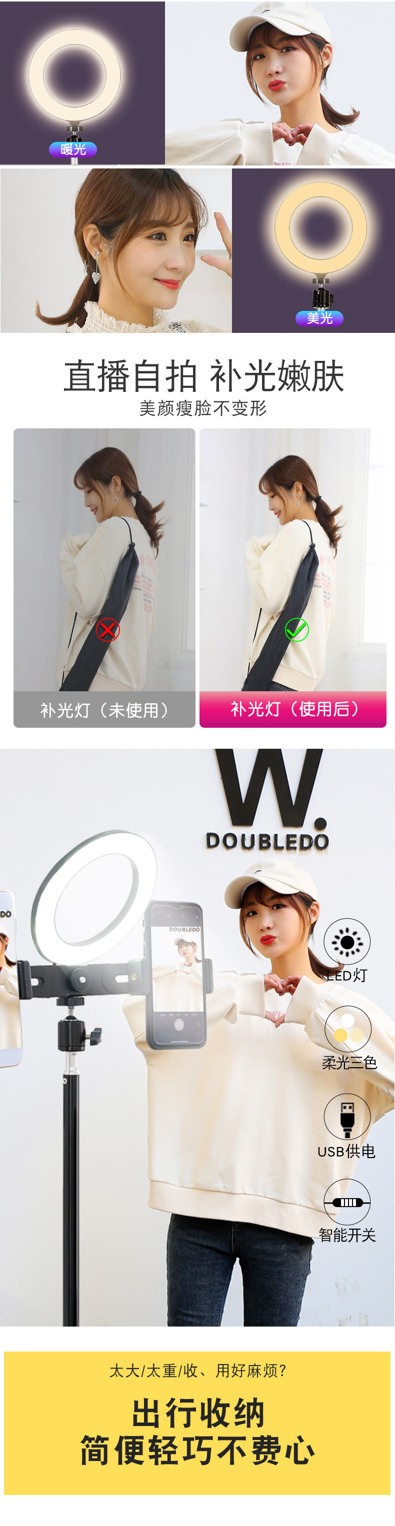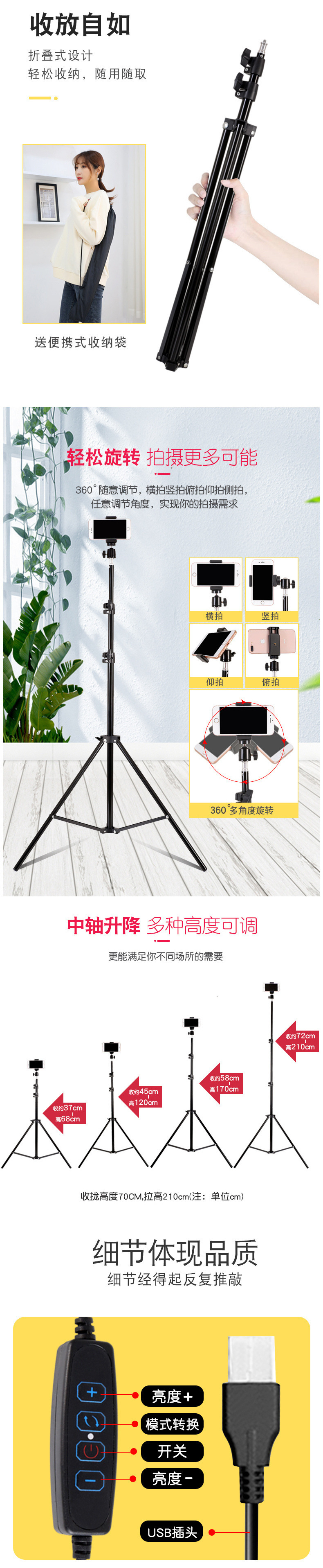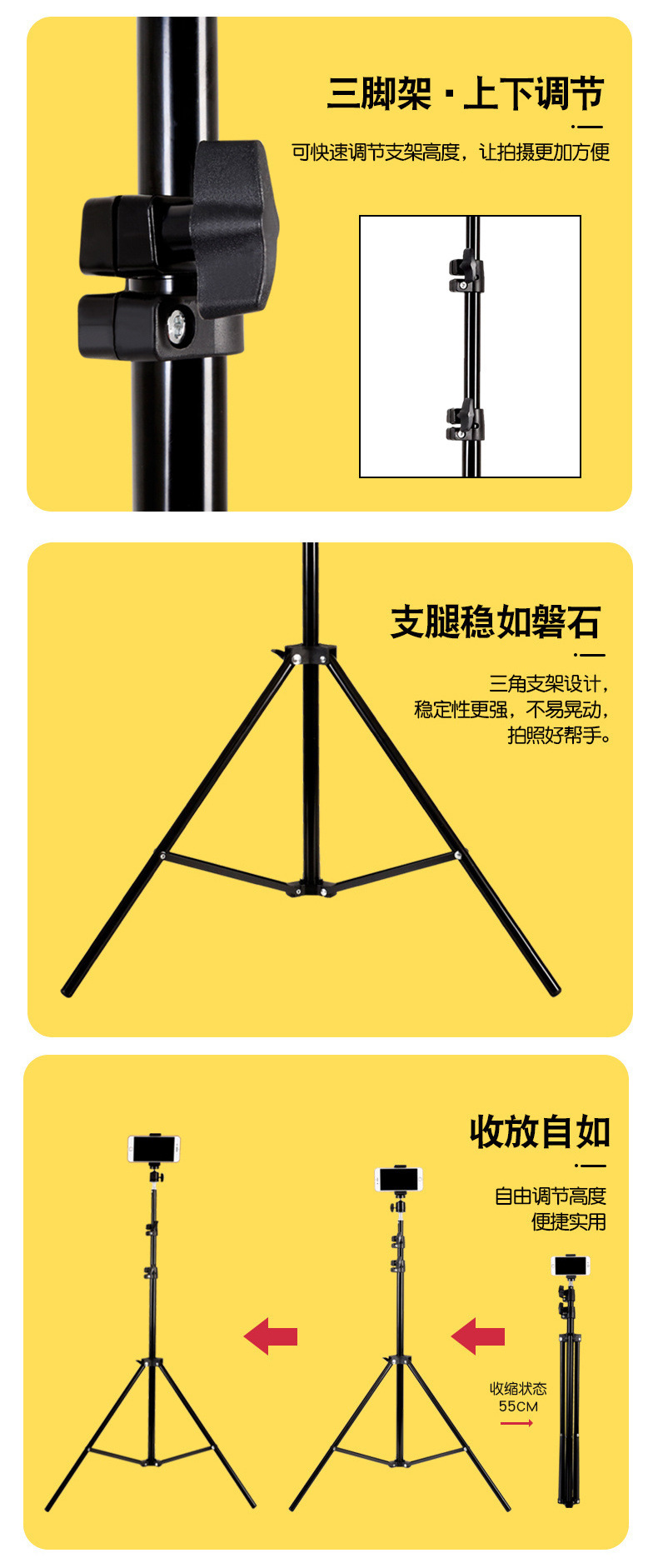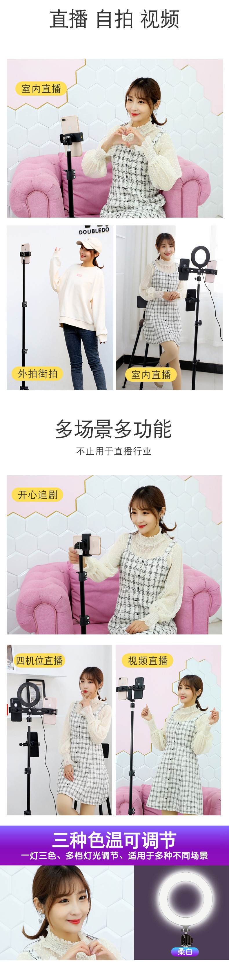 사진 촬영용 라이브 스트리밍 휴대폰 홀더 삼각대 데스크탑 필 라이트 소품 셀카봉 Douyin 야외 플로어 스탠딩 삼각대스토어 가기