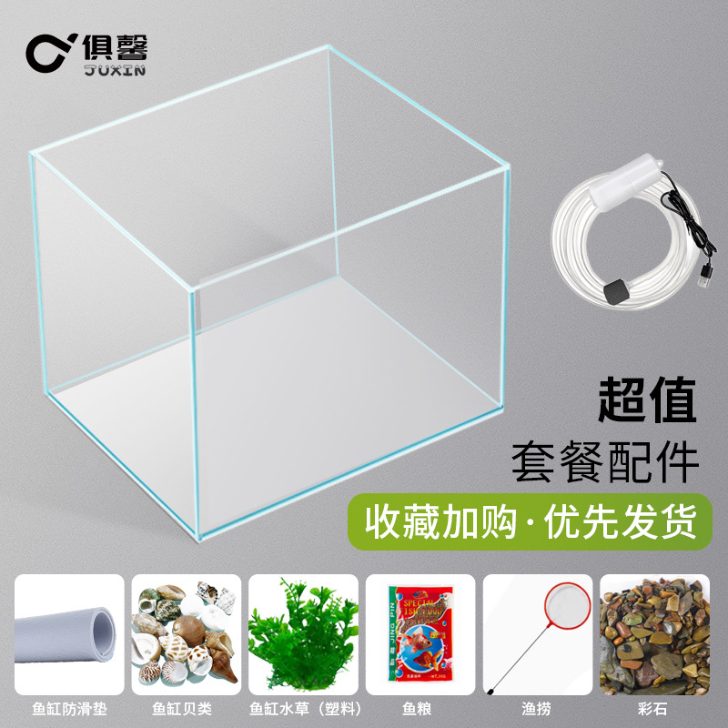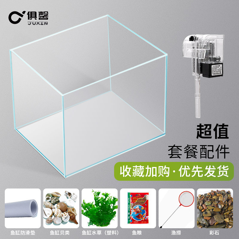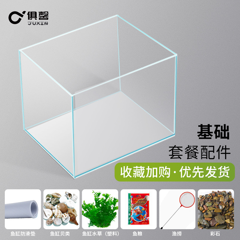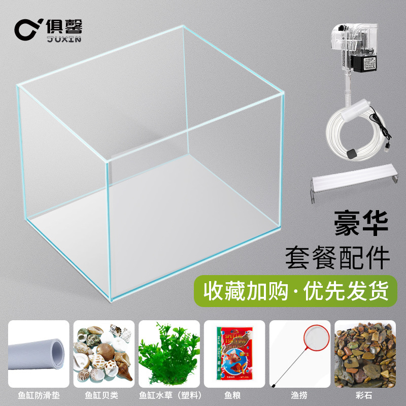 Jinjing 초백색 사각형 수조 고화질 유리 수조 Betta 거북이 관상어 조경 수조 데스크탑 작은 게으른 물고기 수조스토어 가기