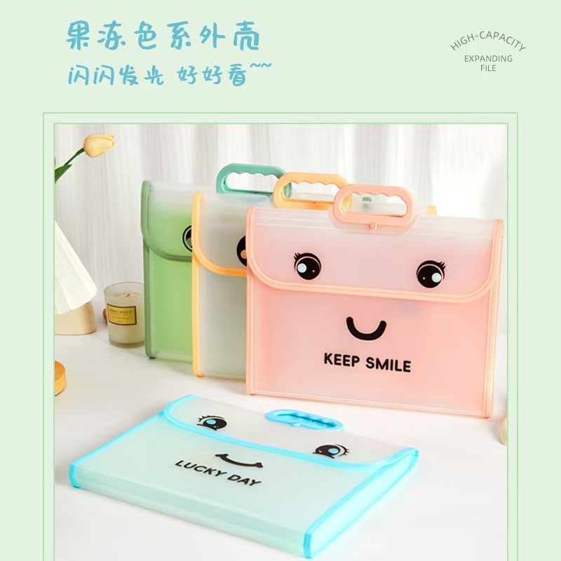 만화 투명 핸드백 플립 커버 학생 시험지 보관 가방 사무실 더블 레이어 방수 두꺼운 대용량 문서 가방스토어 가기