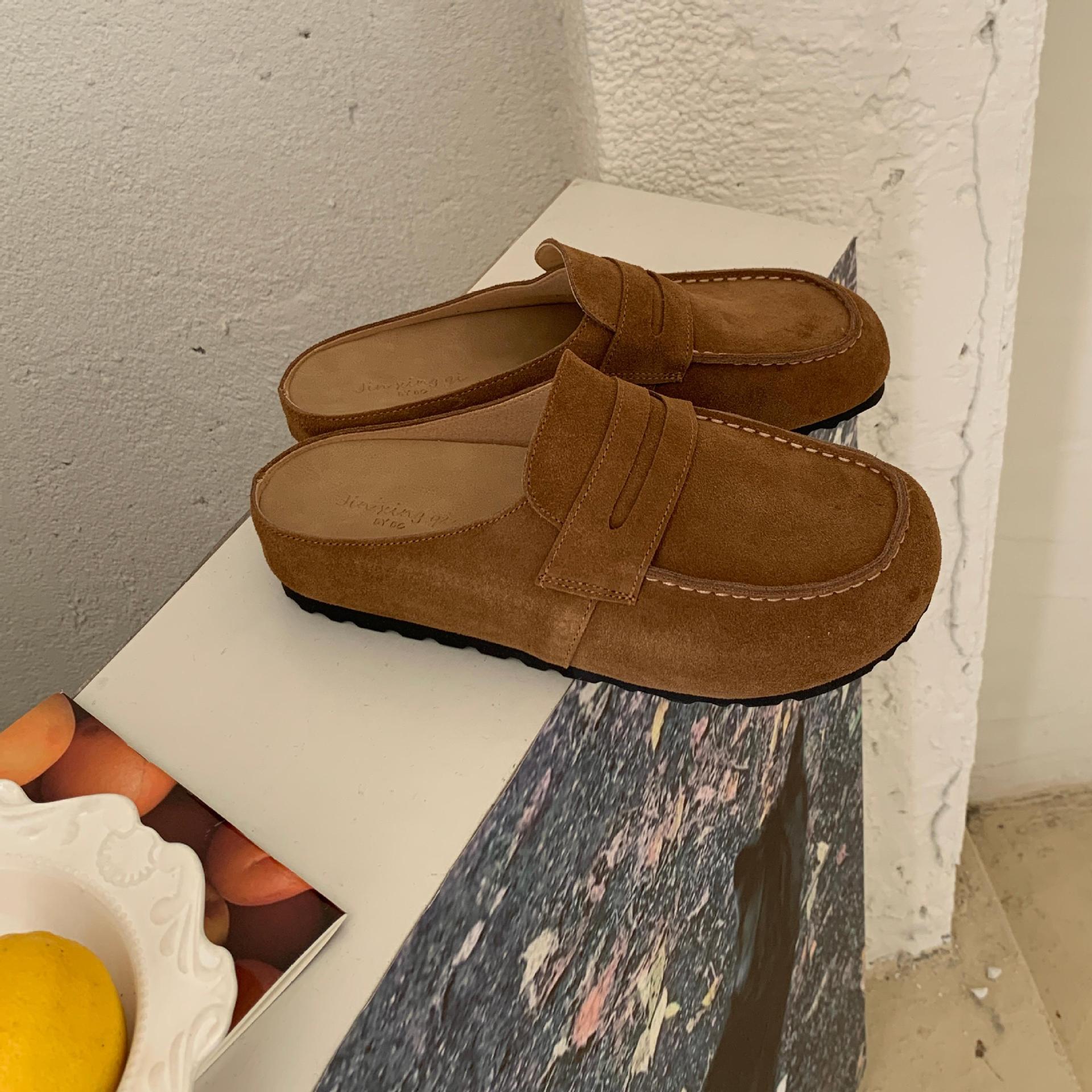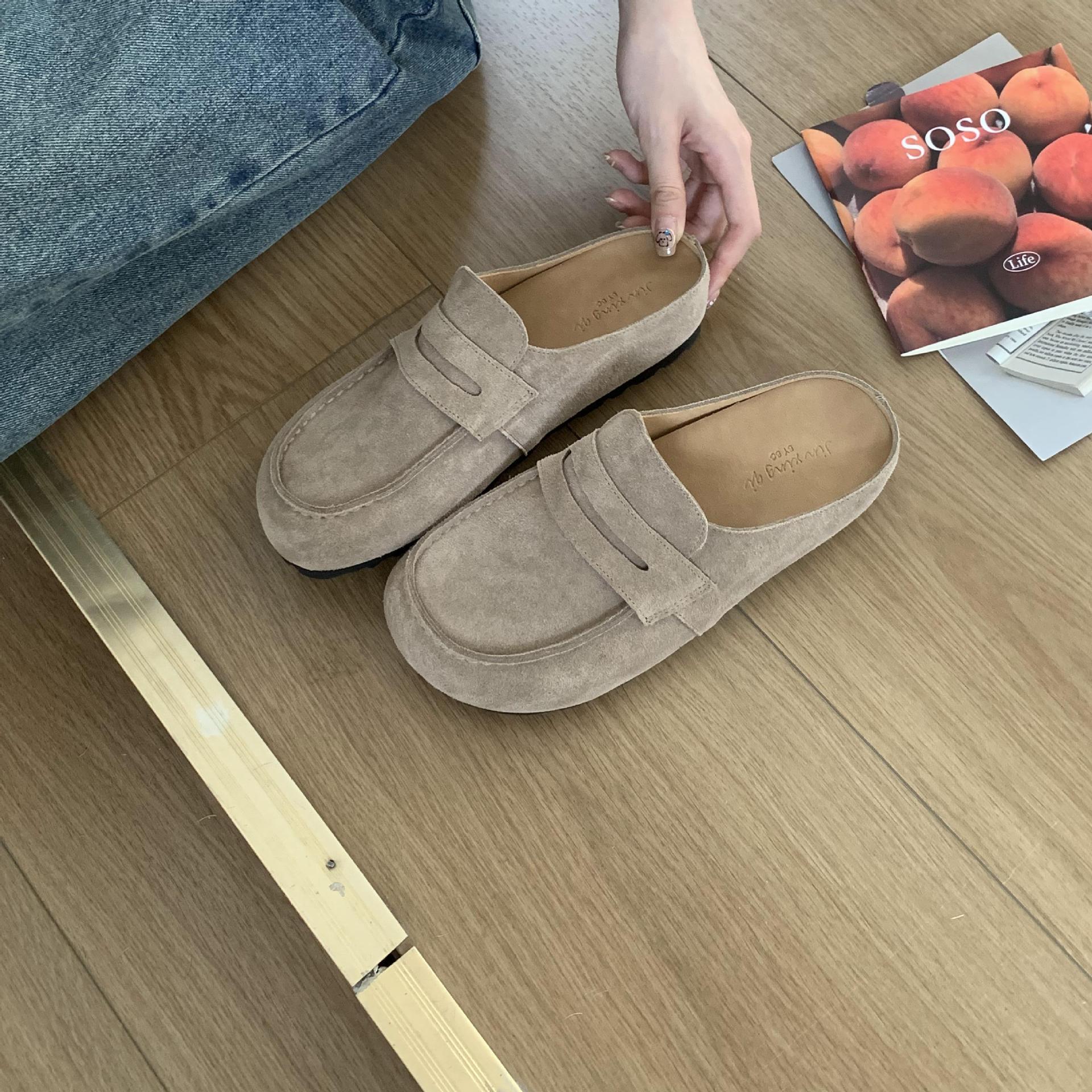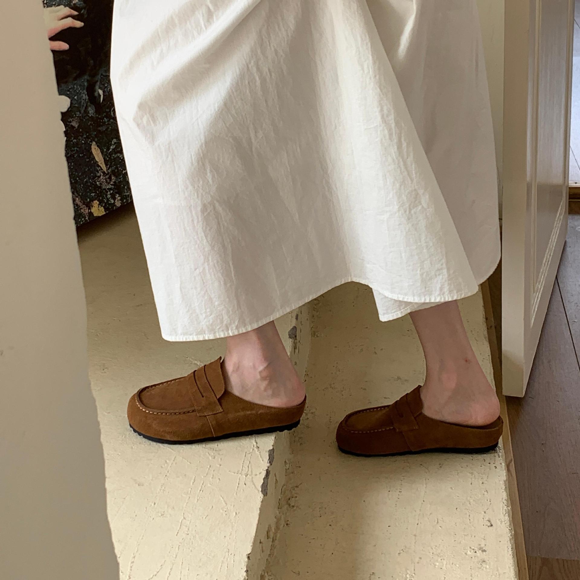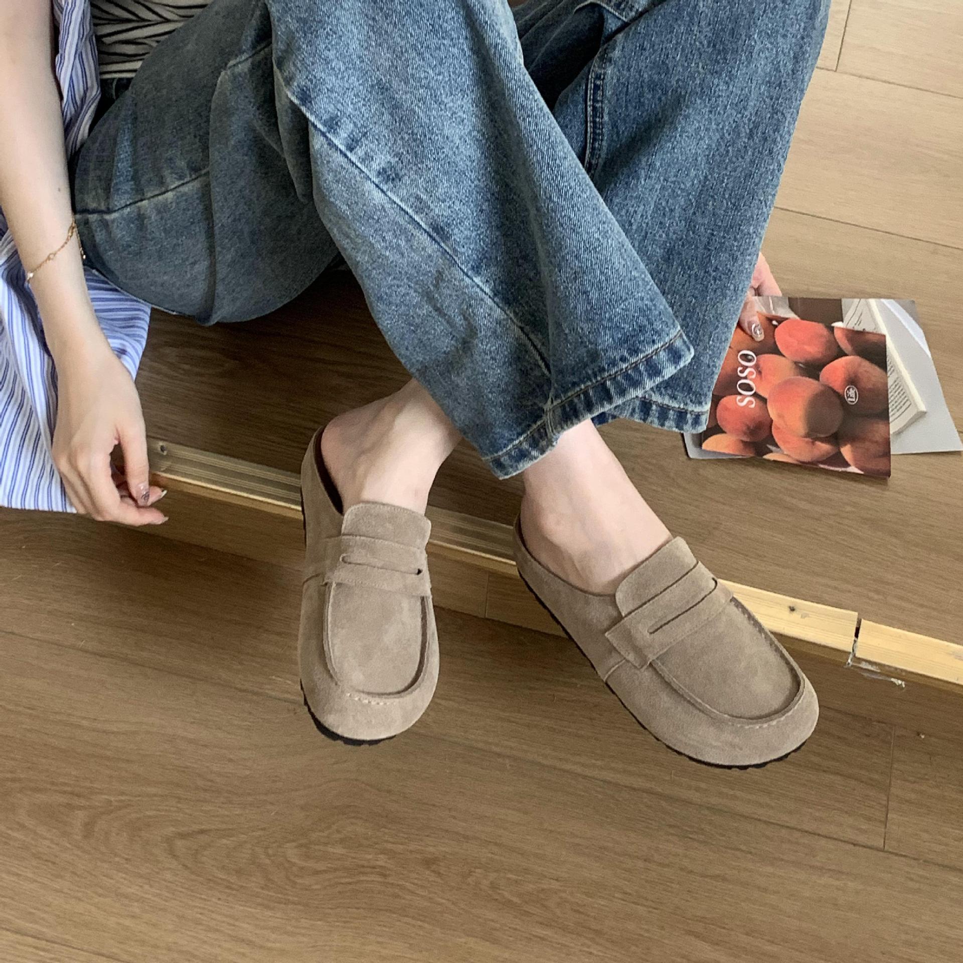 2025 봄 여름 신상 한국식 복고 버클 발가락 신발 여성 하프 슬리퍼 샌들 외부 착용 및 내부 높이 증가 게으른 신발스토어 가기
