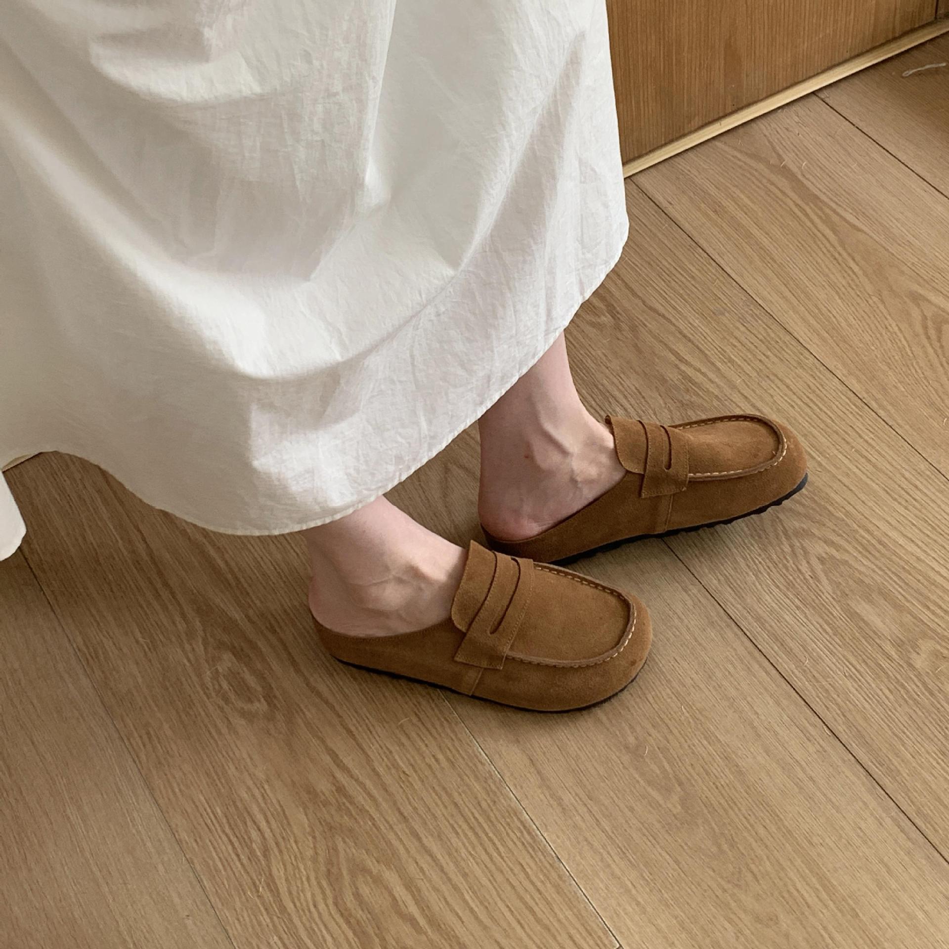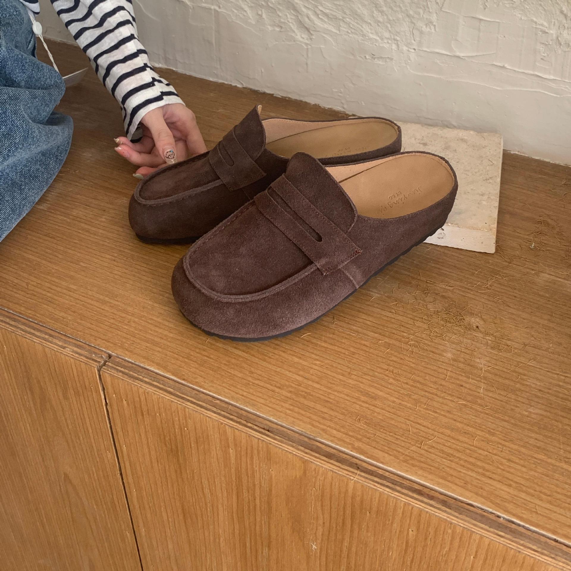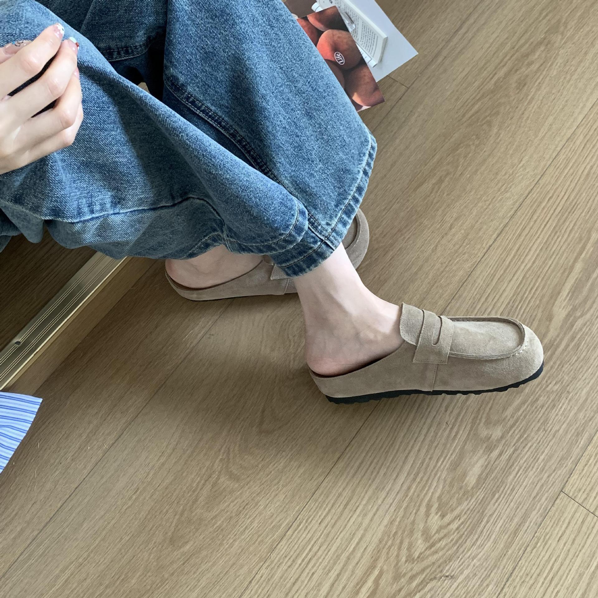 2025 봄 여름 신상 한국식 복고 버클 발가락 신발 여성 하프 슬리퍼 샌들 외부 착용 및 내부 높이 증가 게으른 신발스토어 가기