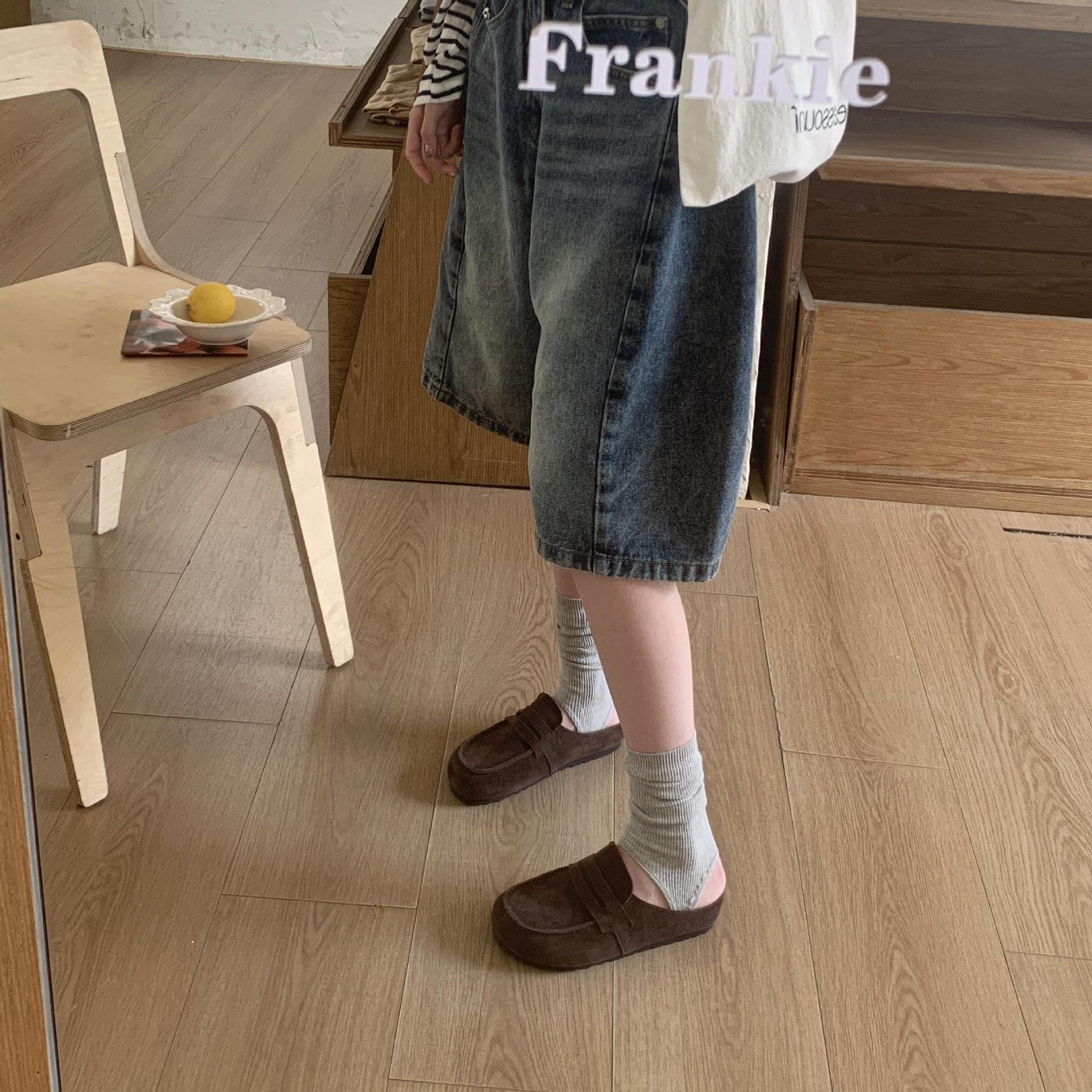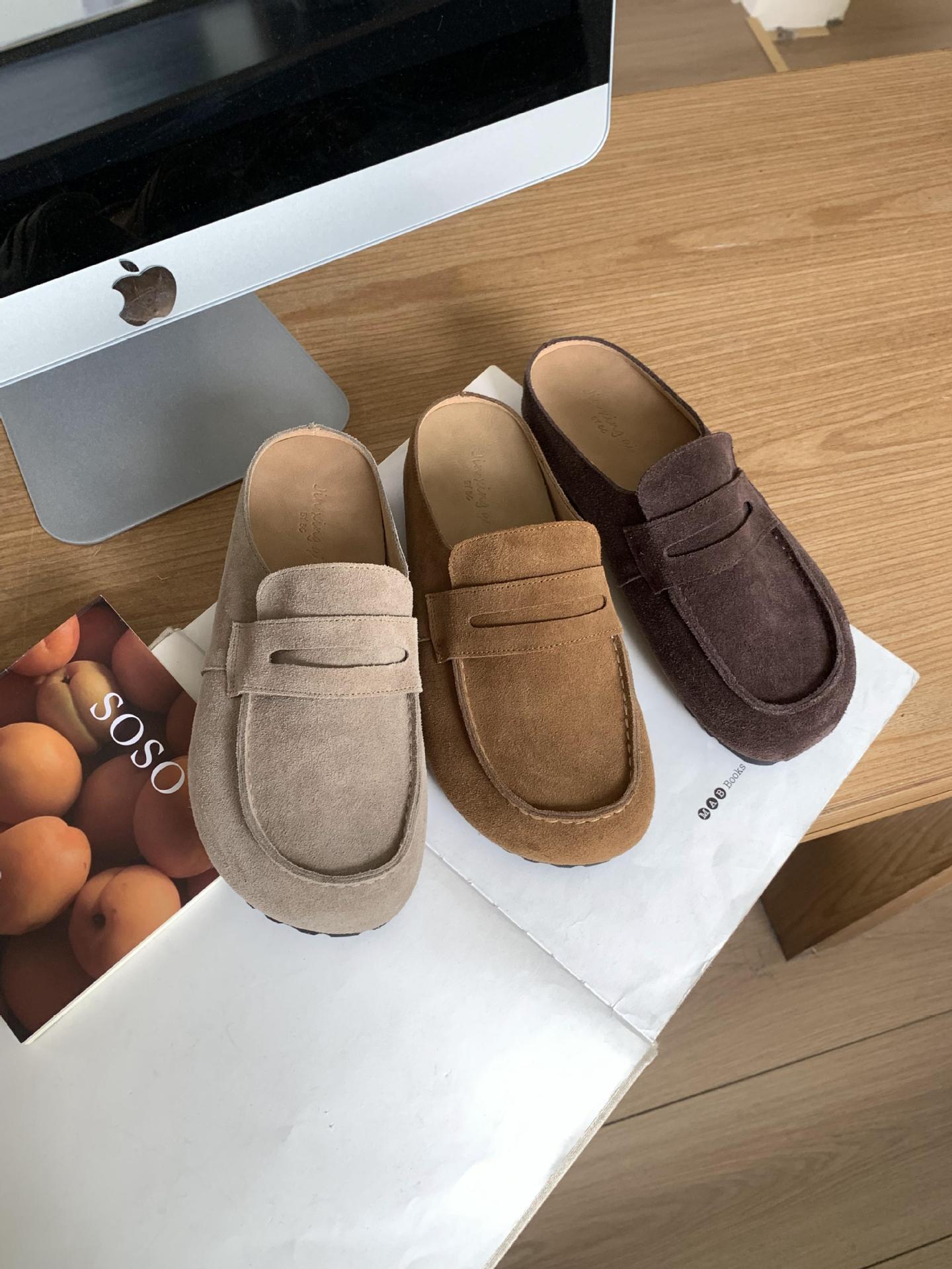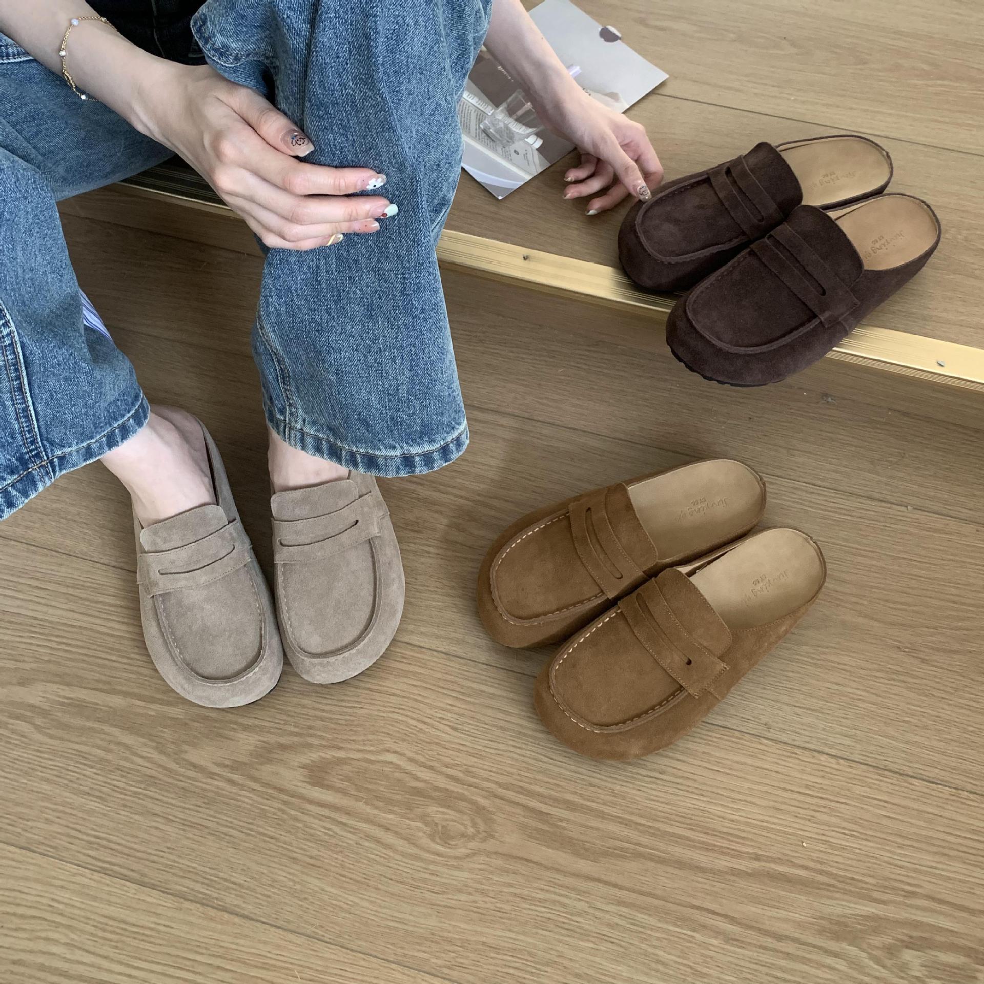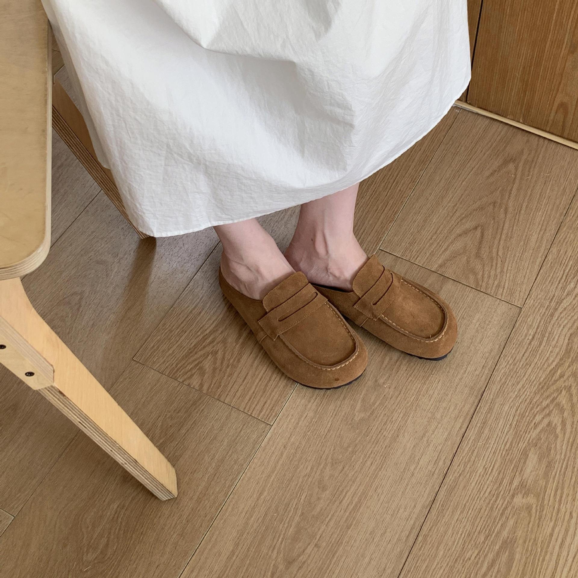 2025 봄 여름 신상 한국식 복고 버클 발가락 신발 여성 하프 슬리퍼 샌들 외부 착용 및 내부 높이 증가 게으른 신발스토어 가기