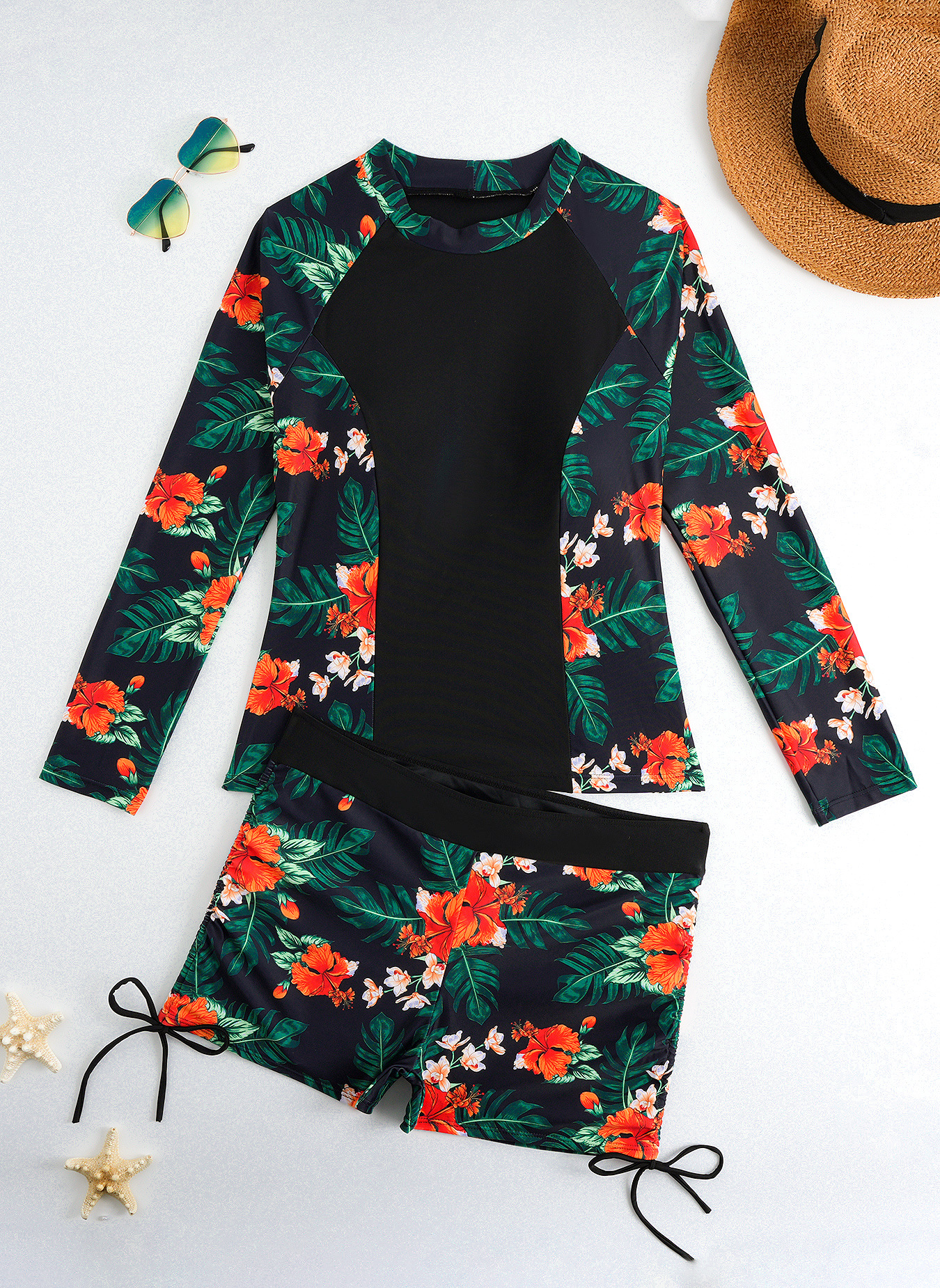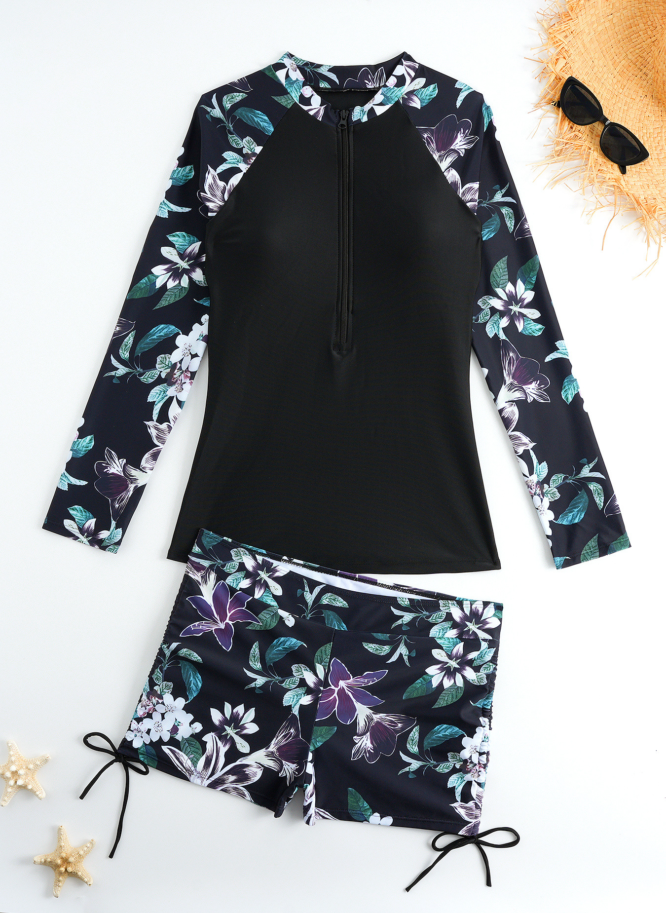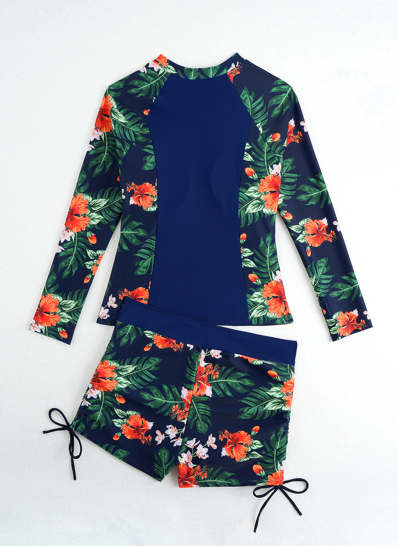 유럽과 미국의 국경 간 새로운 여성 긴팔 해변 수영복 서핑 슈트 보수적 인 슬림 스포츠 비키니 슈트