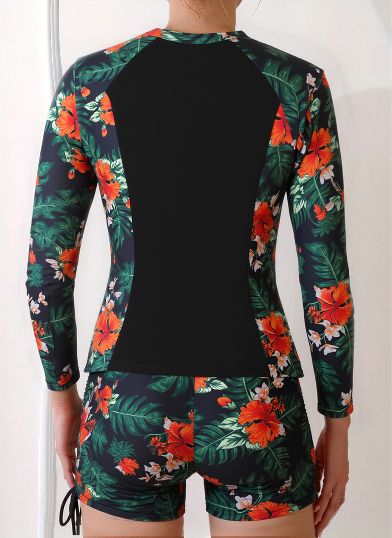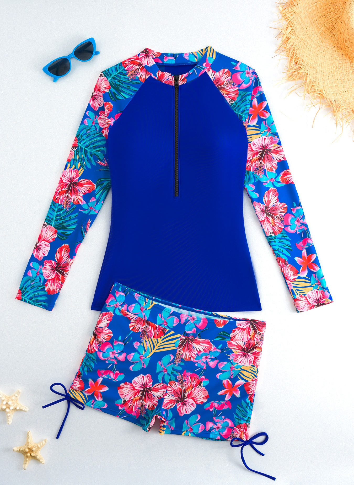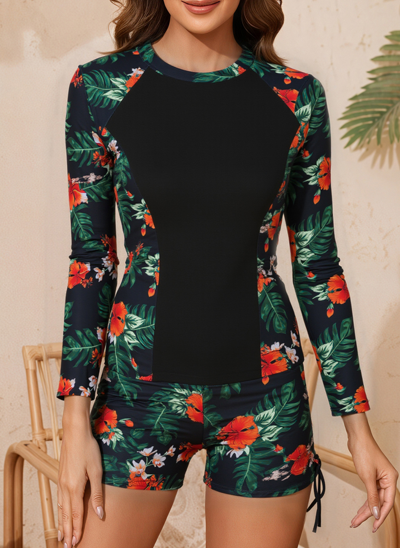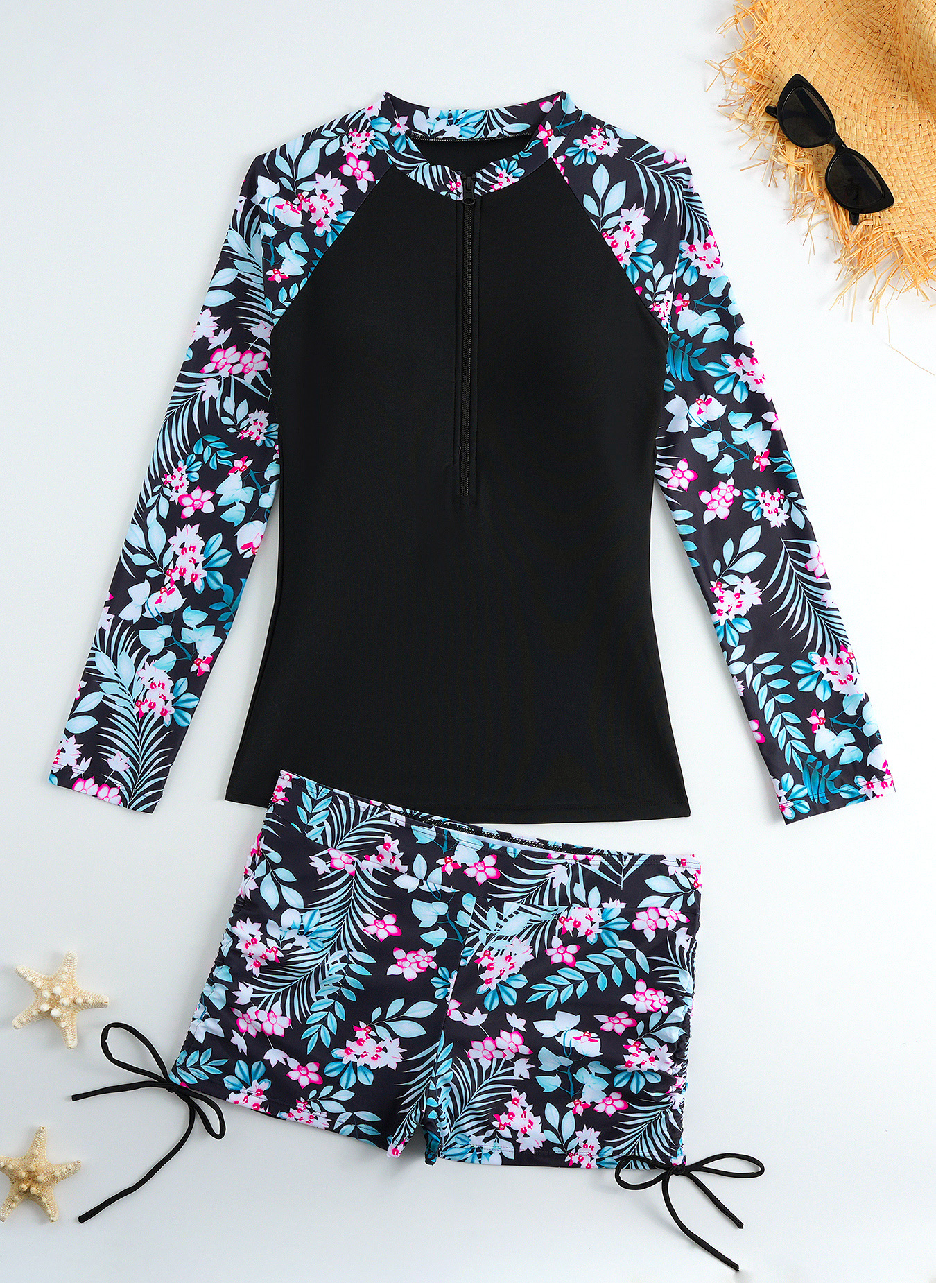 유럽과 미국의 국경 간 새로운 여성 긴팔 해변 수영복 서핑 슈트 보수적 인 슬림 스포츠 비키니 슈트