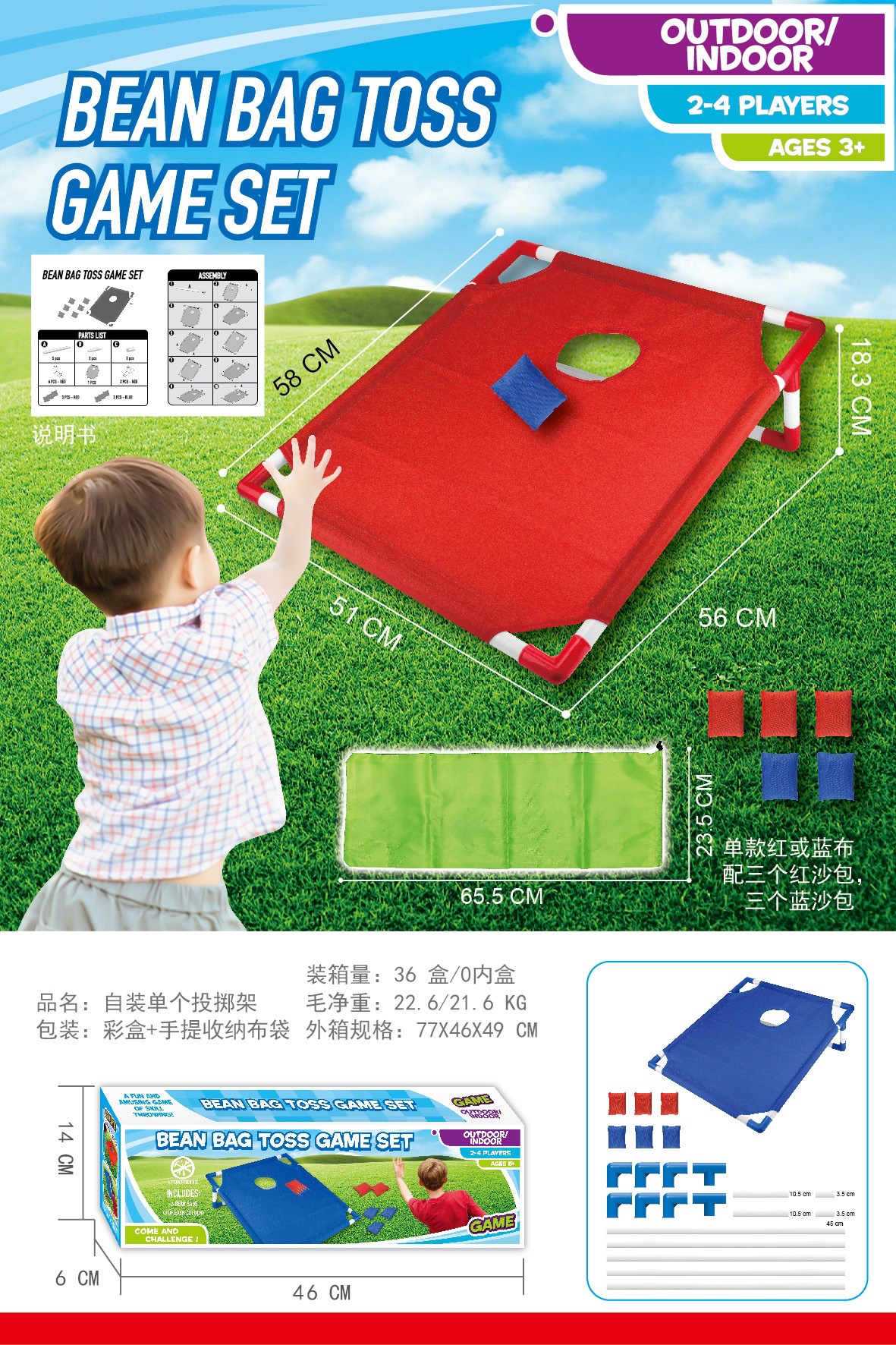• 파란색 샌드백(녹색 보관 가방 포함) 색상 상자 포장