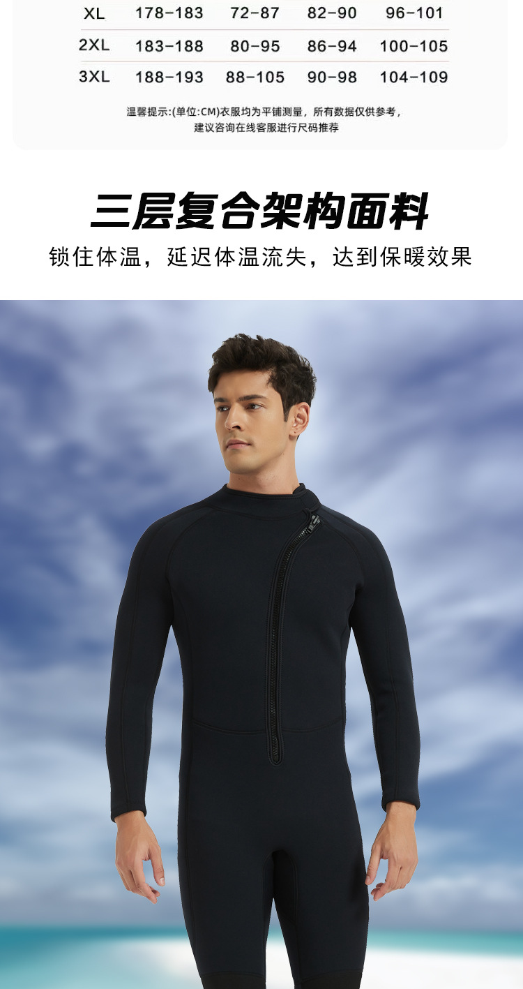 남성용 3mm 일체형 잠수복, 방한 및 따뜻한 서핑복, 야외 서핑복, 스노클링, 겨울 수영, 긴팔 수영복, 잠수복