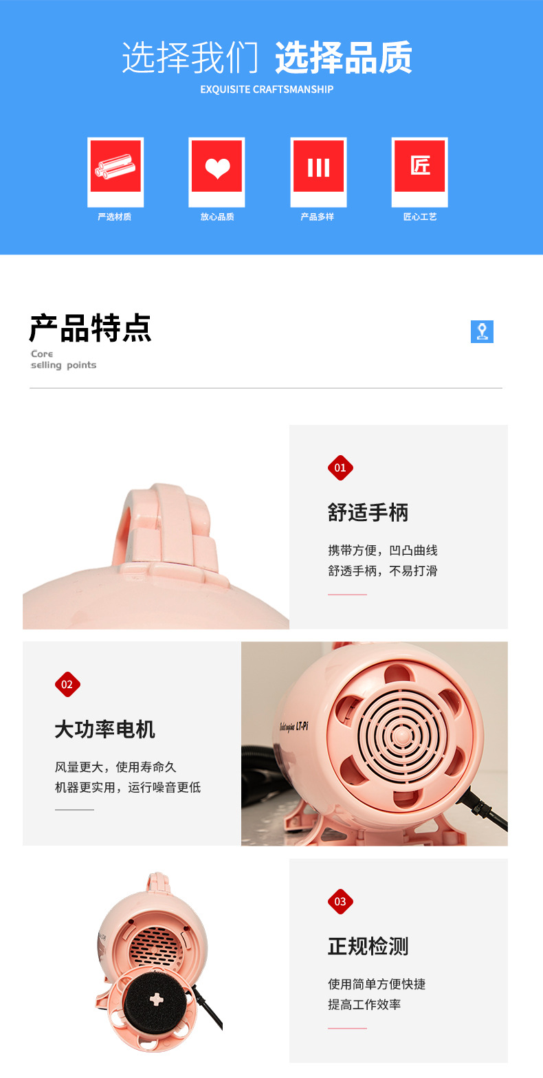핑크 애완 동물 헤어 드라이어 단일 모터 고출력 자동 개와 고양이 헤어 드라이어 건조기 애완 동물 용품