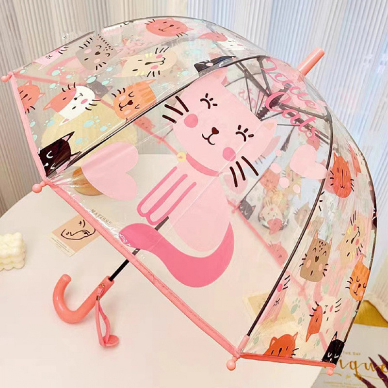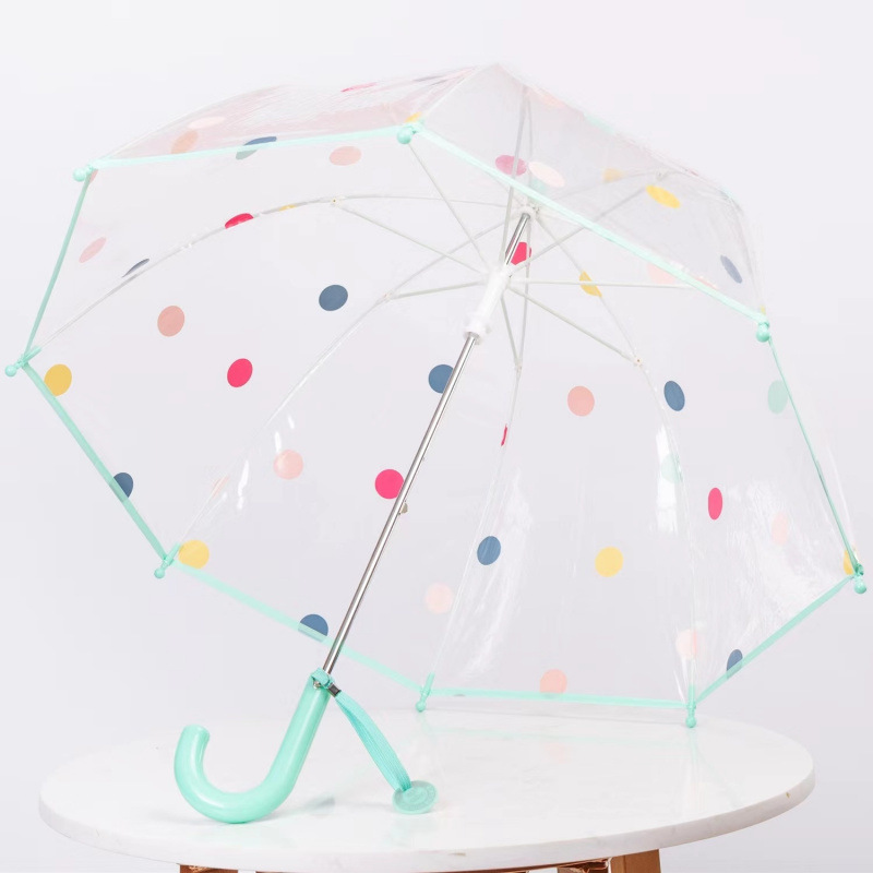 인터넷 연예인 폴카 도트 소녀 유치원 초등학생 어린이 우산 귀여운 두꺼운 손으로 열 수있는 긴 손잡이 우산 아기 투명 우산
