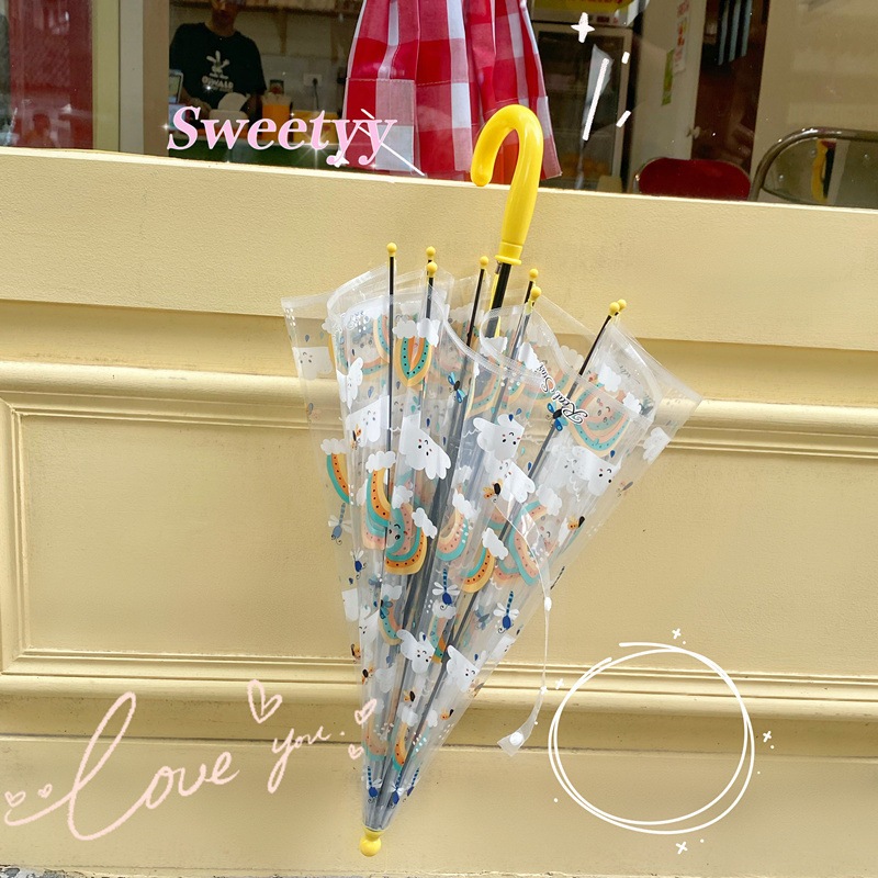 인터넷 연예인 폴카 도트 소녀 유치원 초등학생 어린이 우산 귀여운 두꺼운 손으로 열 수있는 긴 손잡이 우산 아기 투명 우산스토어 가기