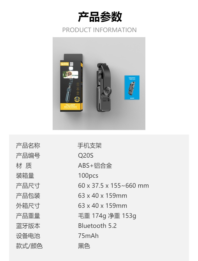 Q20S 미니 셀카봉 여행 휴대용 뷰티 필 라이트 휴대폰 블루투스 사진 데스크탑 라이브 스트리밍 삼각대