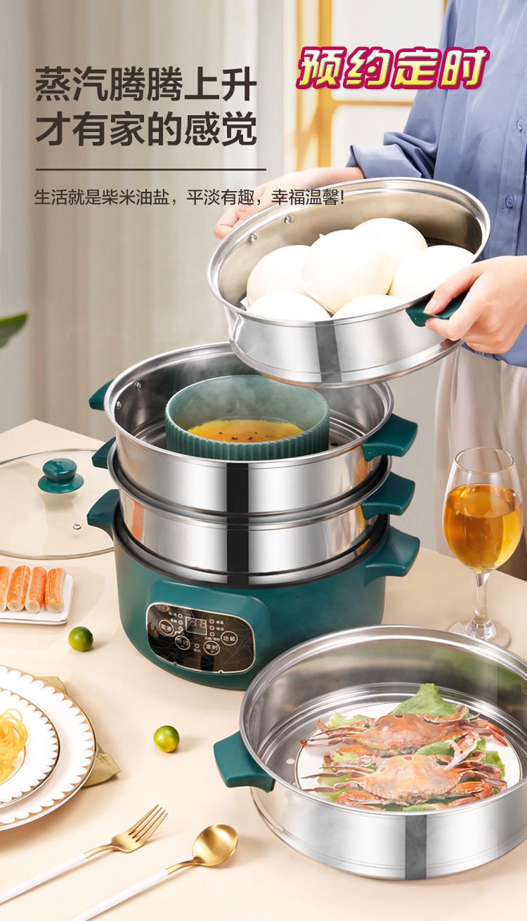전기찜기, 가정용 일체형 다기능 찜기, 3단 찜기, 전기 냄비, 2단 계란찜기, 계란찜기, 소형 전기 냄비스토어 가기
