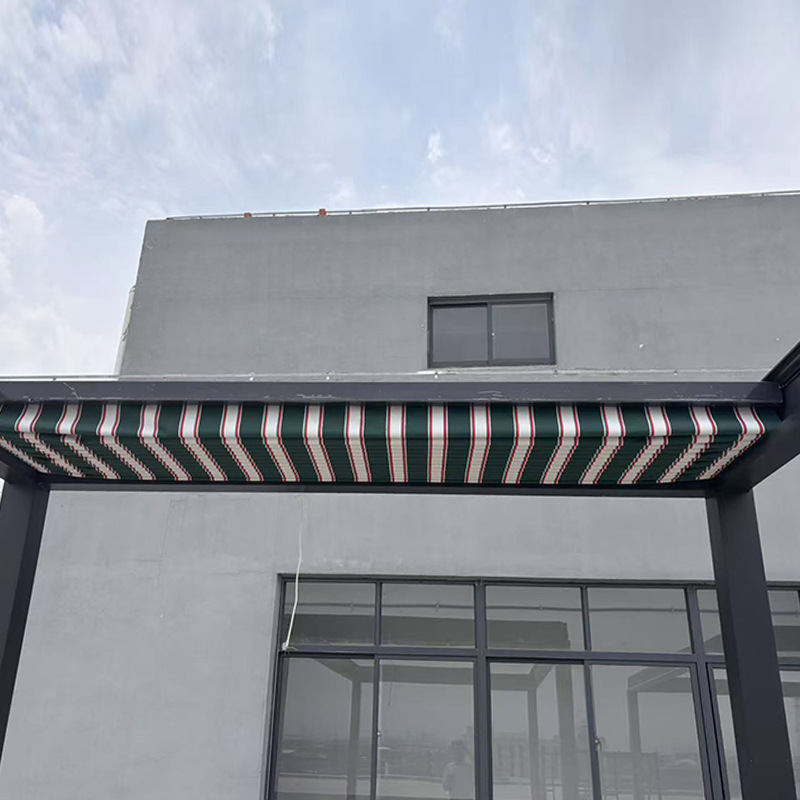 야외 레저 접이식 금속 캐노피 전기 알루미늄 합금 롤러 캐노피 빌라 차양 캐노피 접이식 천 캐노피