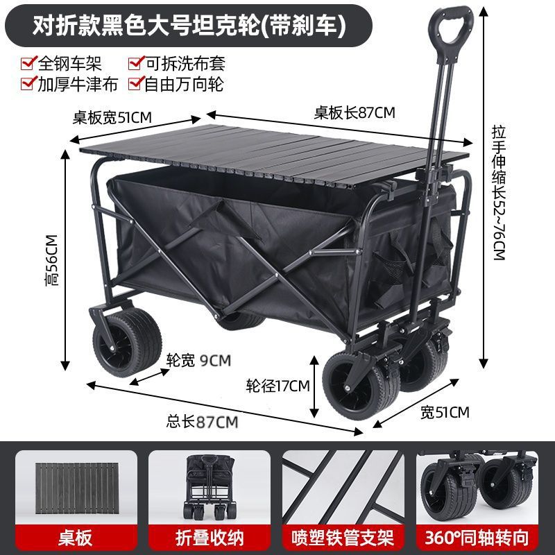 • 야외 캠핑카 + 접이식 데스크탑 - 뒤집힌 블랙 / 10inch 탱크 더블 브레이크 유니버설 휠