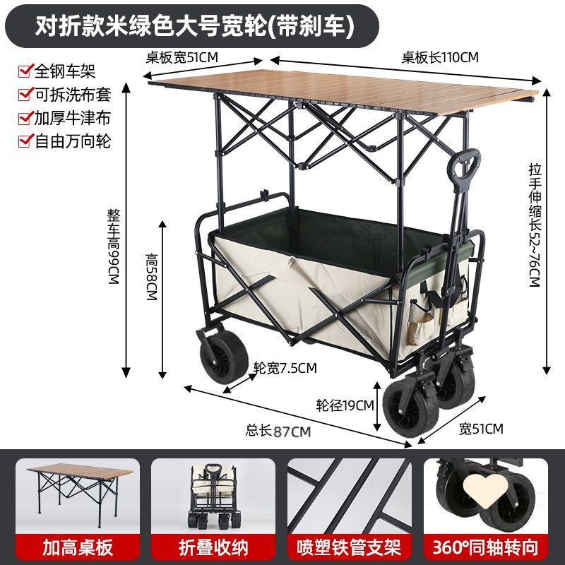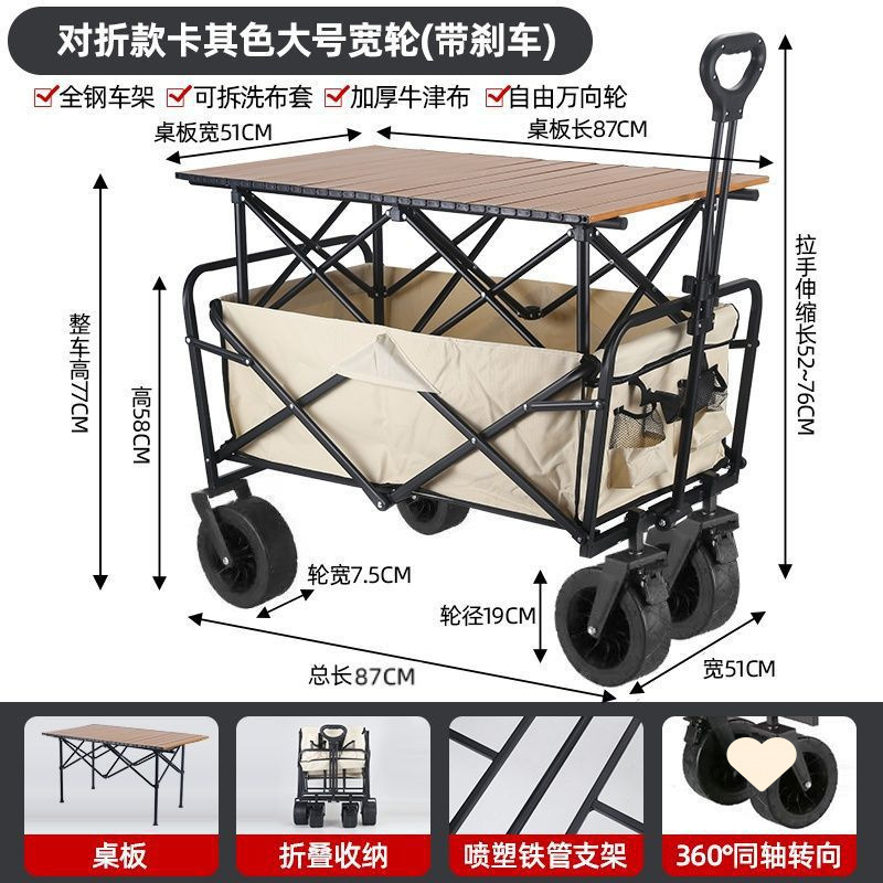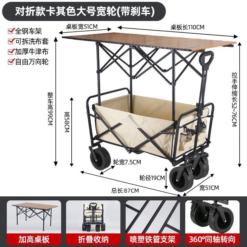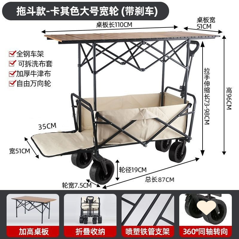 • 야외 캠핑카 + 확장, 넓어지고 높아진 접이식 테이블 - 후면 플립 카키/오프로드 휠/ 8inch 더블 브레이크 유니버설 휠