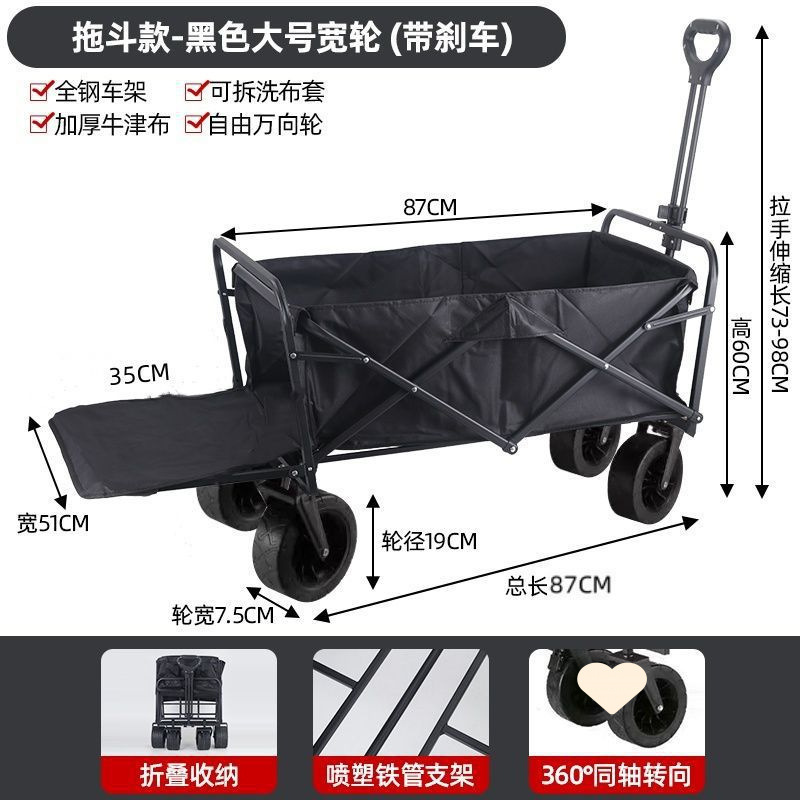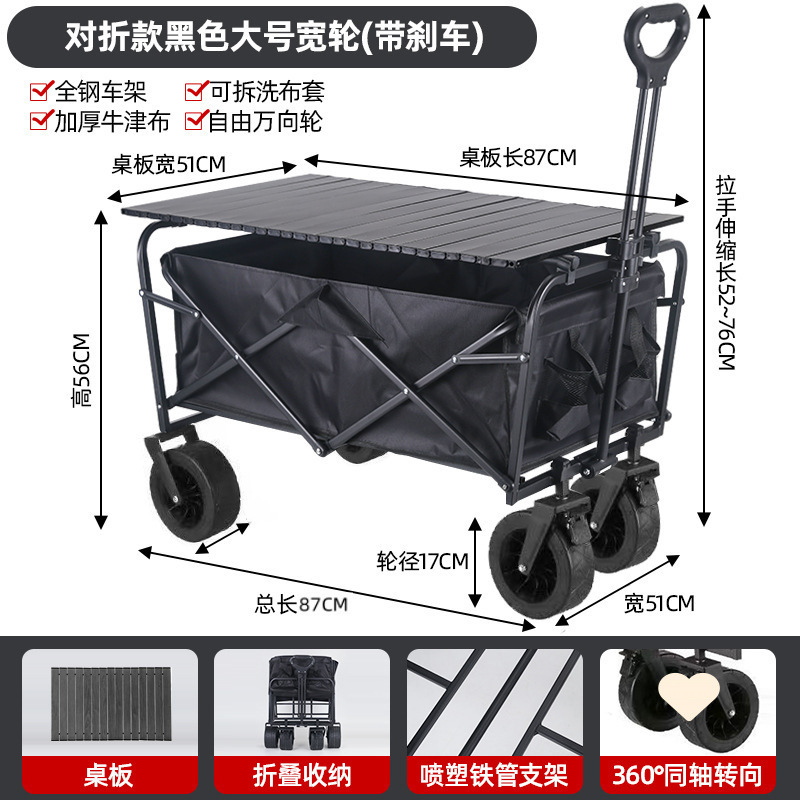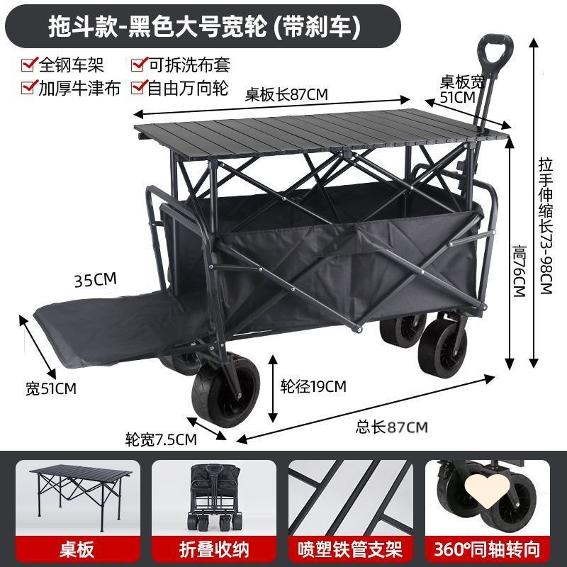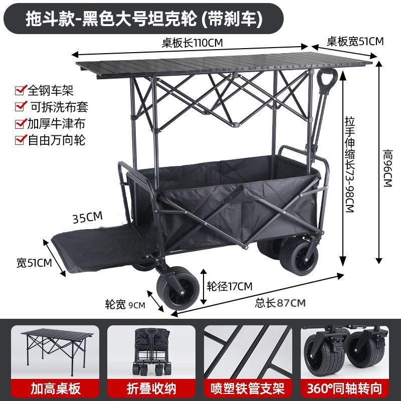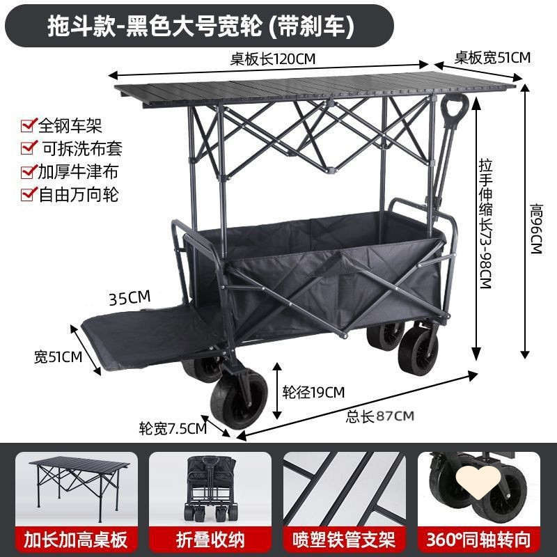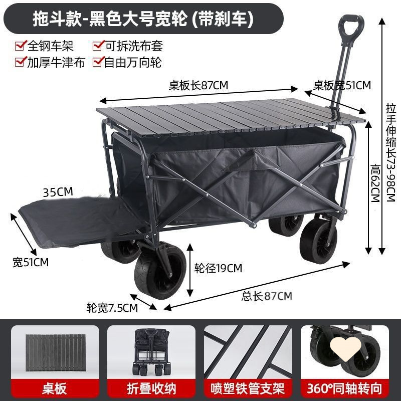 • 야외 캠핑카 + 확장 및 높이 조절 접이식 테이블 - 검정색/오프로드 휠/ 8inch 더블 브레이크 범용 휠