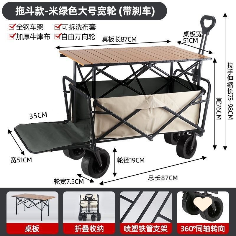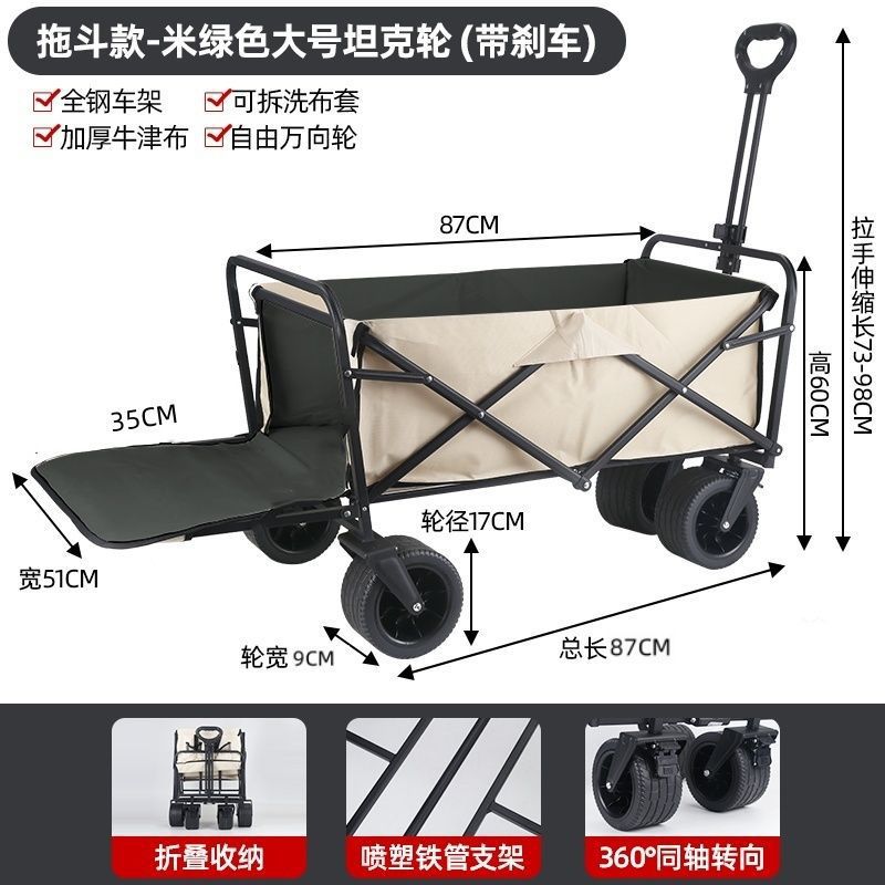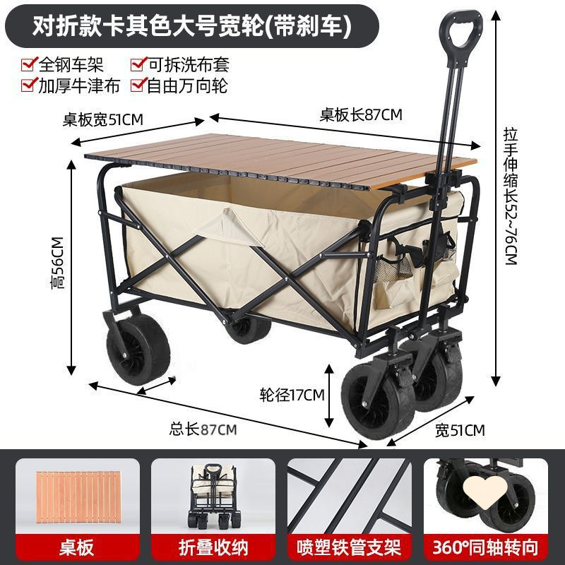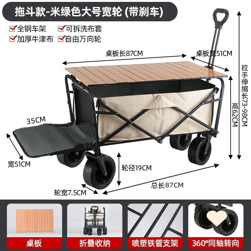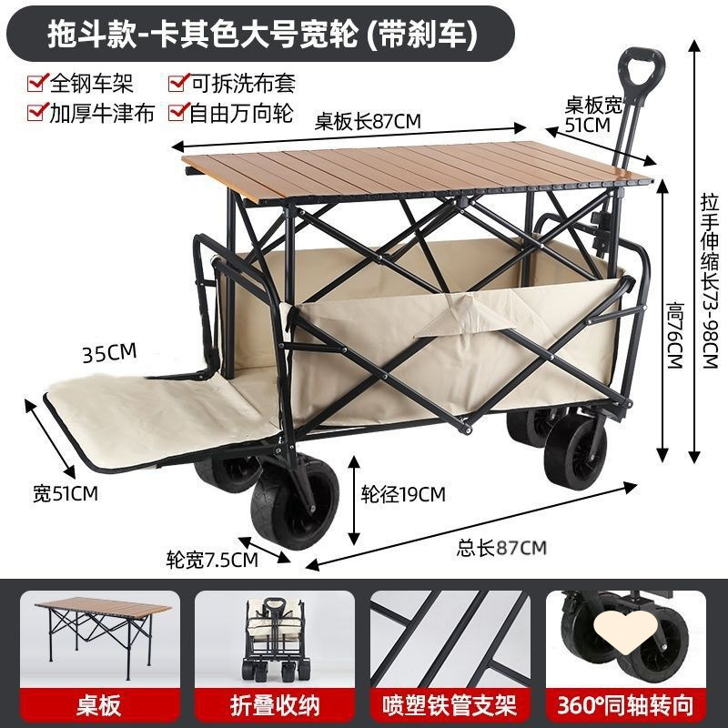 • 야외 캠핑카 + 스톨 접이식 테이블 - 카키/오프로드 휠/더블 브레이크 유니버설 휠 8inch개