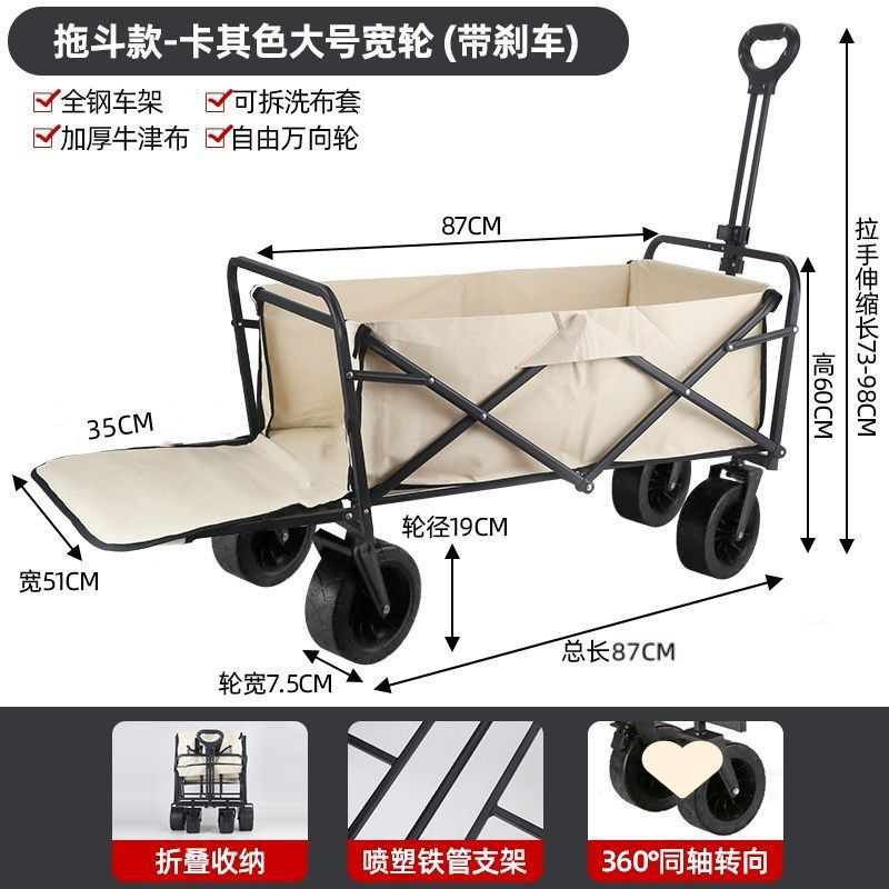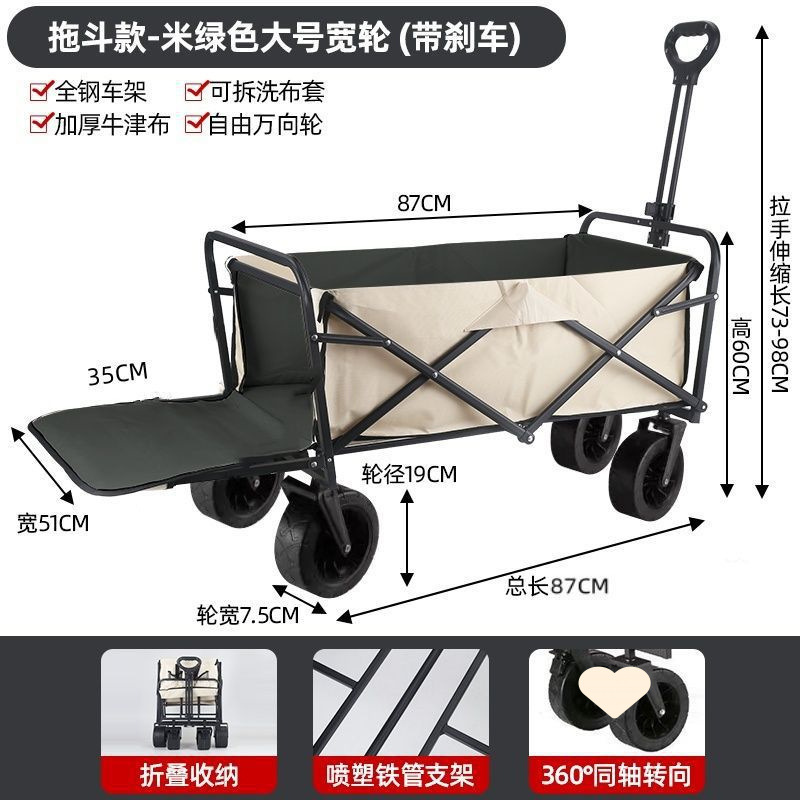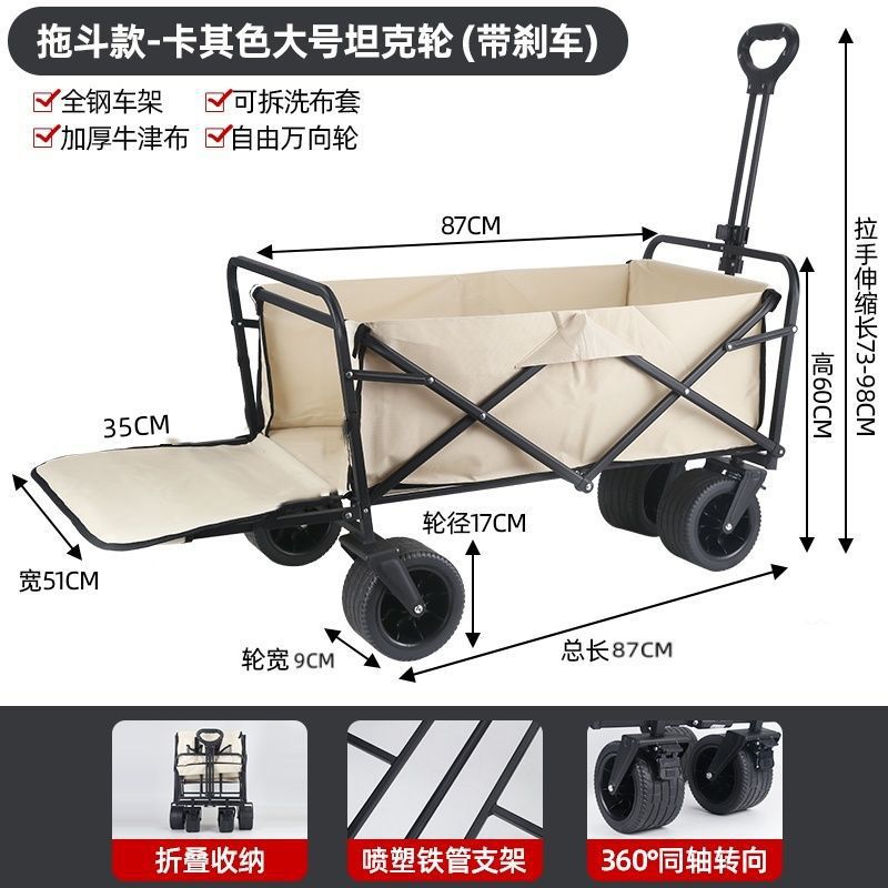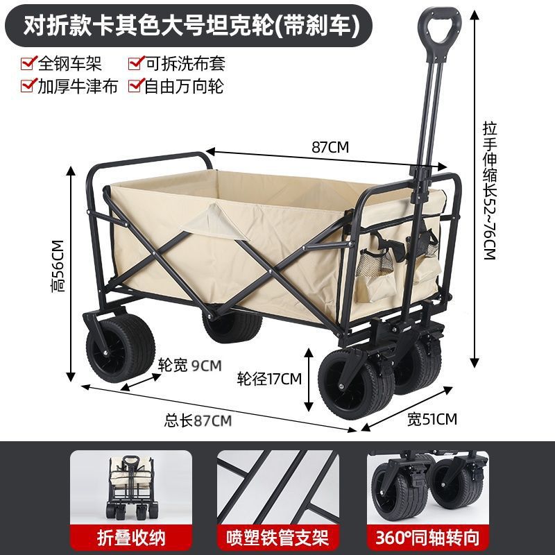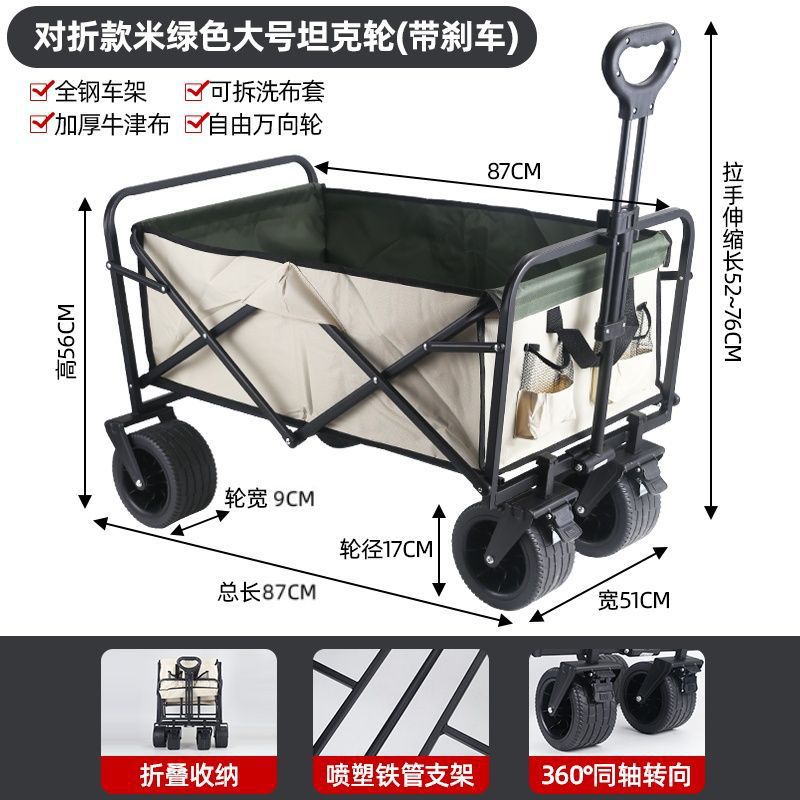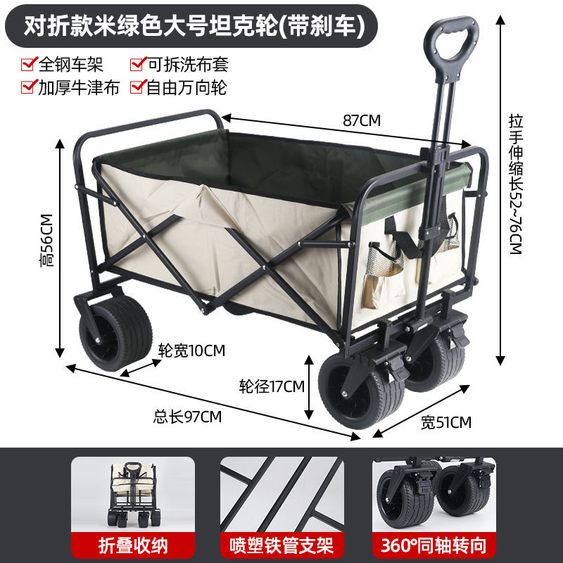 • 야외 캠핑카 + 스톨 접이식 테이블 - 카키/오프로드 휠/더블 브레이크 유니버설 휠 8inch개