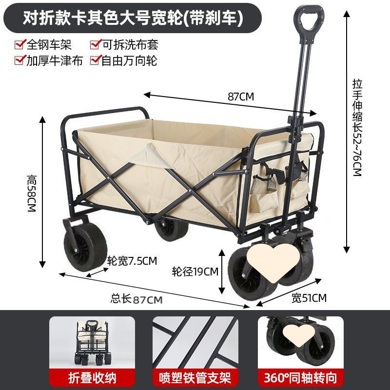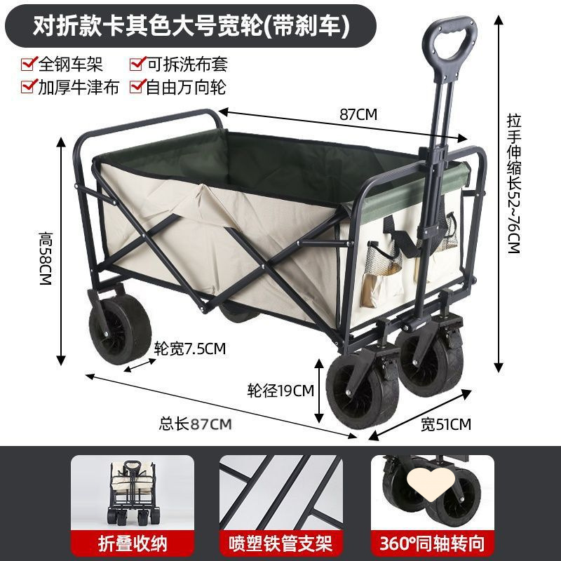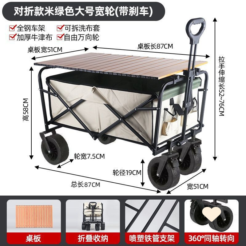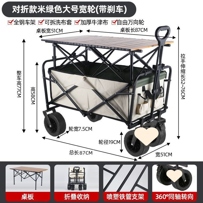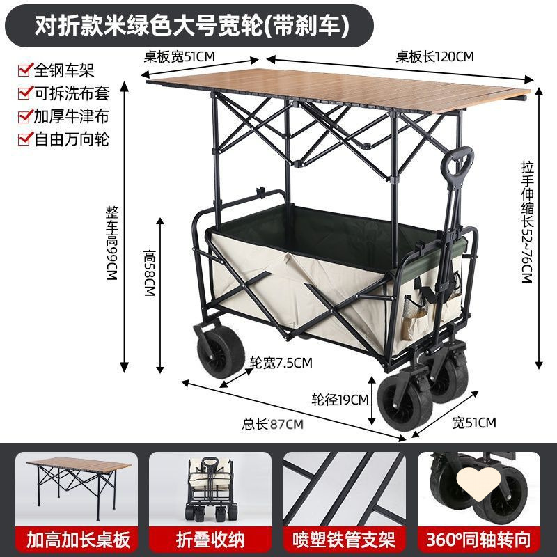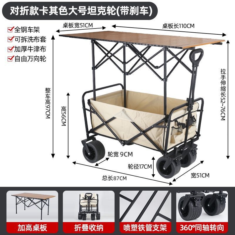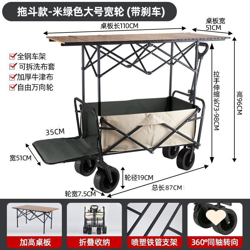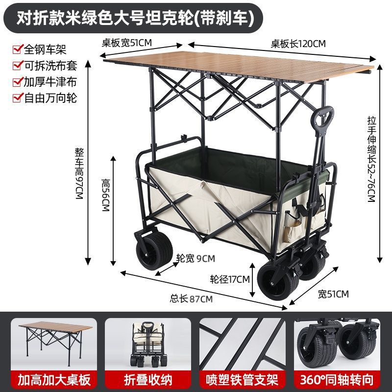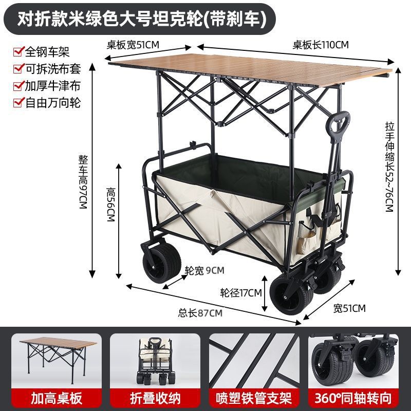 • 야외 캠핑카 + 확장, 넓어지고 높아진 접이식 테이블 - 카키/오프로드 휠/ 8inch 더블 브레이크 유니버설 휠
