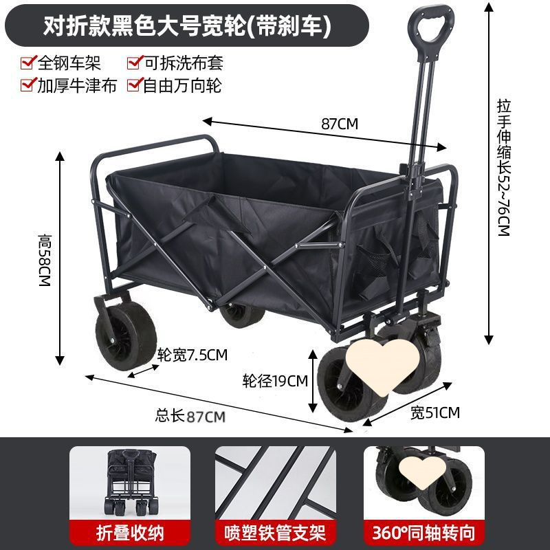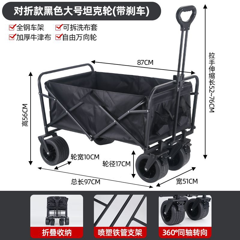 • 야외 캠핑카 + 접이식 데스크탑 - 뒤집힌 검정색/오프로드 휠/ 8inch 더블 브레이크 범용 휠