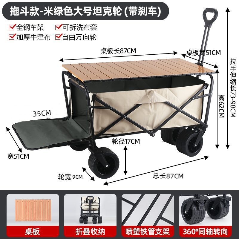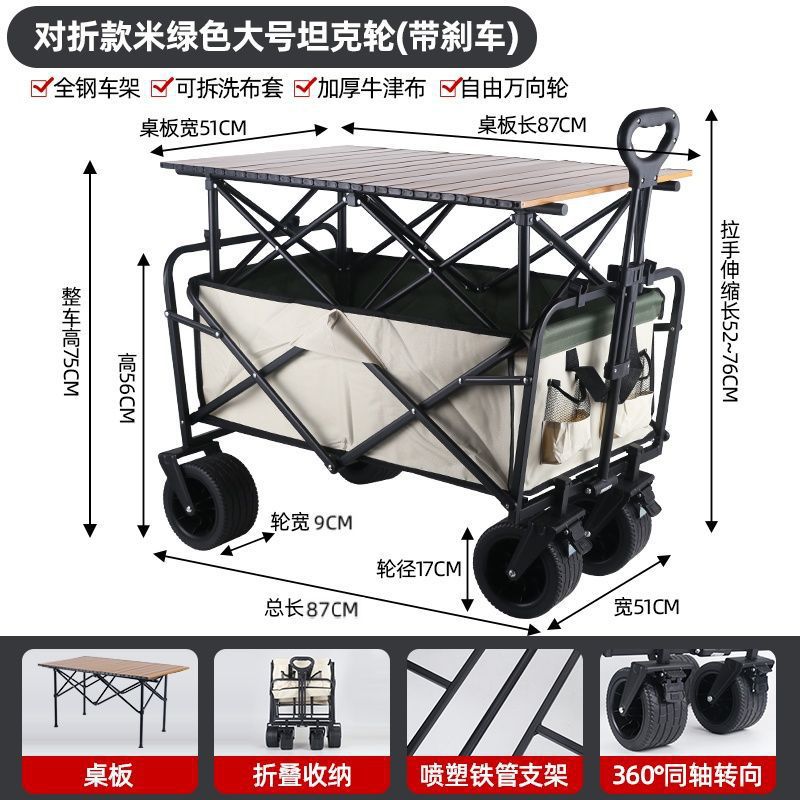 • 야외 캠핑카 + 접이식 테이블탑-카키/ 10inch 탱크 더블 브레이크 유니버설 휠
