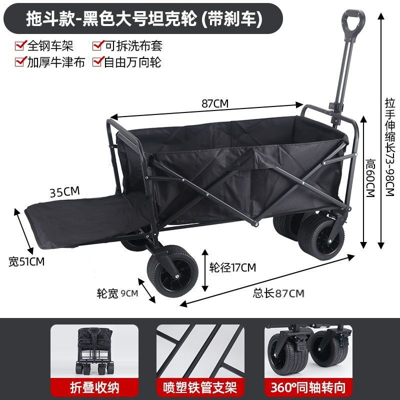 • 야외 캠핑카 + 확장, 확장 및 높이 조절이 가능한 접이식 테이블 - 후면 플립 블랙 / 10inch 탱크 이중 브레이크 범용 휠