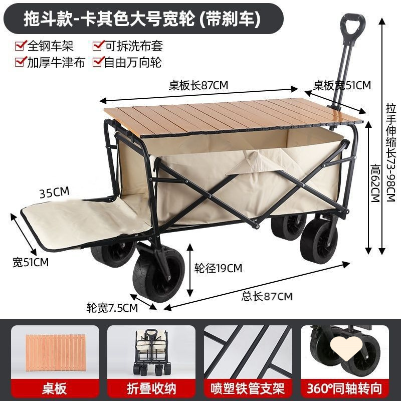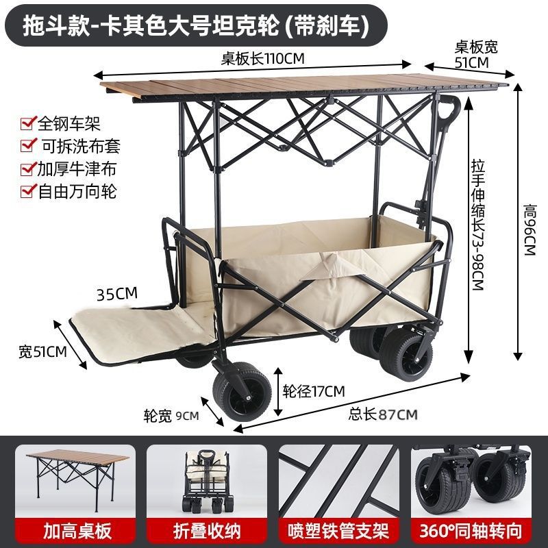 • 야외 캠핑카 + 확장, 확장 및 높이 조절이 가능한 접이식 테이블 - 후면 회전 베이지/ 10inch 탱크 이중 브레이크 범용 휠
